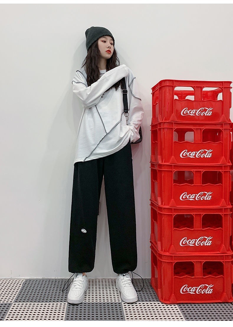 2024 봄과 여름 새로운 한국 스타일 여학생 얇은 높은 허리 느슨한 슬림 넓은 다리 스트레이트 다리 캐주얼 바지