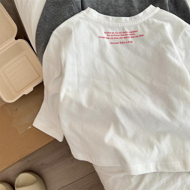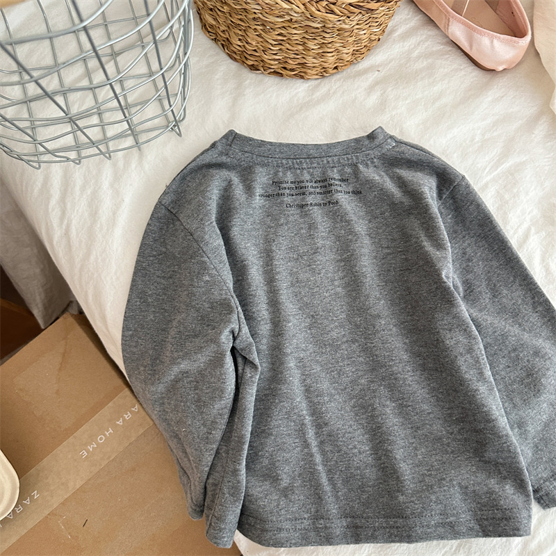 Xi Fan 2024 가을 어린이 한국 간단한 편지 소년과 소녀를위한 긴 소매 티셔츠 단색 크루 넥베이스 셔츠스토어 가기