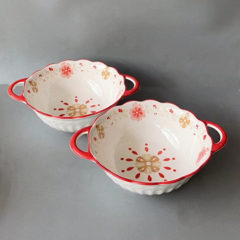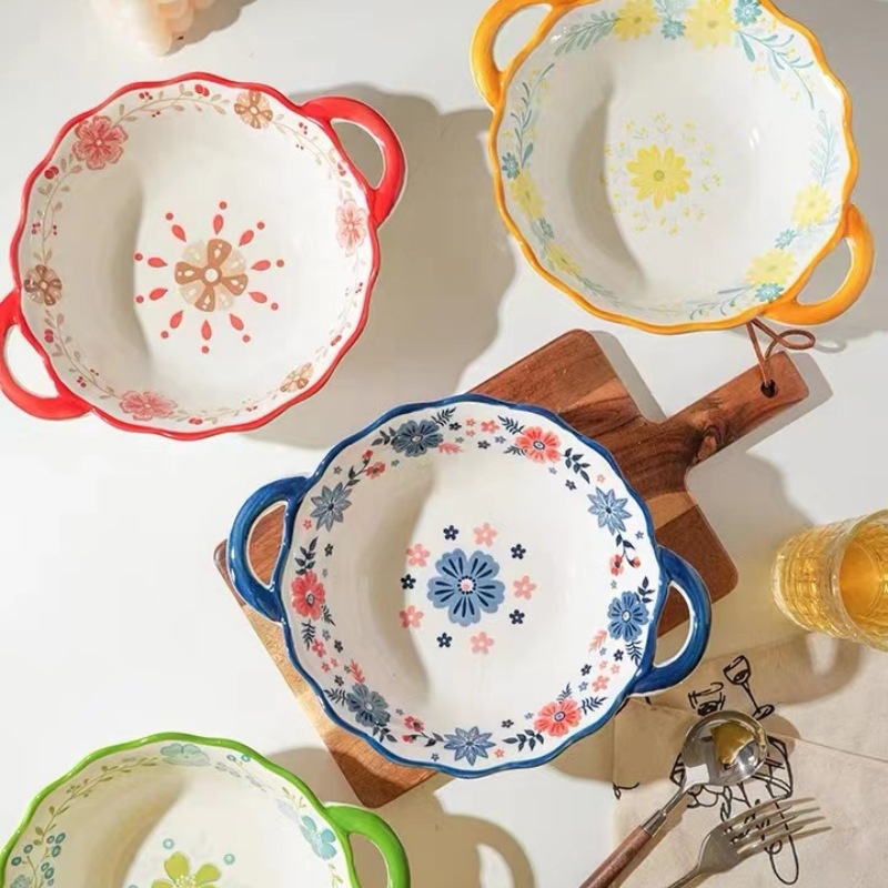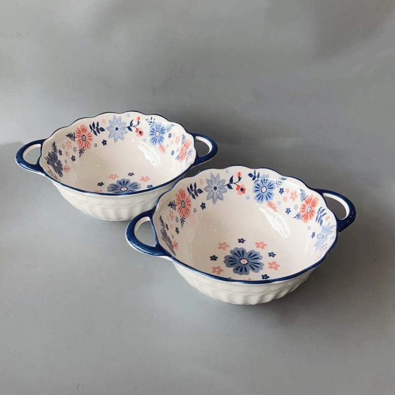 Underglaze 컬러 북유럽 스타일 더블 귀 레이서 그릇 세라믹 그릇 가정용 대형 수프 그릇 사이버 셀레 브럼 엠보싱 살라 보울 국수 그릇스토어 가기