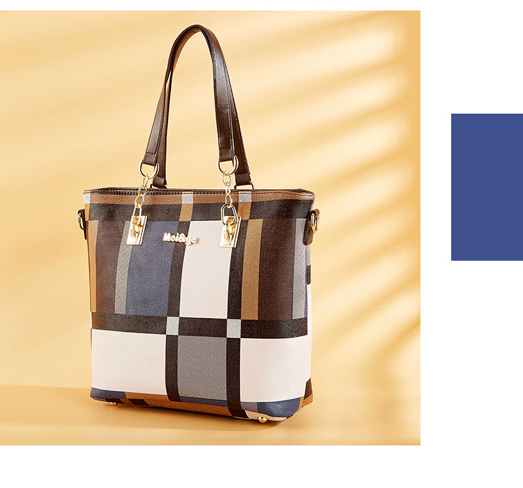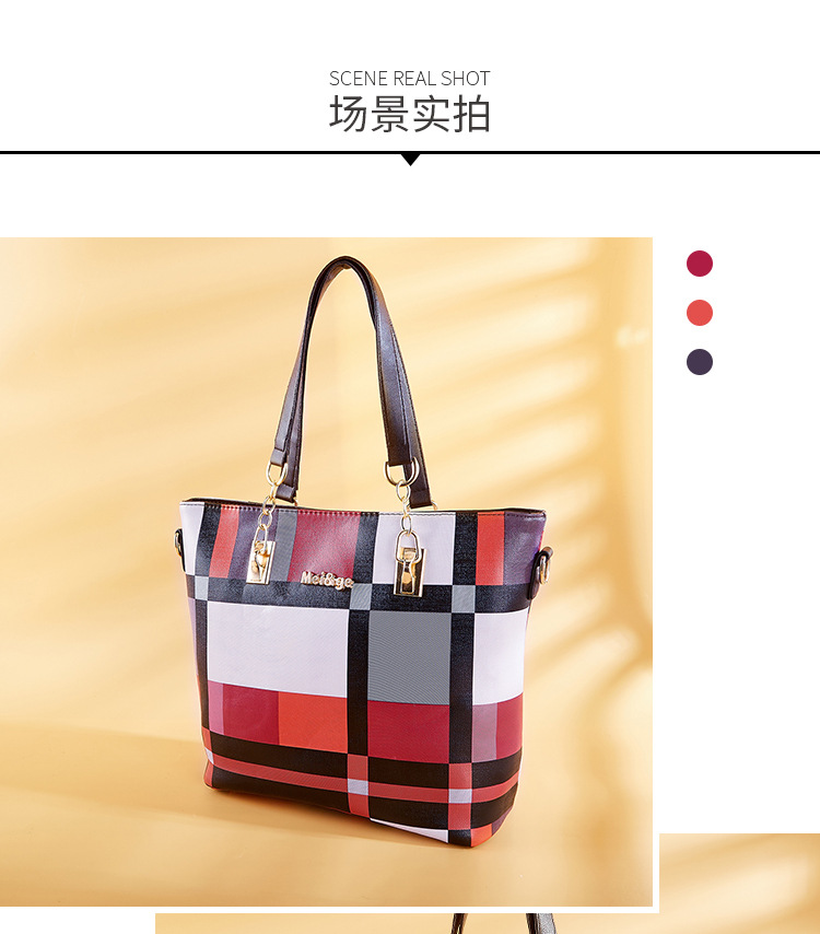 신상 여성 가방 배색 체크무늬 크로스백 대용량 숄더백 출퇴근용 패치워크 체크 숄더백 토트백 여성용스토어 가기