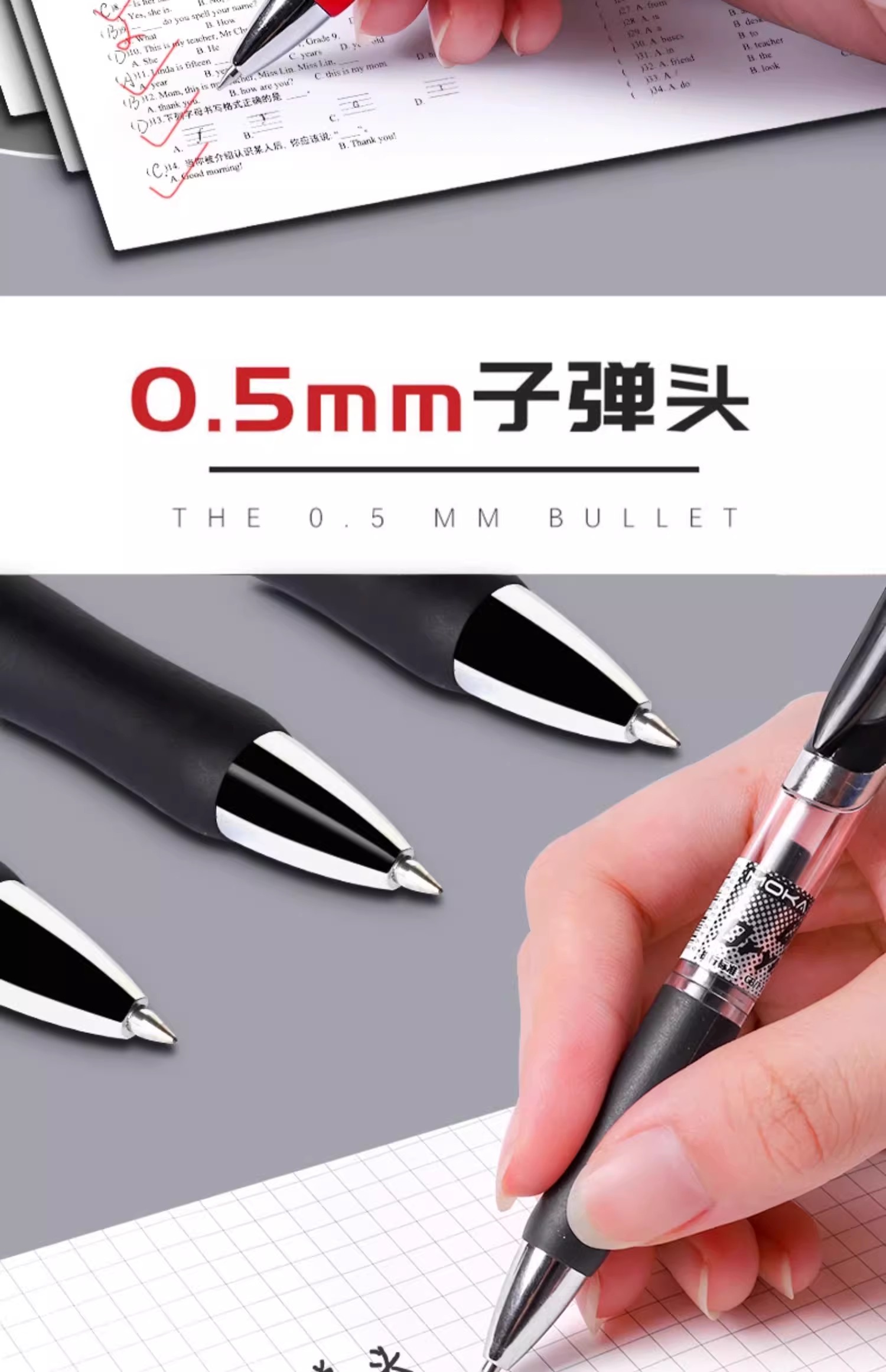높은 가치의 푸시 투 프레스 젤 펜 0.5 블랙 펜 학생 시험 브러시 펜 블랙 레드 총알 물