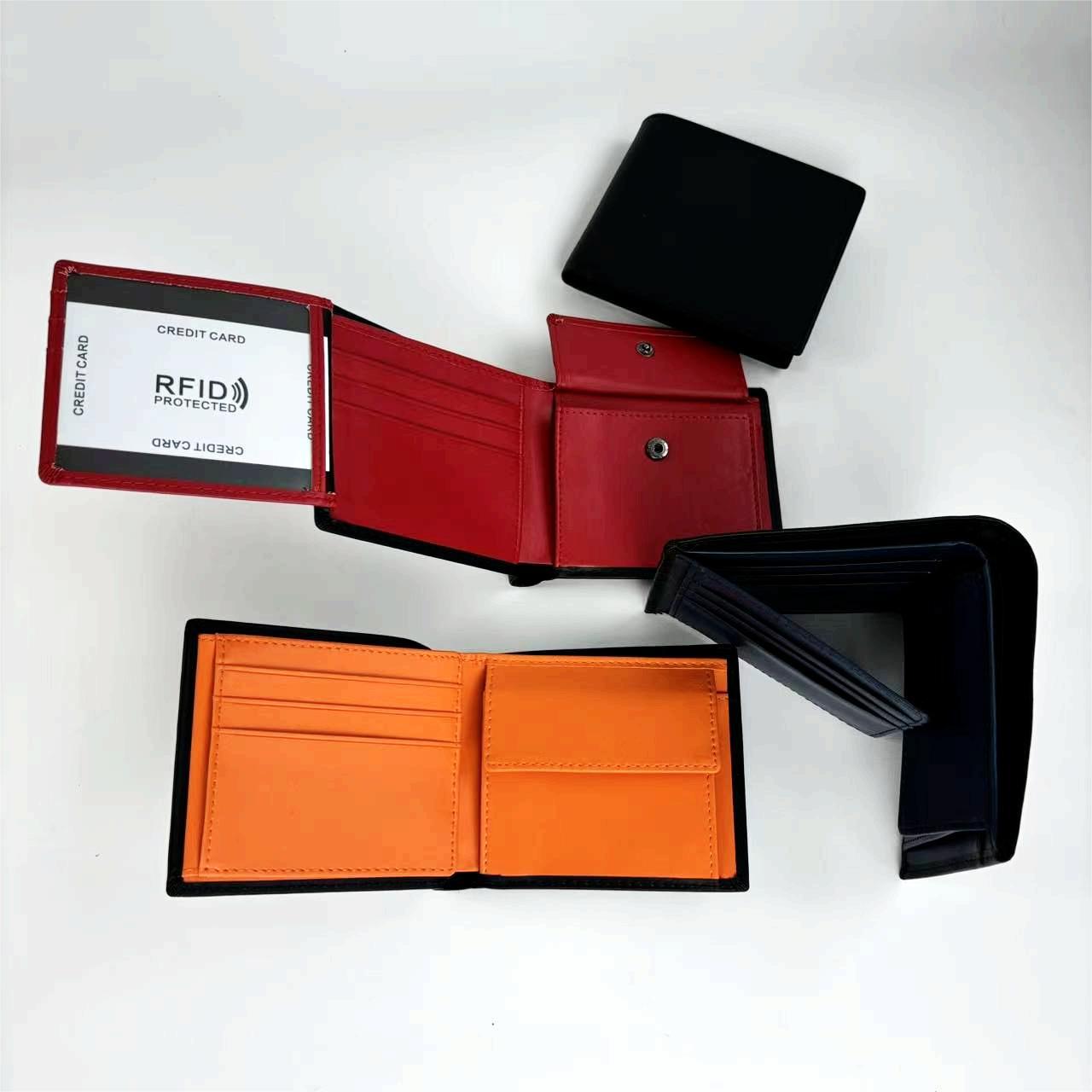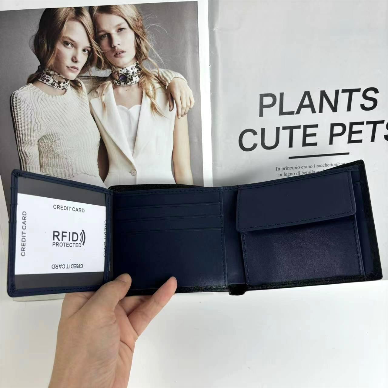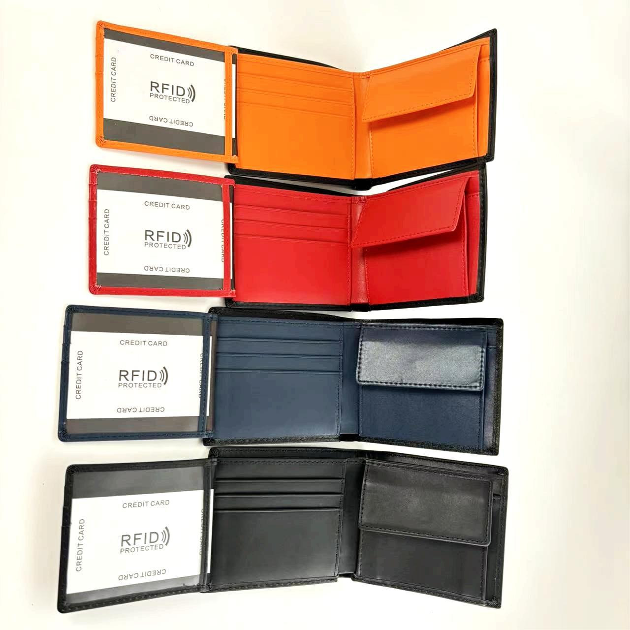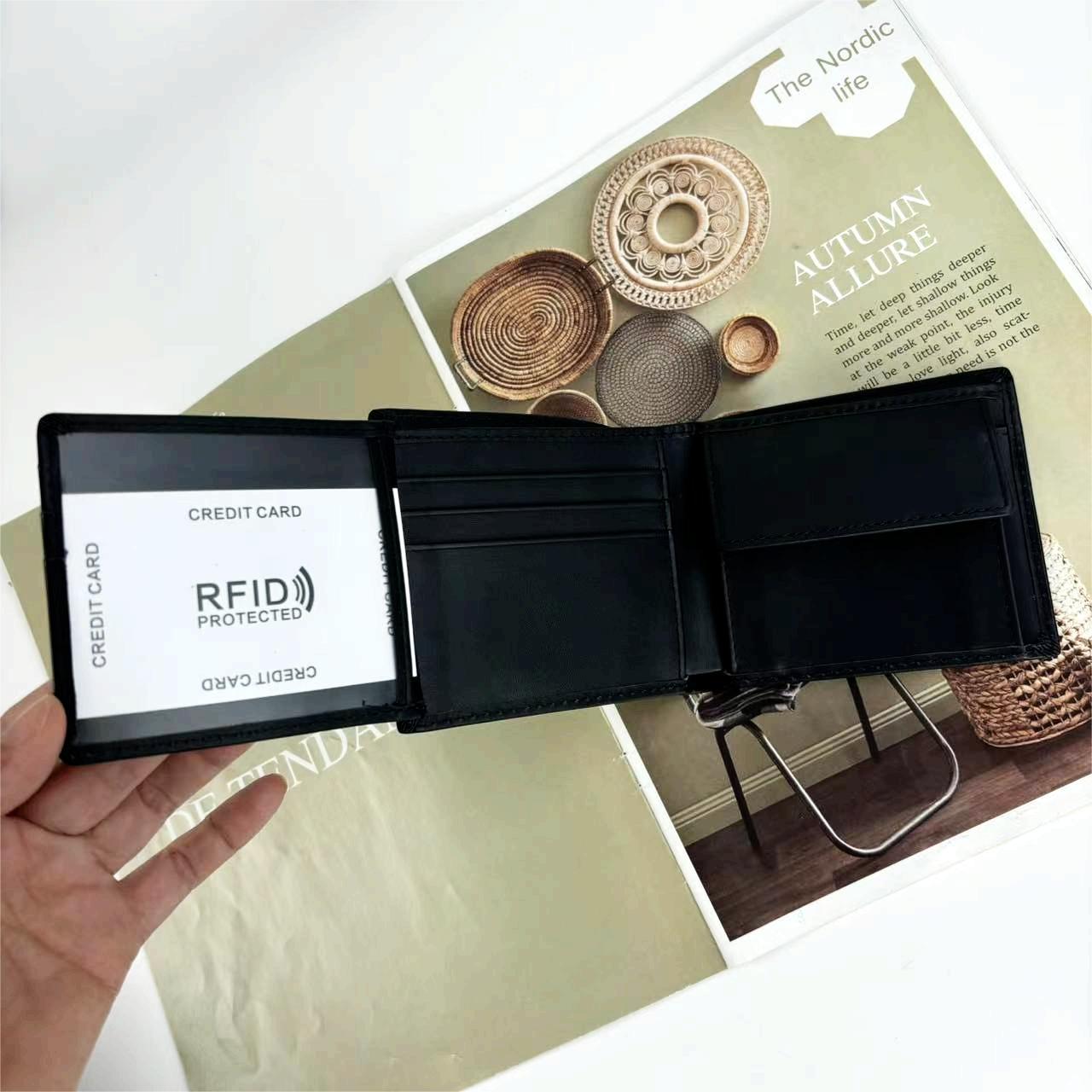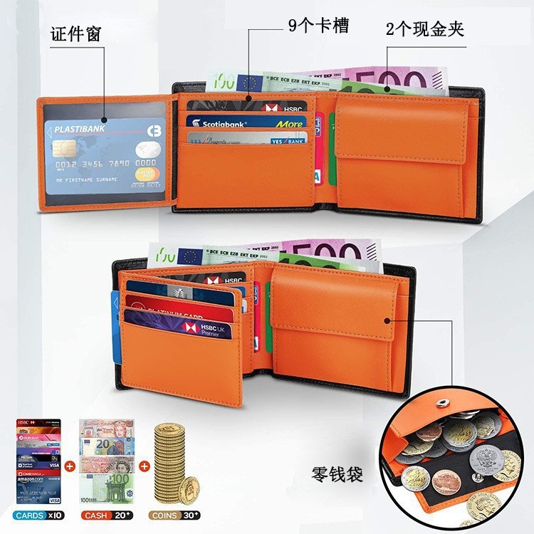 국경 간 재고 느슨한 잎 ID가있는 멀티 카드 다기능 RFID 도난 방지 브러시 정품 가죽 짧은 남성 지갑