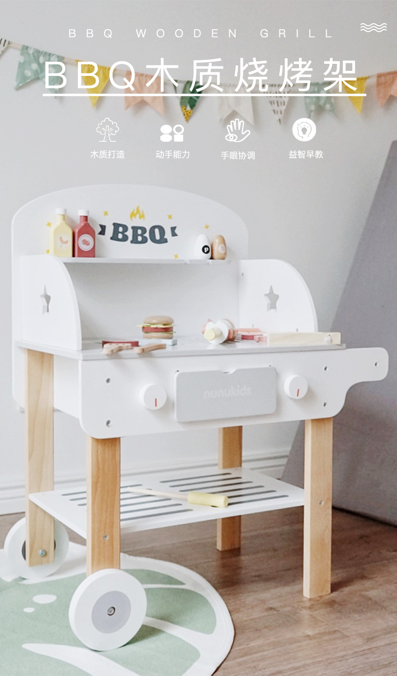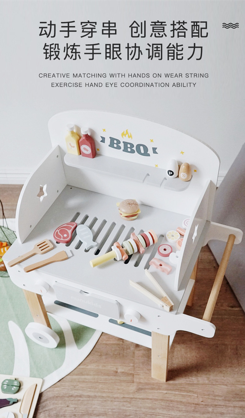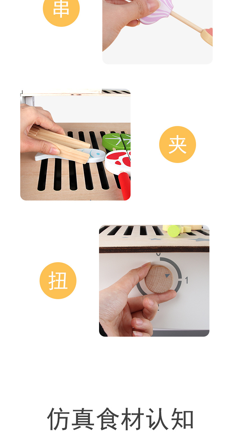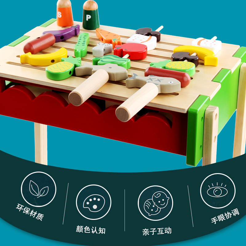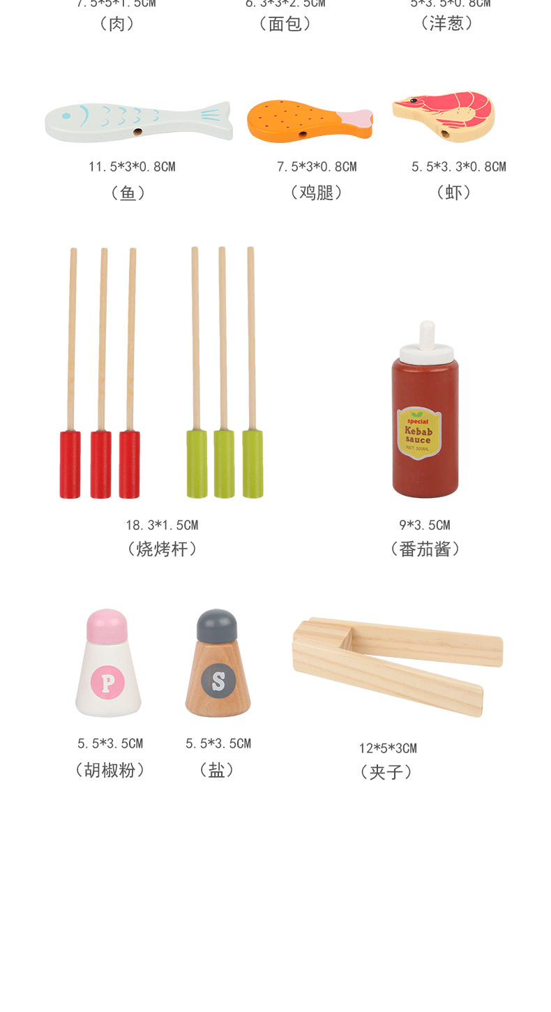木制过家家烧烤架 儿童仿真烧烤串厨房玩具 toys