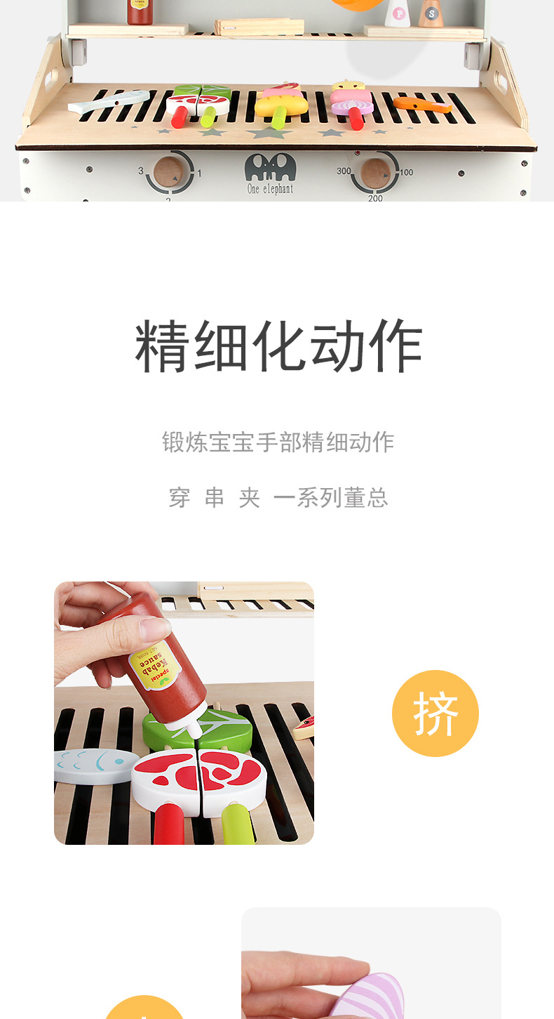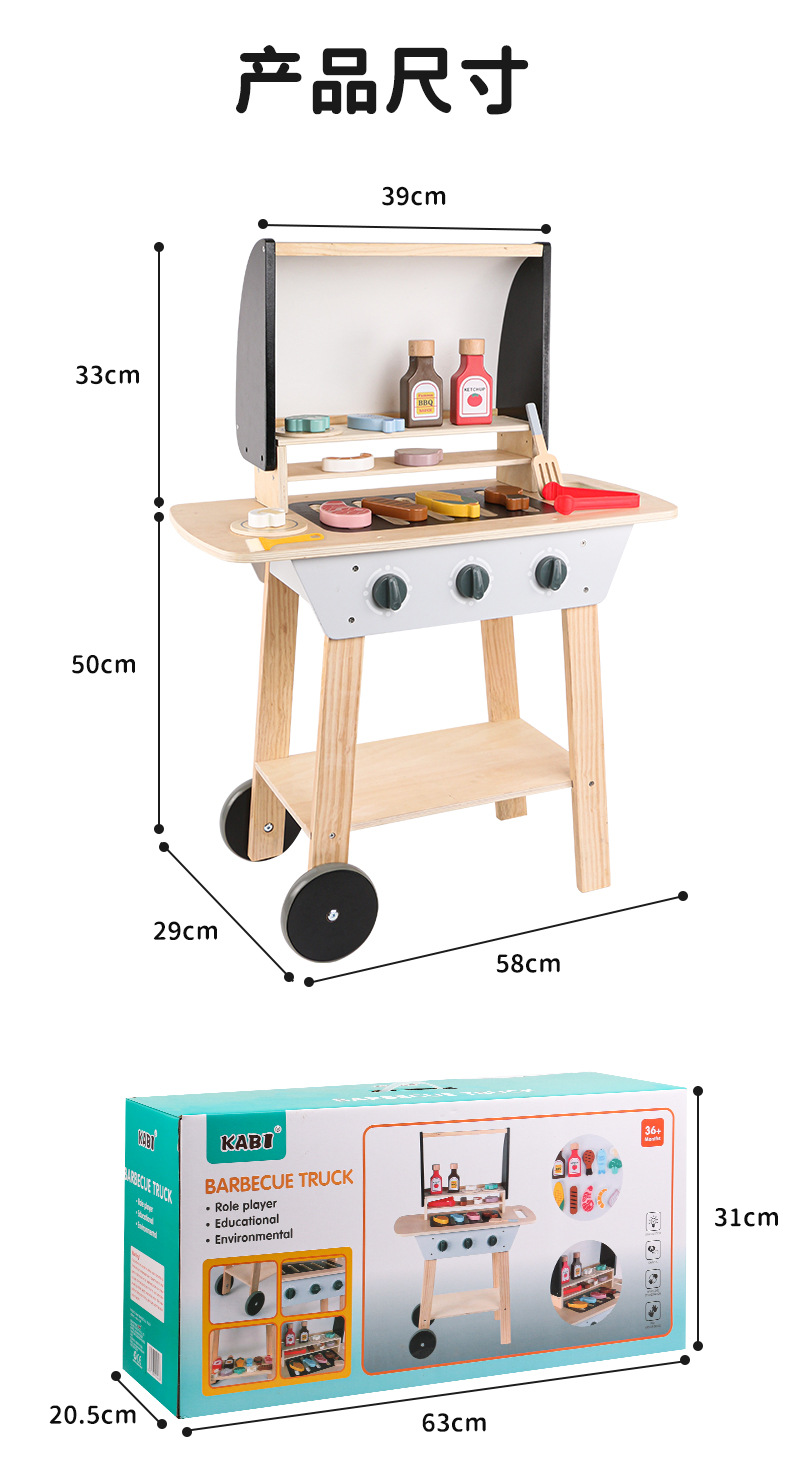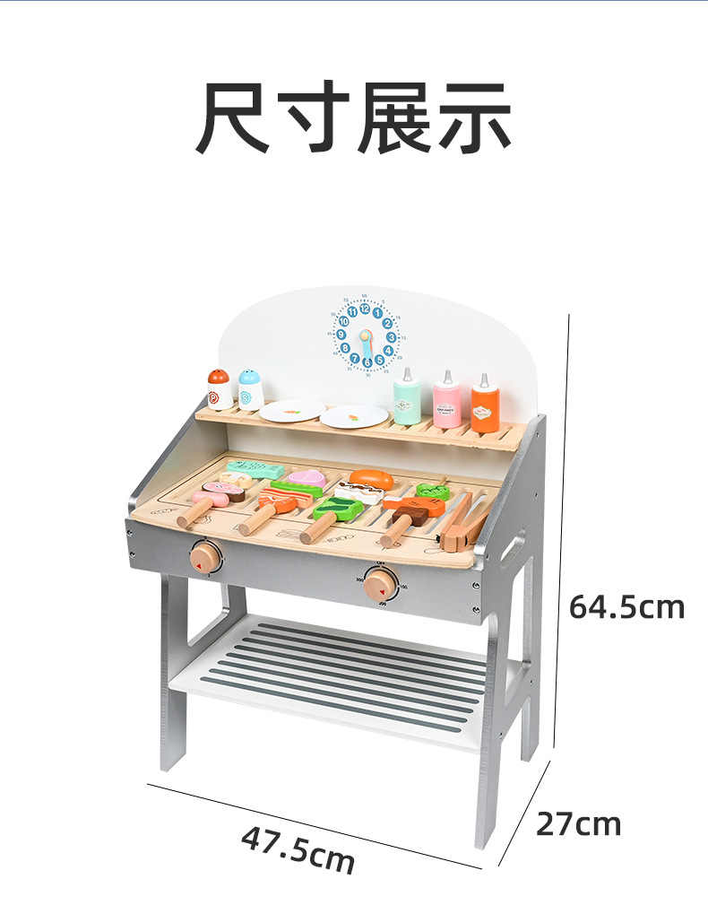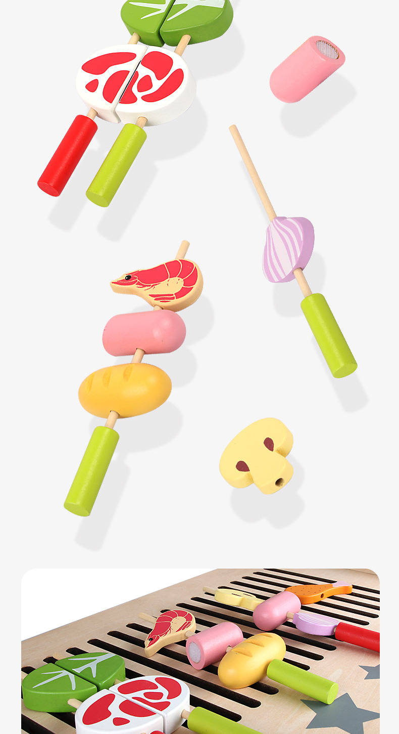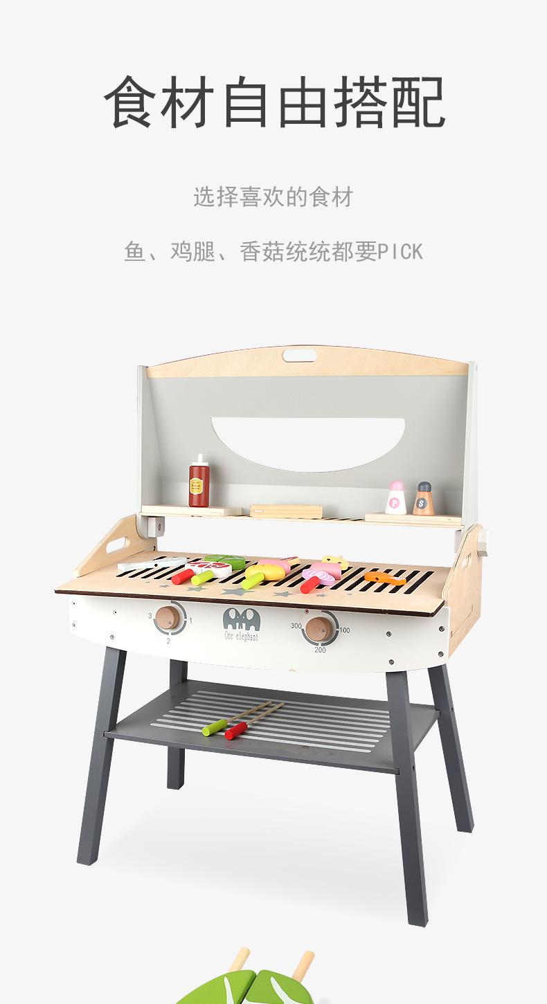木制过家家烧烤架 儿童仿真烧烤串厨房玩具 toys