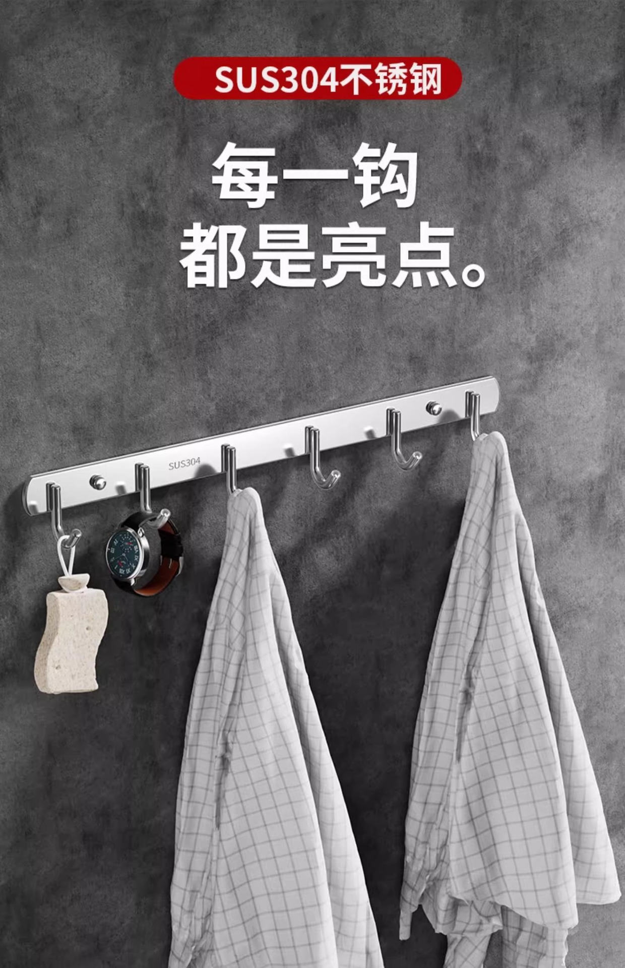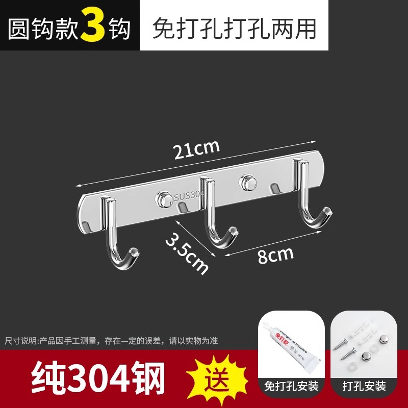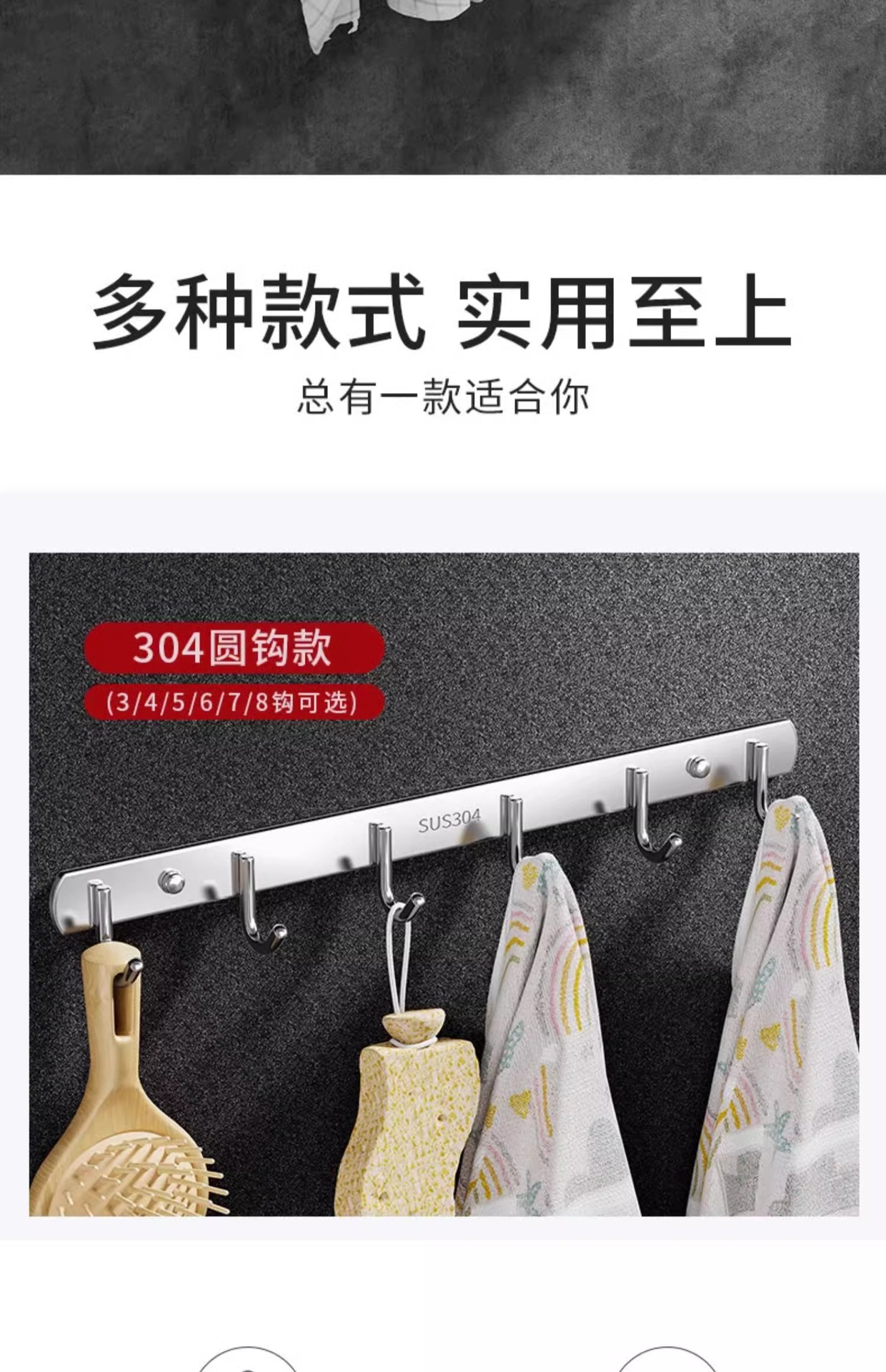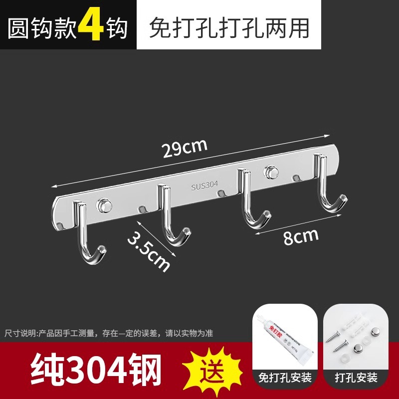 스테인레스 스틸 행 후크 주방 벽 행 후크 욕실 옷걸이는 강한 하중 베어링 304 행 후크를 펀칭 할 수 있습니다.스토어 가기