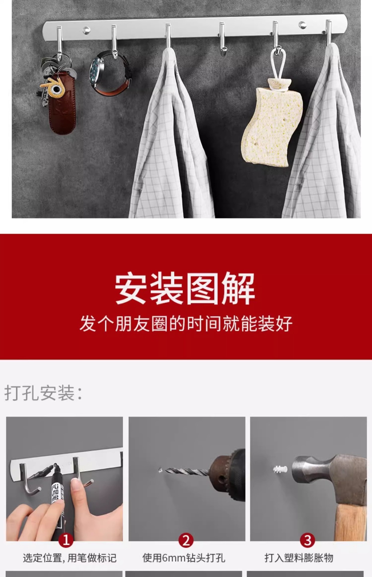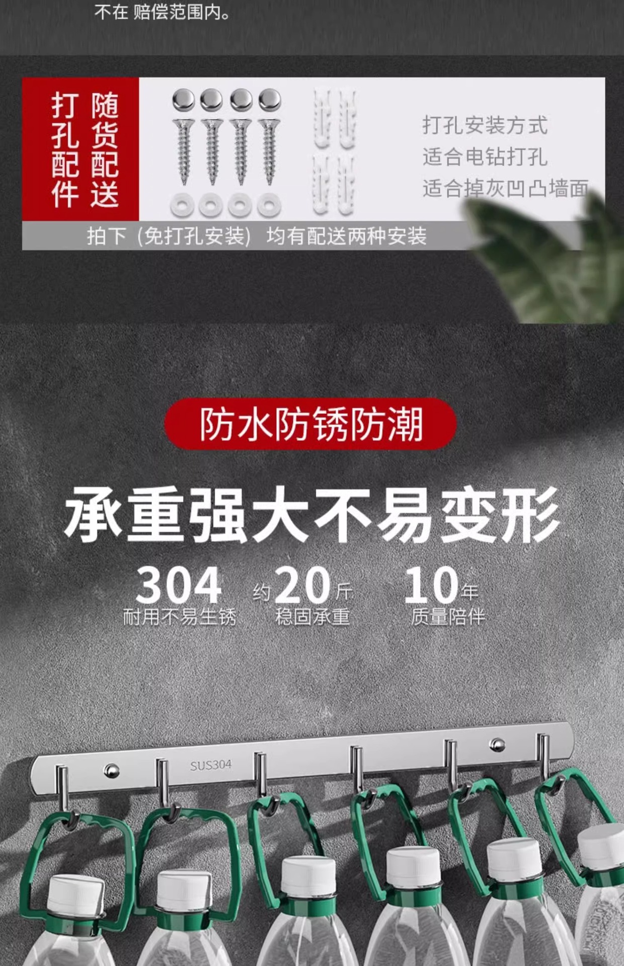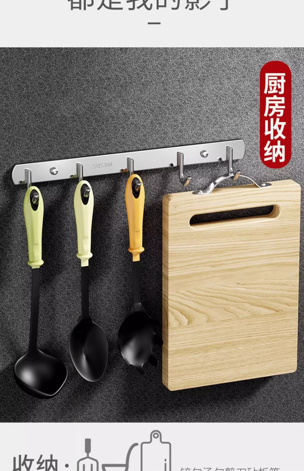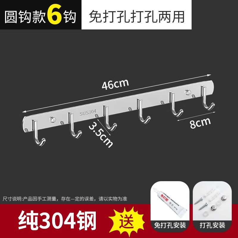 스테인레스 스틸 행 후크 주방 벽 행 후크 욕실 옷걸이는 강한 하중 베어링 304 행 후크를 펀칭 할 수 있습니다.스토어 가기