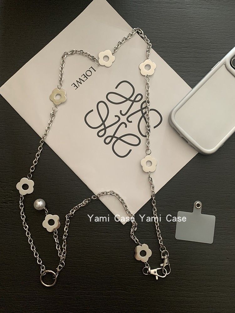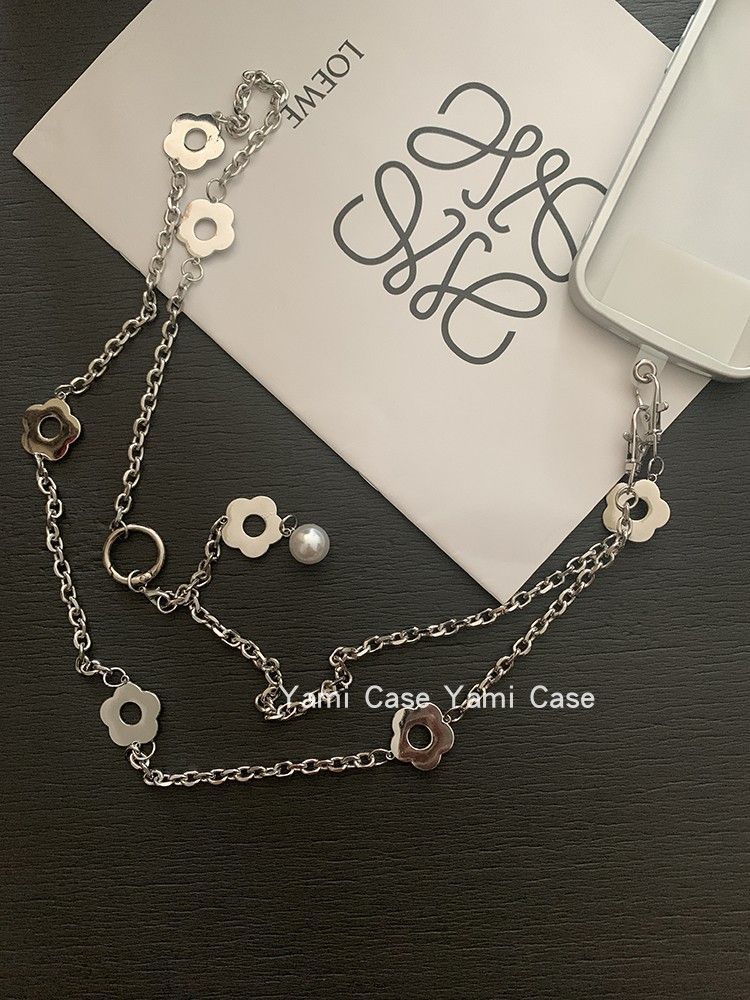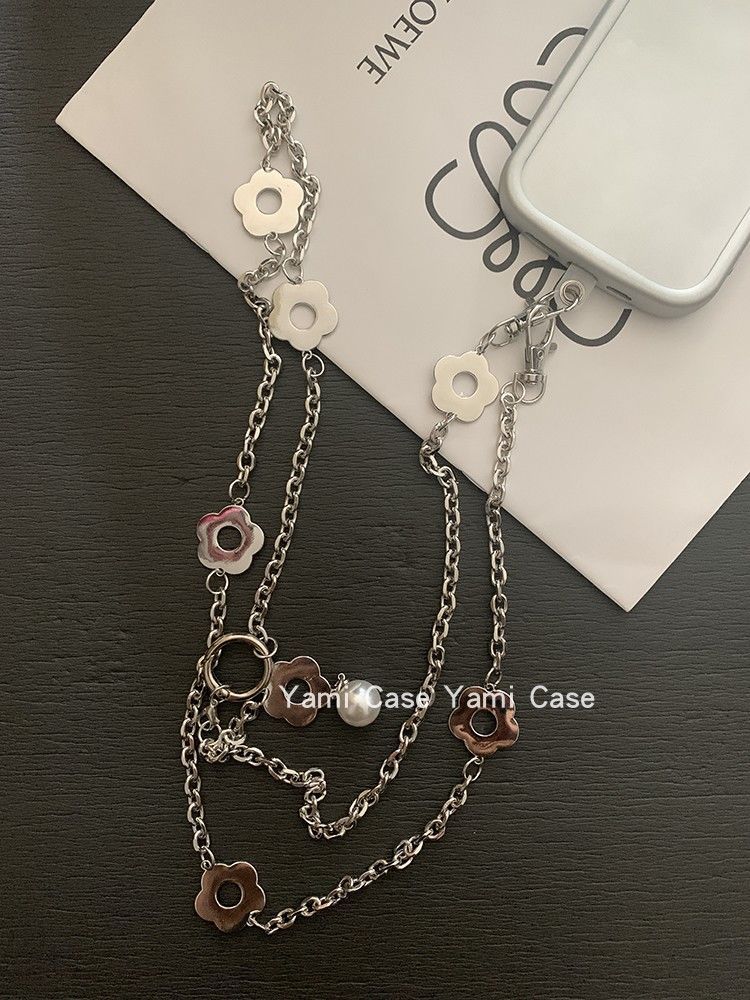 • [금속 실버 꽃 진주 펜던트] 대각선 체인 카드
