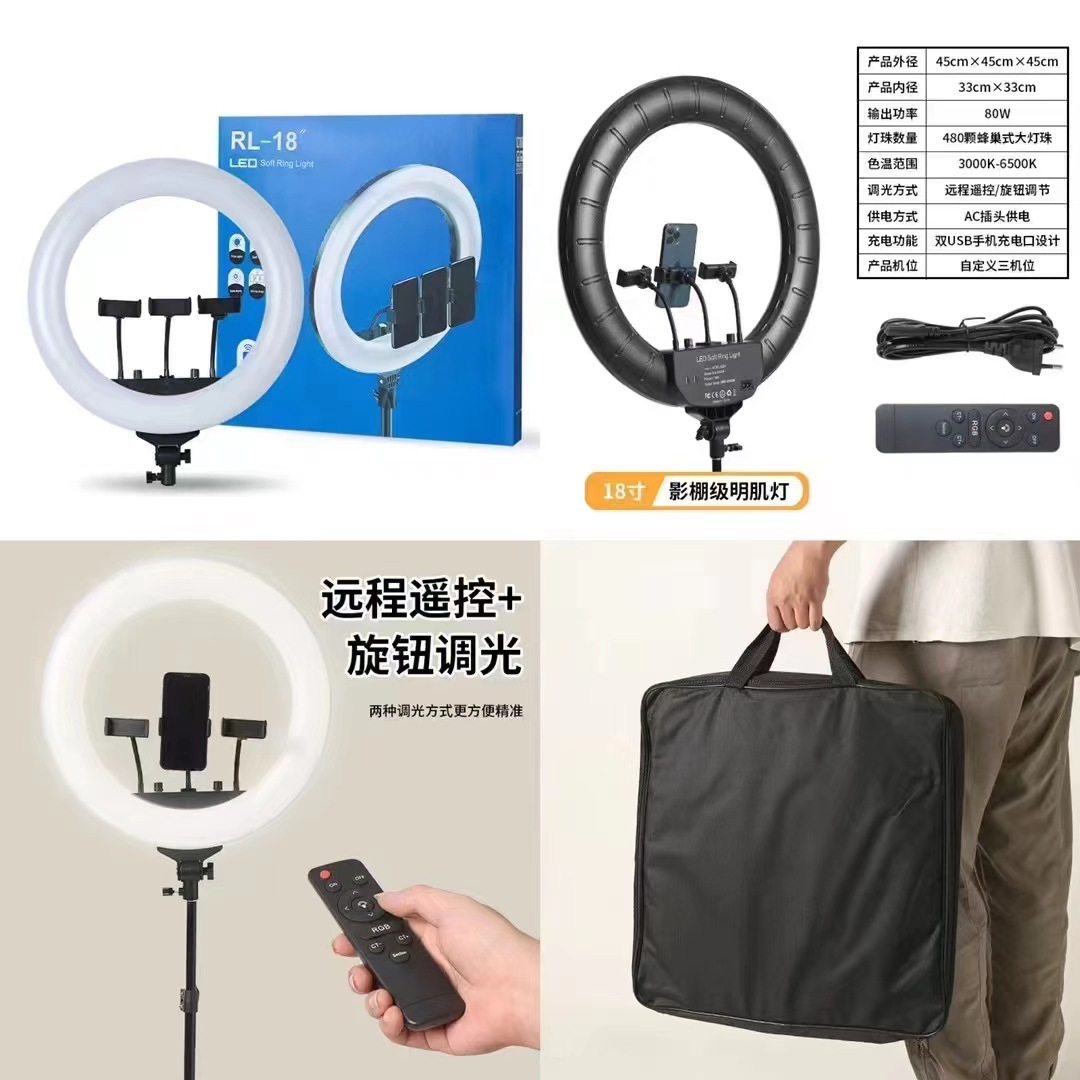크로스보더 18inch 뷰티 라이트 LED 라이브 사진 촬영 보조광 셀카 링 라이트 3가지 색온도 조절 가능스토어 가기