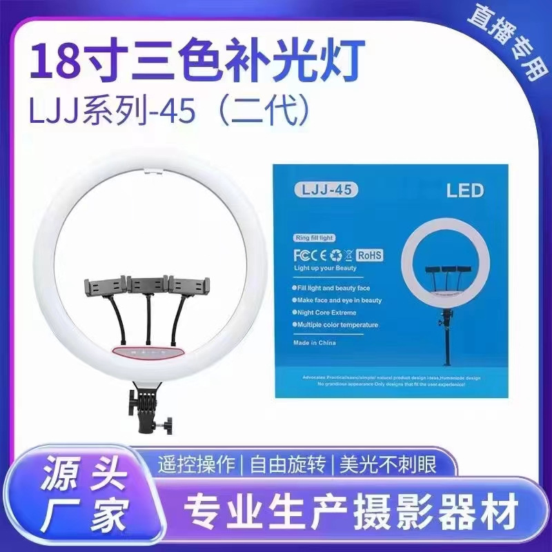 크로스보더 18inch 뷰티 라이트 LED 라이브 사진 촬영 보조광 셀카 링 라이트 3가지 색온도 조절 가능
