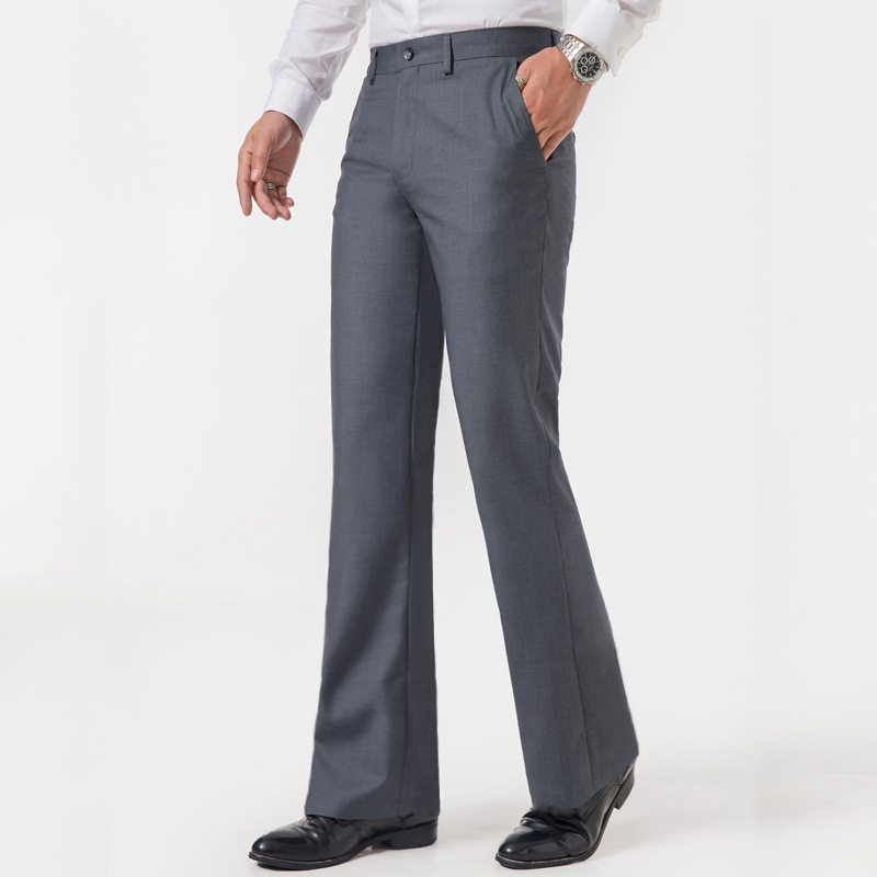 고급 마이크로 플레어 팬츠 남성 비즈니스 그레이 헐렁한 스트레이트 레그 캐주얼 바지 처짐 패션 와이드 레그 하이 웨이스트 팬츠