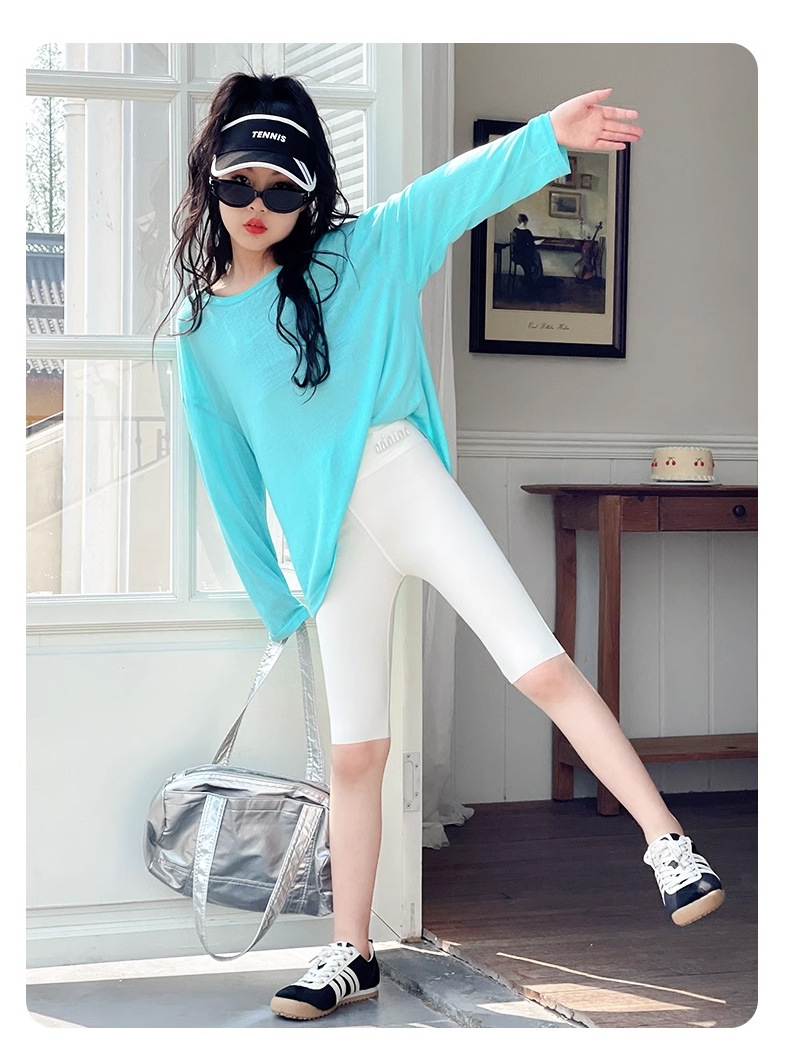 어린이 상어 바지 2024 봄과 가을 얇은 소녀의 레깅스 아기 소녀의 요가 스레드 바비 바지 댄스 바지스토어 가기