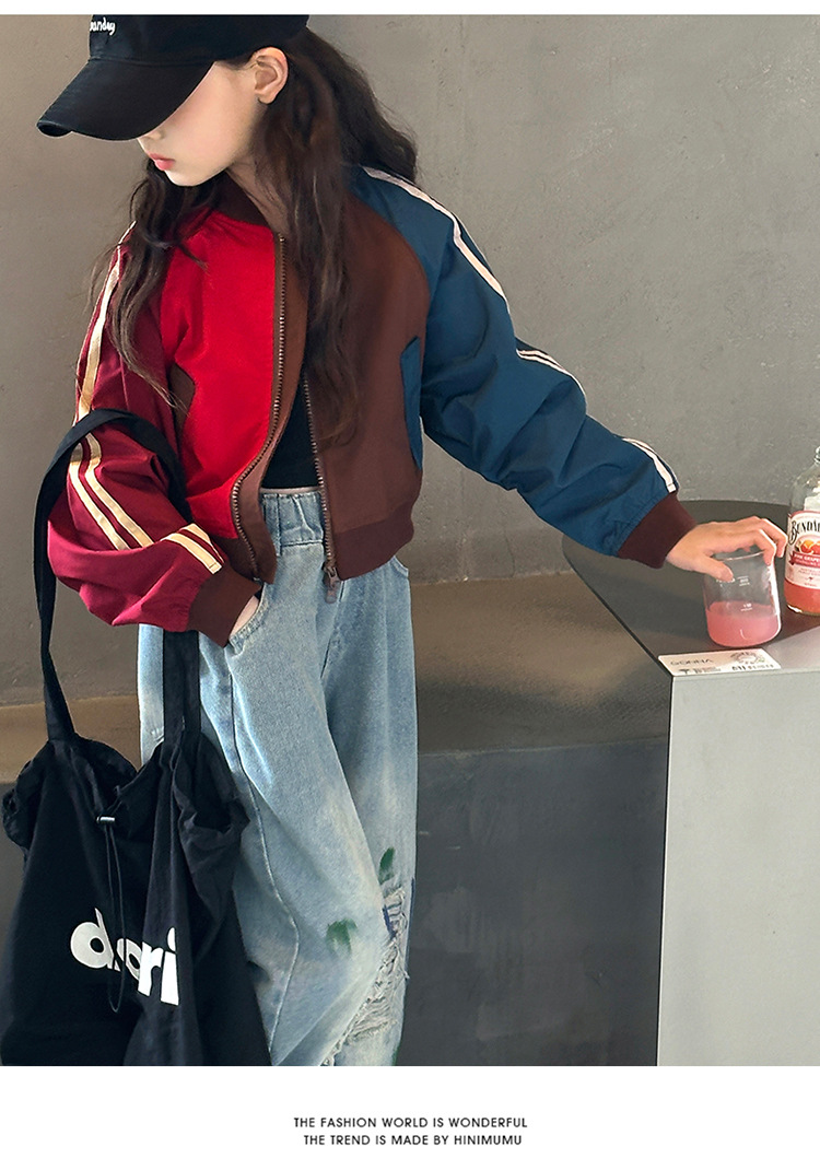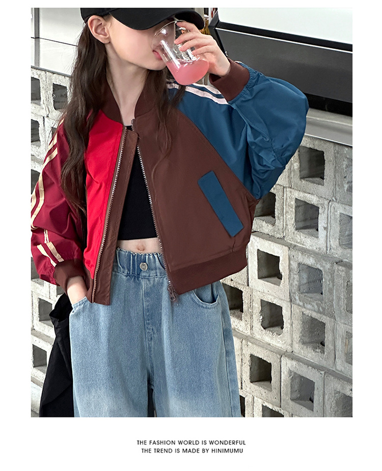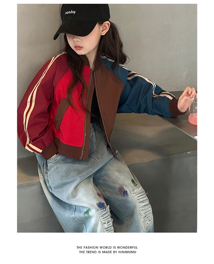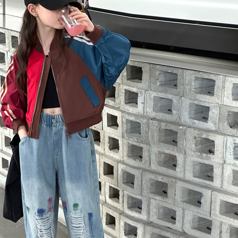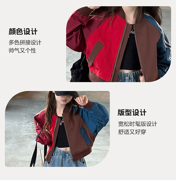 여자 가을 유행 컬러 매칭 짧은 재킷 코트 2024 새로운 봄과 가을 옷 큰 아이 야구 옷 올 매치 트렌디