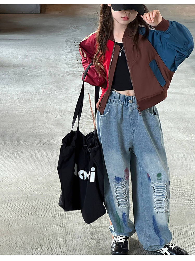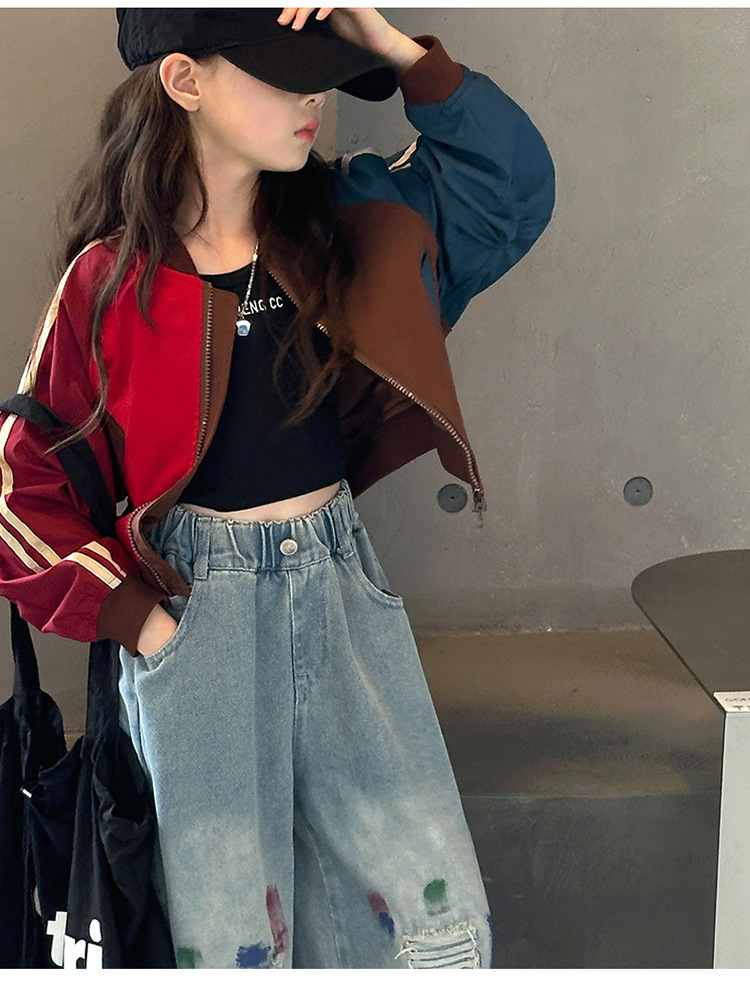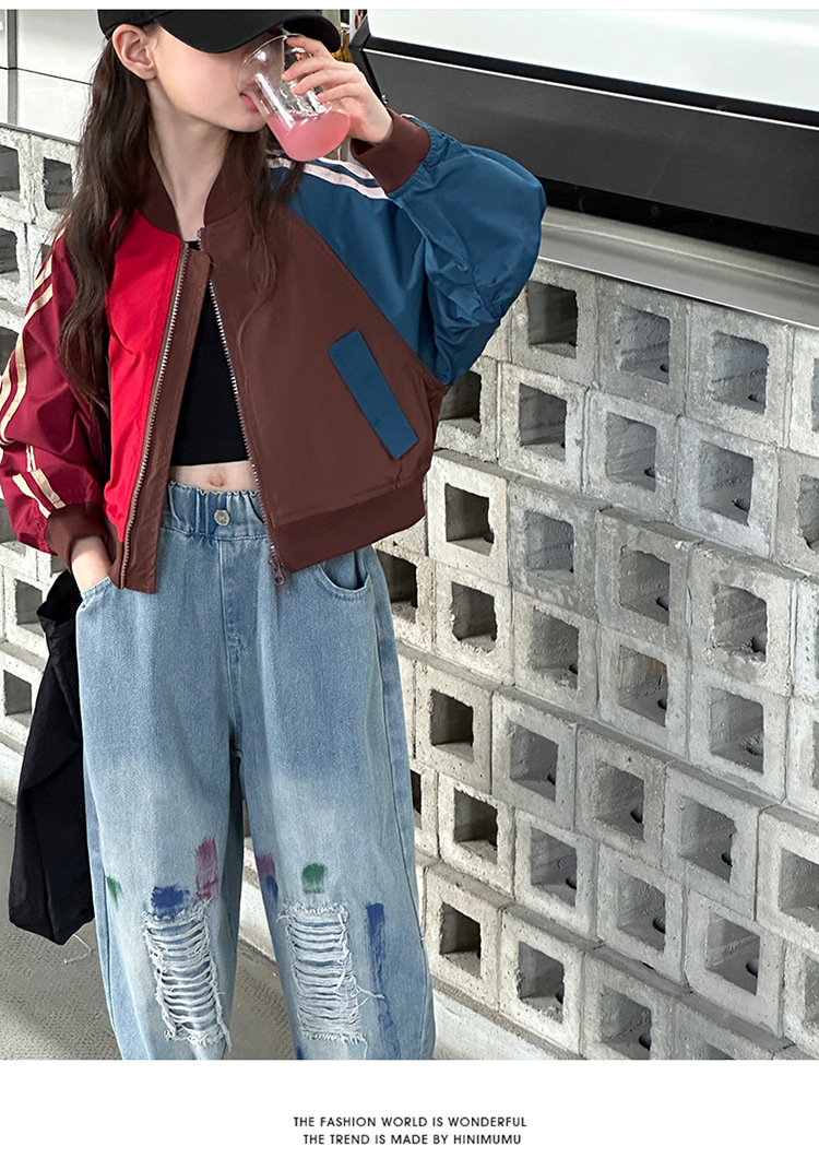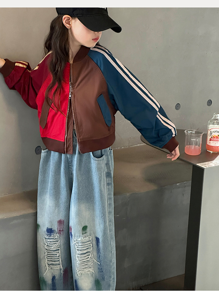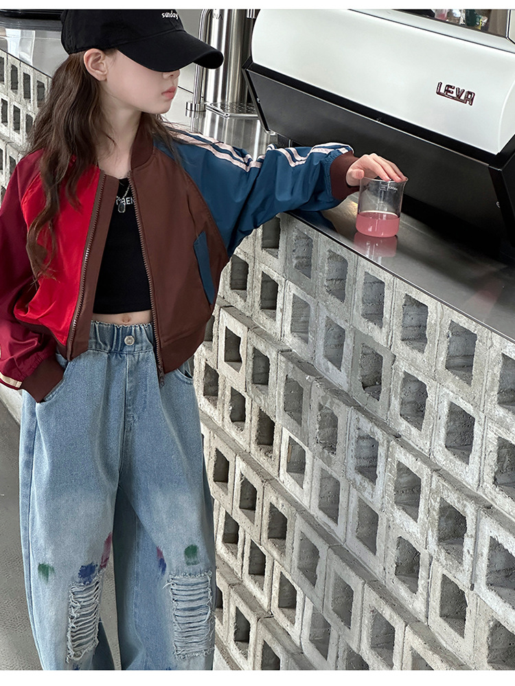 여자 가을 유행 컬러 매칭 짧은 재킷 코트 2024 새로운 봄과 가을 옷 큰 아이 야구 옷 올 매치 트렌디