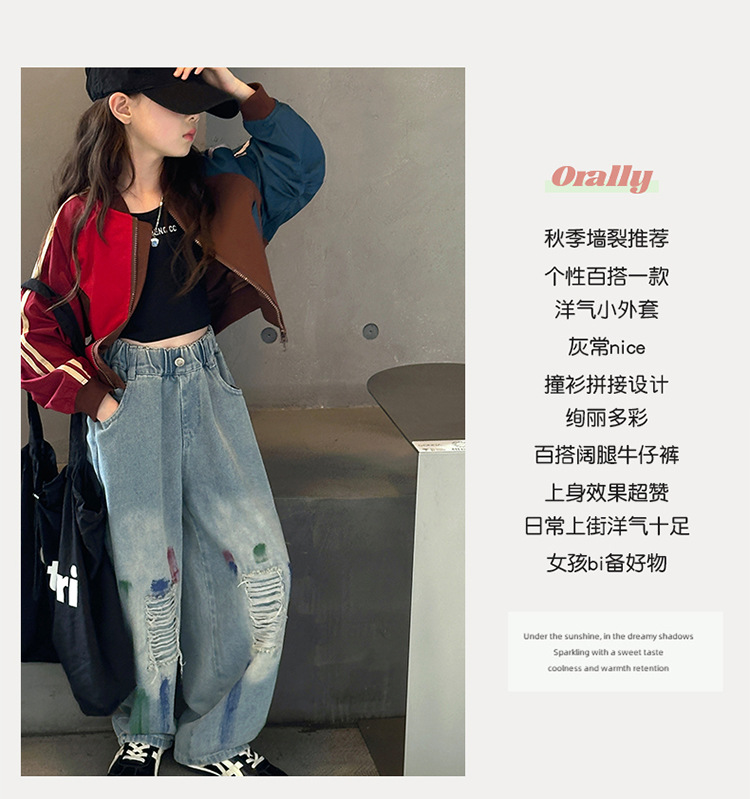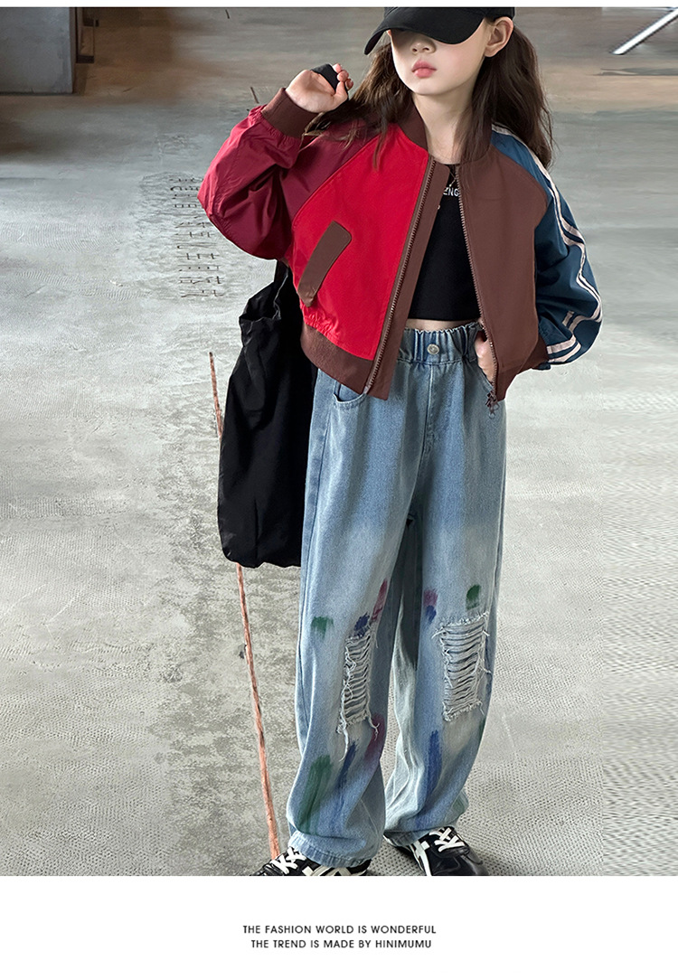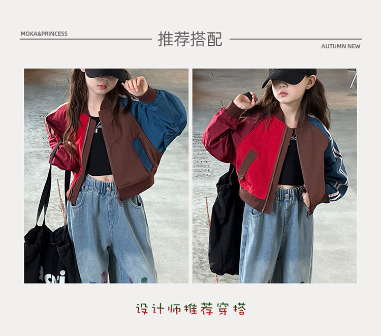 여자 가을 유행 컬러 매칭 짧은 재킷 코트 2024 새로운 봄과 가을 옷 큰 아이 야구 옷 올 매치 트렌디스토어 가기