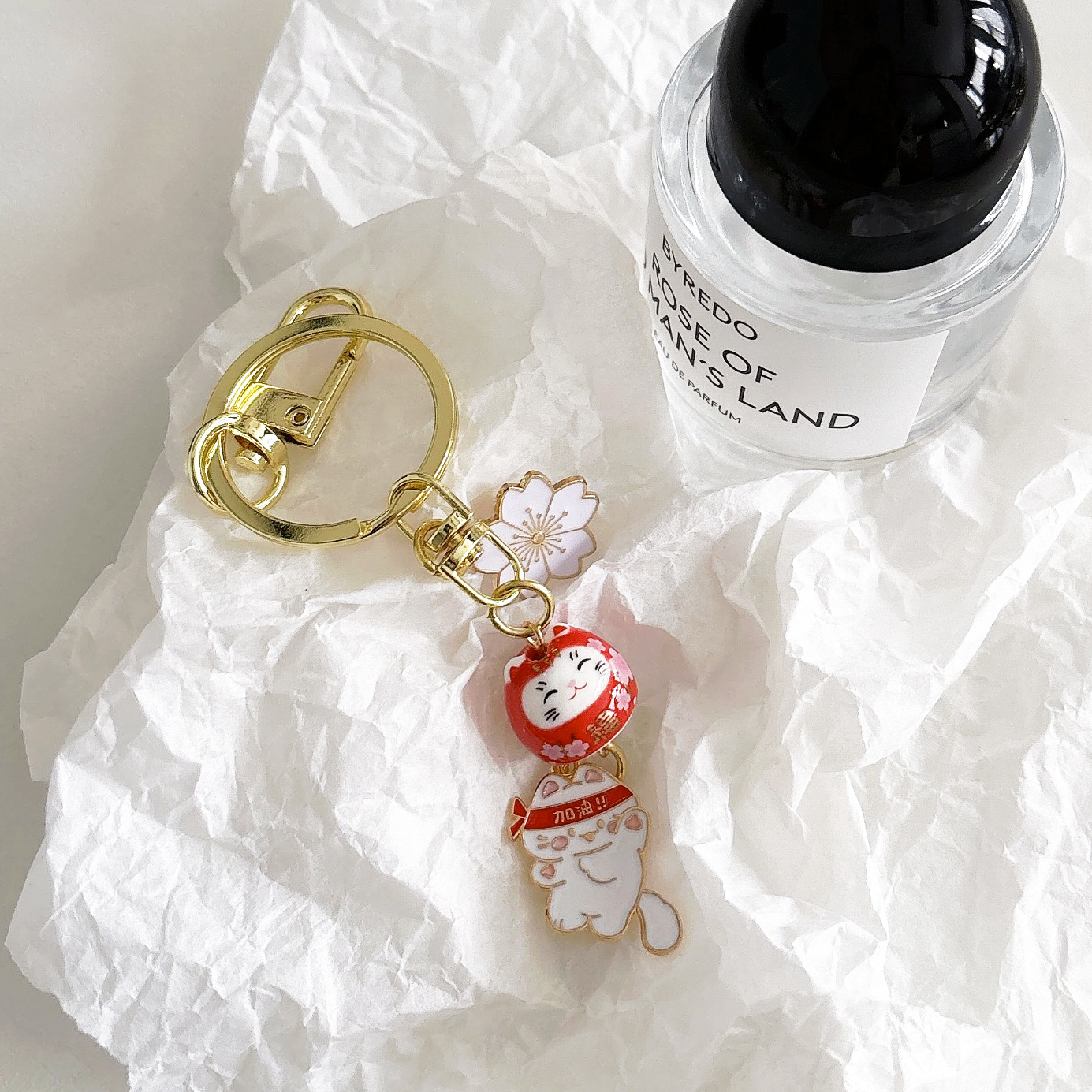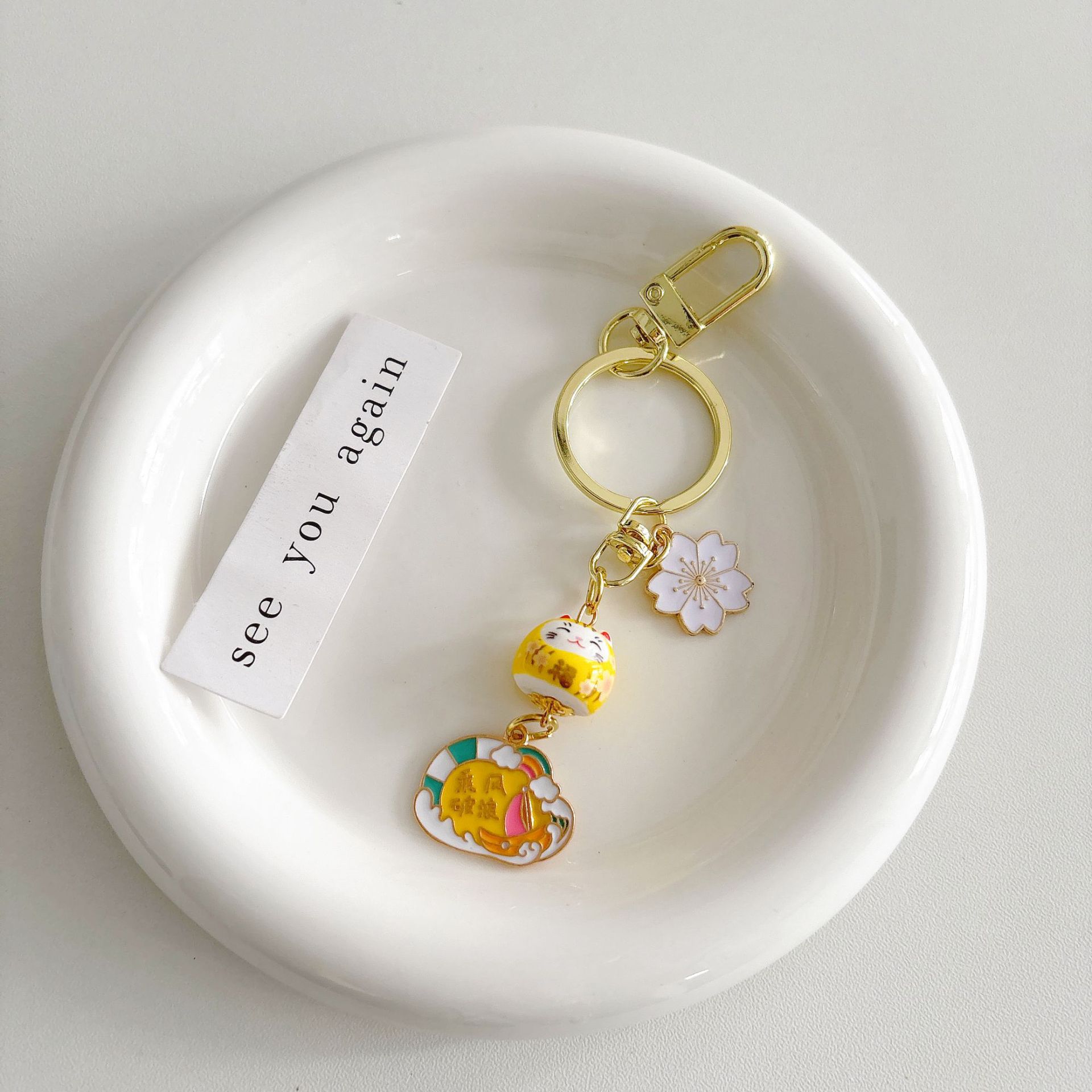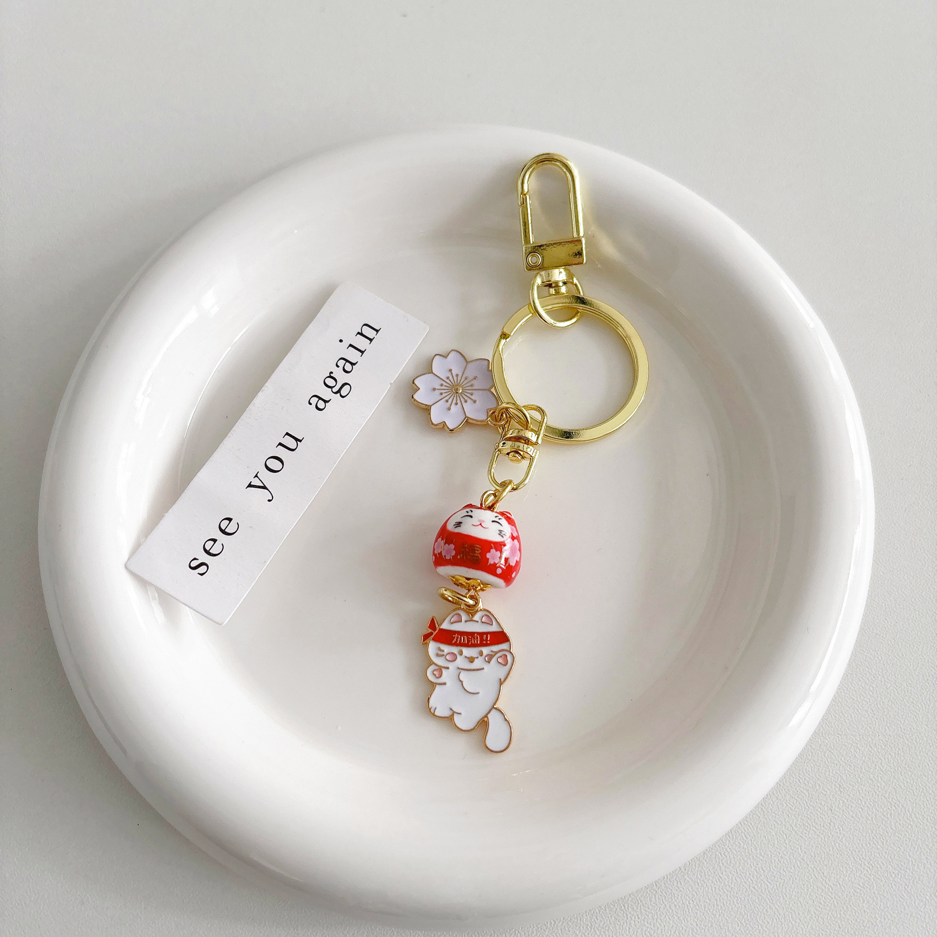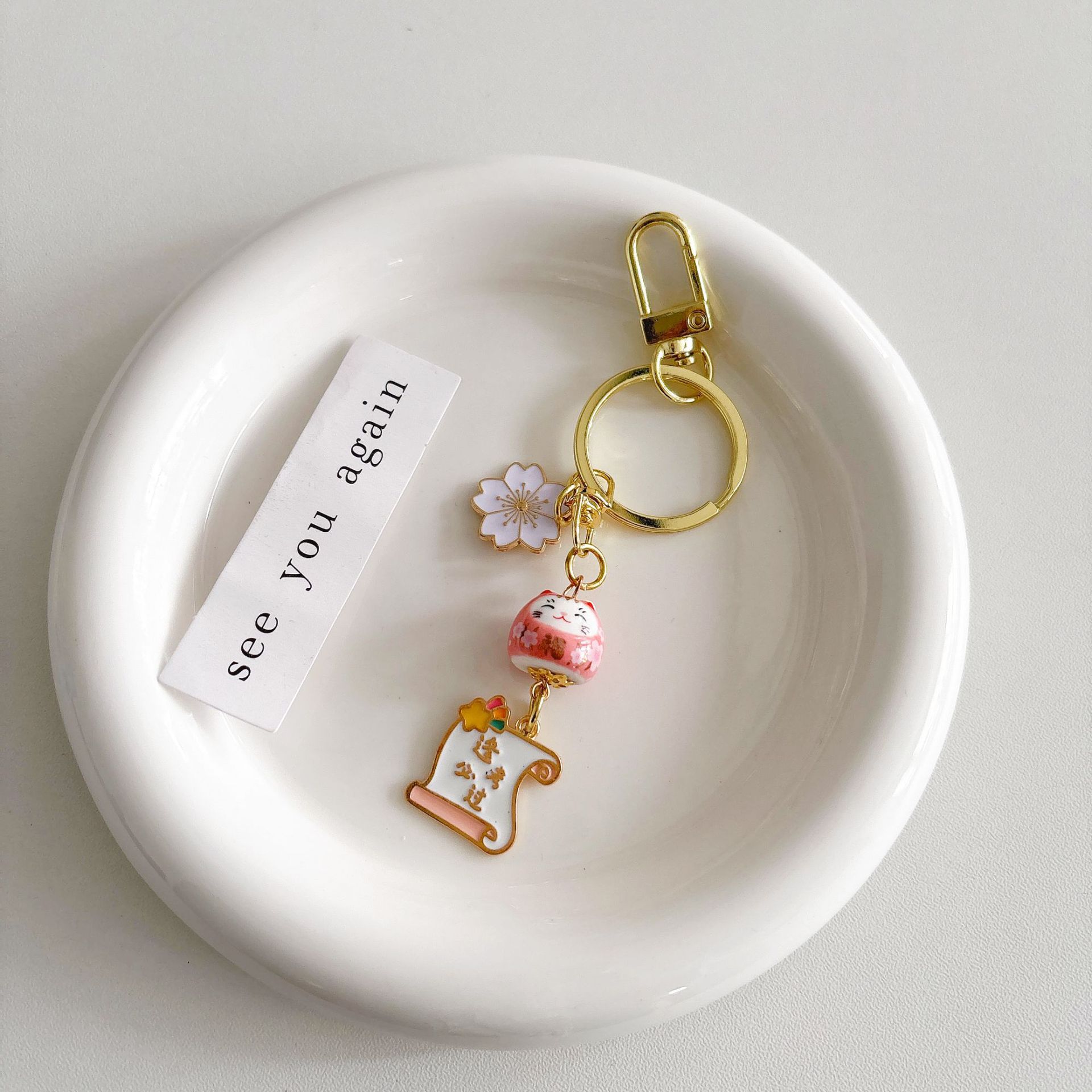 J1033 행운의 흰 꽃 고양이 세라믹 행운의 고양이 키 체인 모래 골드 매달려 장식 축복 언어 학생 졸업 시즌 선물스토어 가기