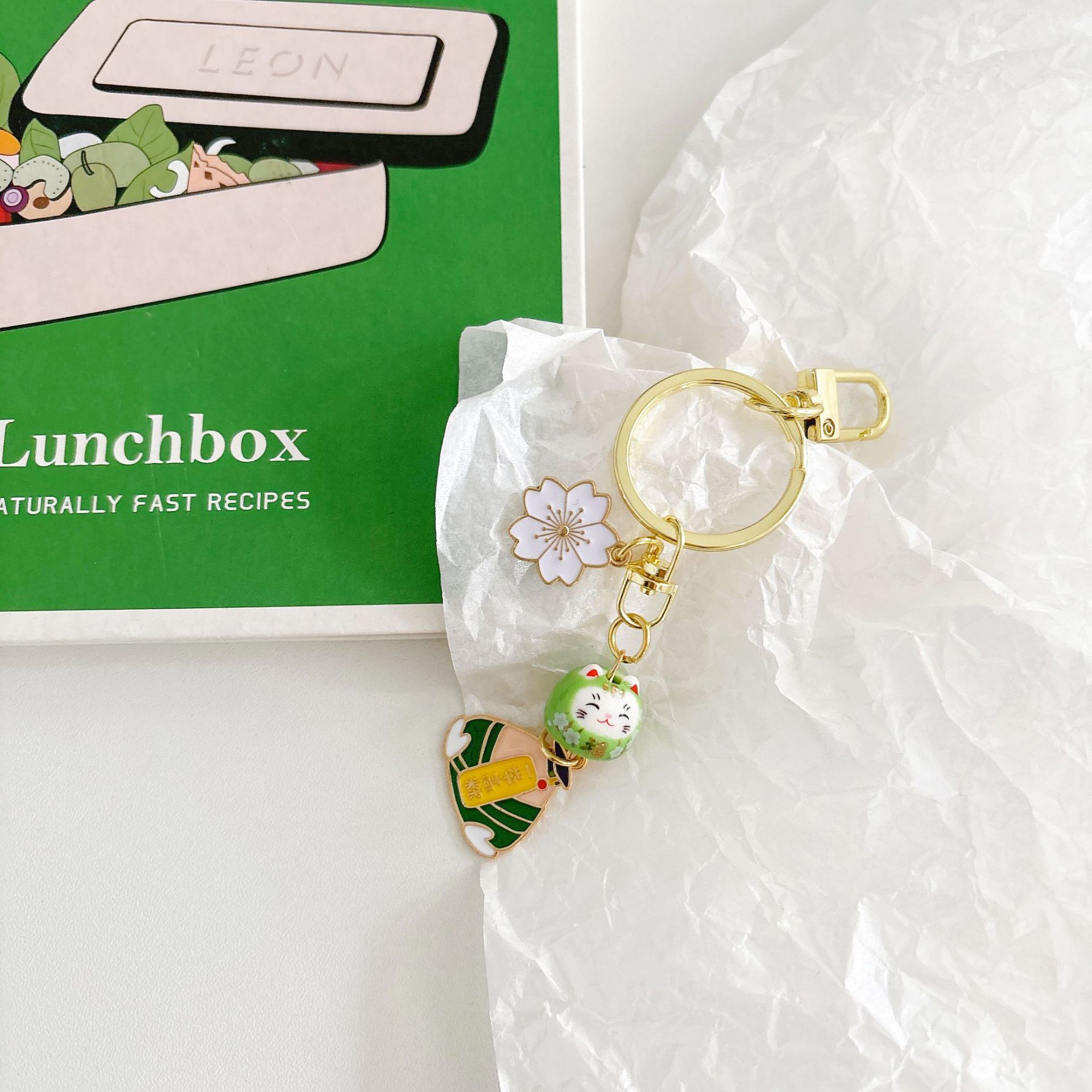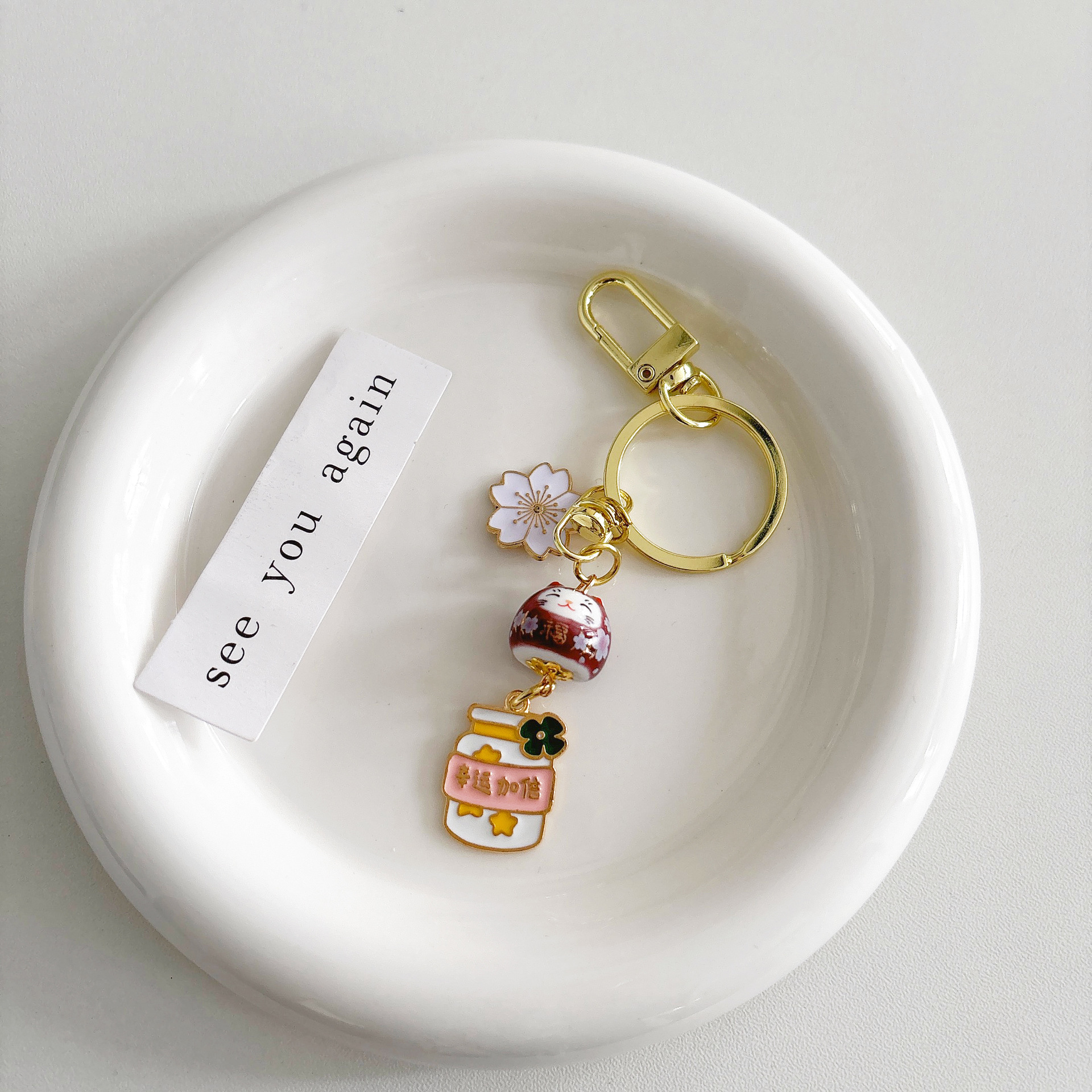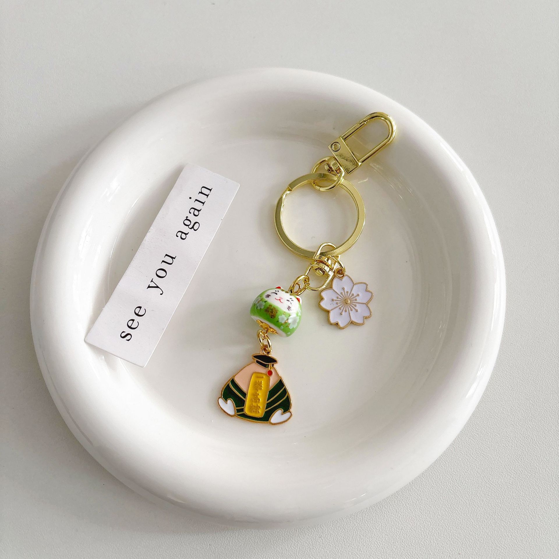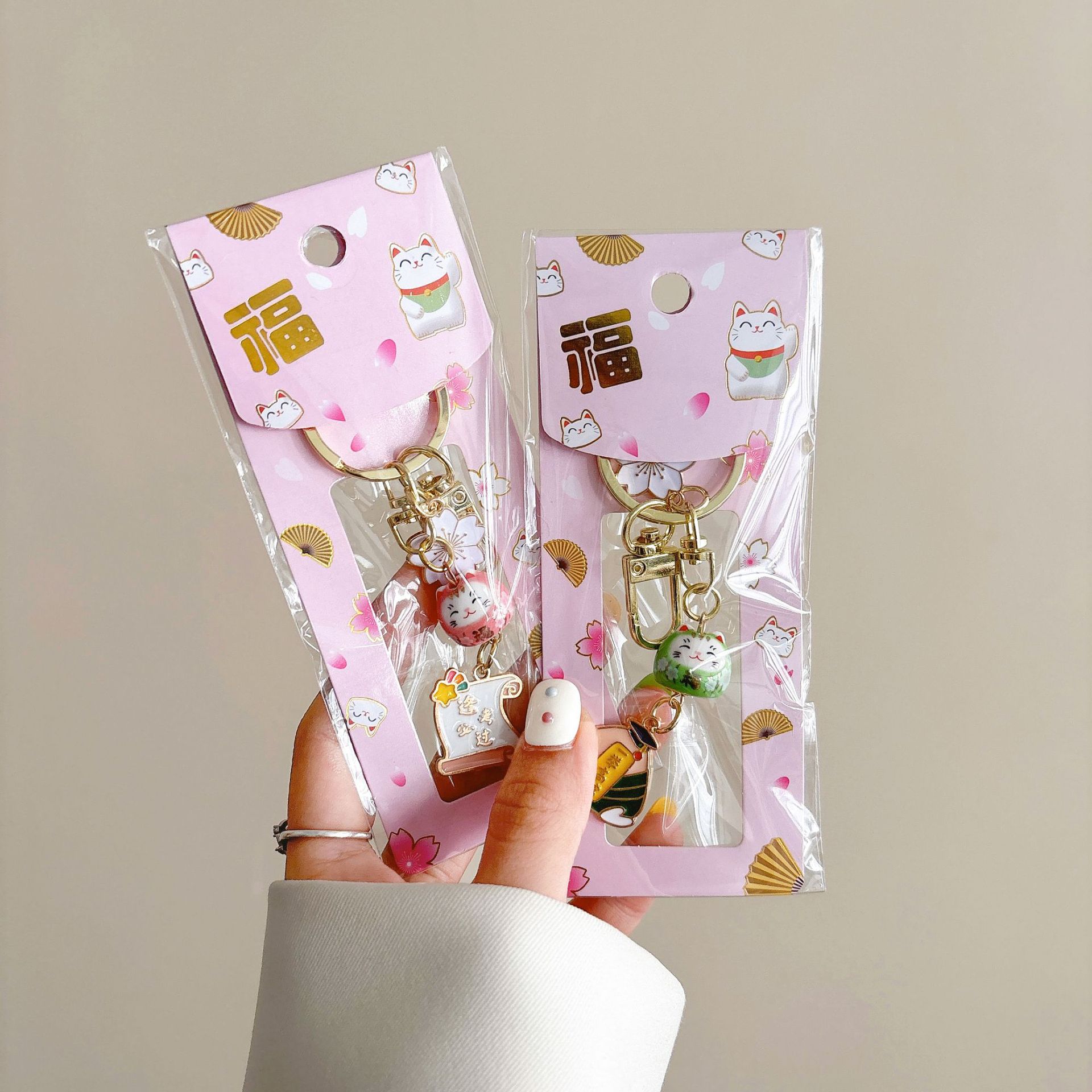 J1033 행운의 흰 꽃 고양이 세라믹 행운의 고양이 키 체인 모래 골드 매달려 장식 축복 언어 학생 졸업 시즌 선물스토어 가기