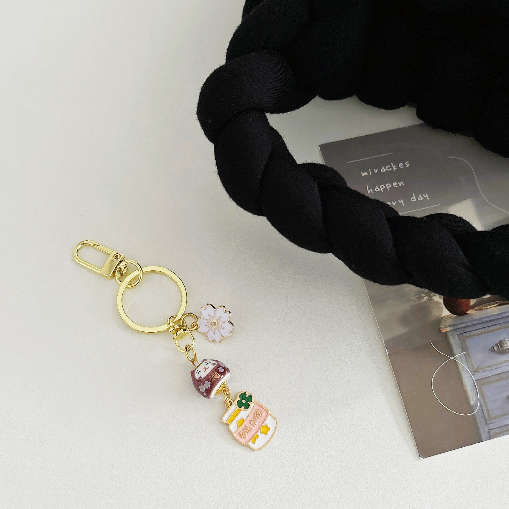 J1033 행운의 흰 꽃 고양이 세라믹 행운의 고양이 키 체인 모래 골드 매달려 장식 축복 언어 학생 졸업 시즌 선물