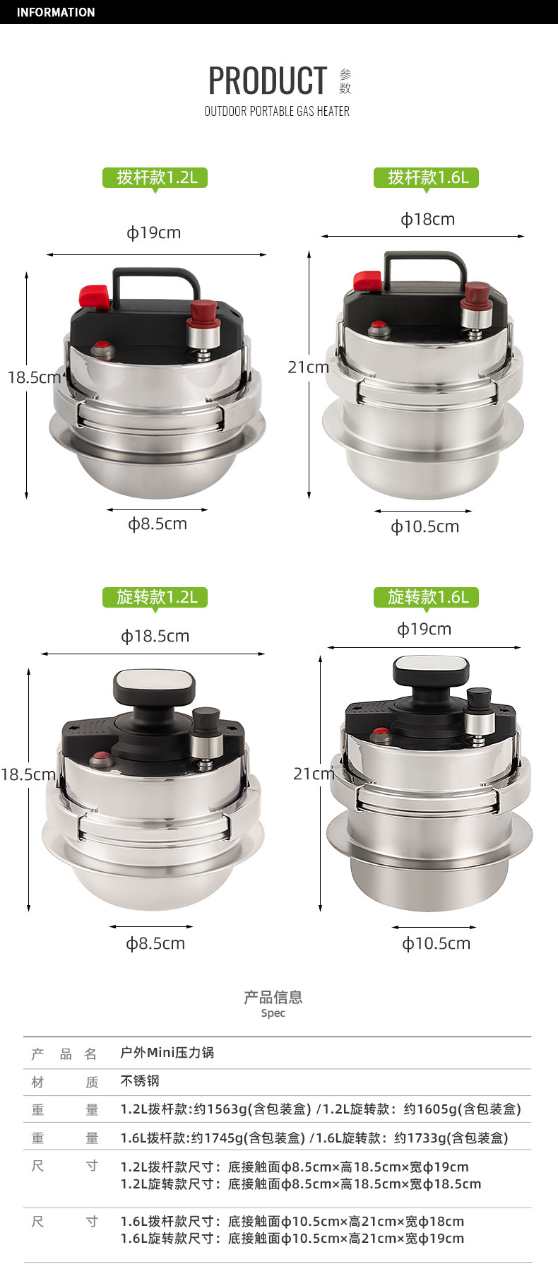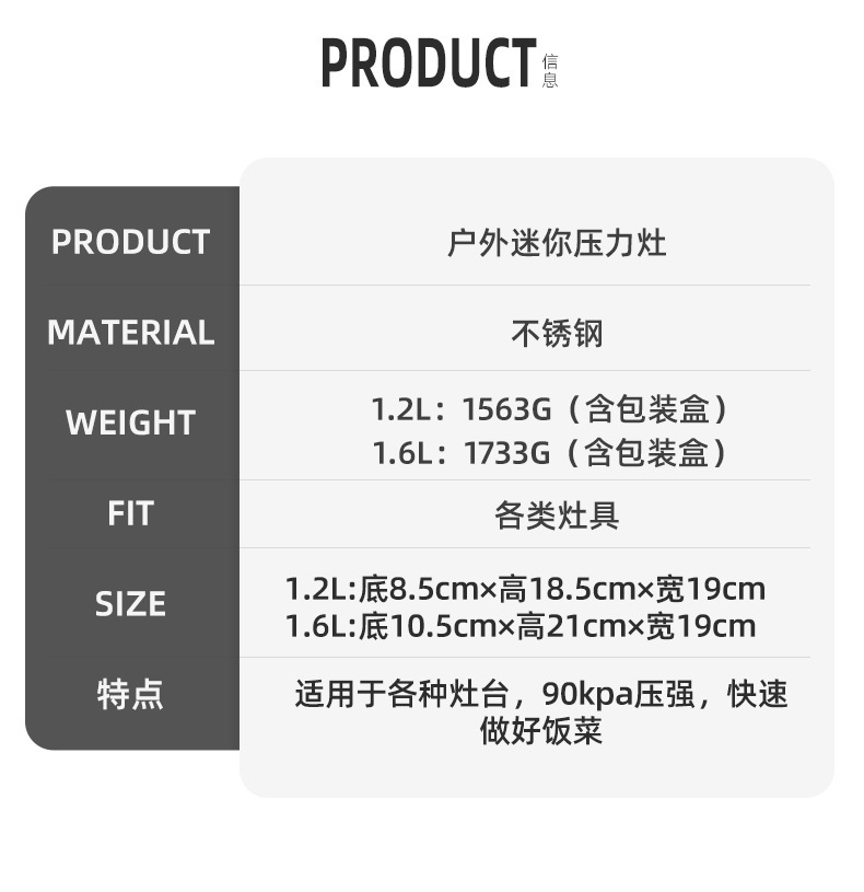 야외 캠핑 1.2L 압력솥 자동차 가정용 밥솥 인덕션 냄비 캠핑 휴대용 압력솥