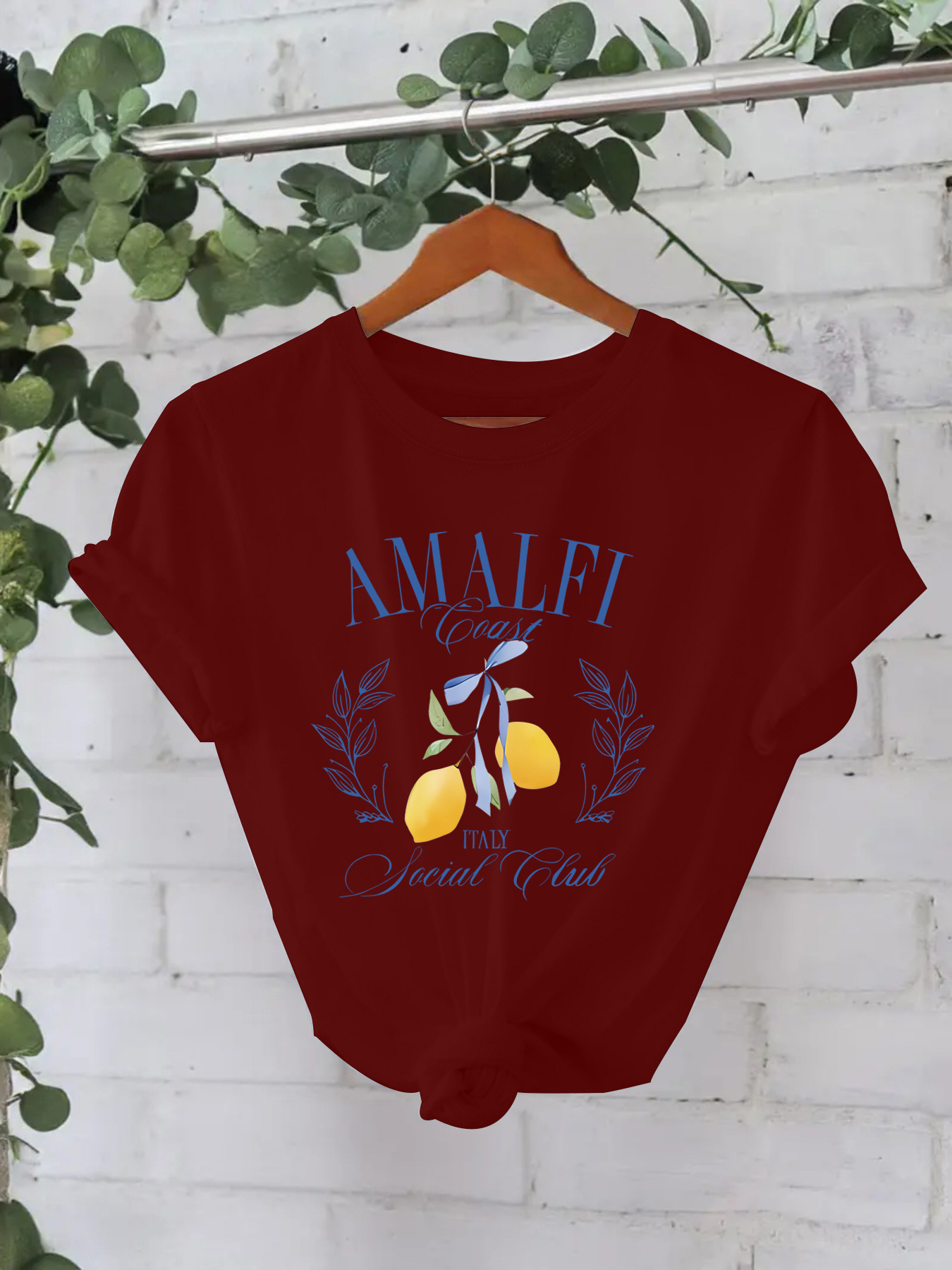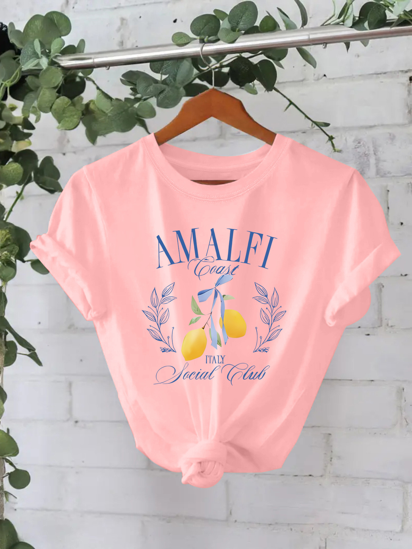 퓨어 코튼 티셔츠 유럽과 미국의 여름 짧은 소매 라운드 넥 국경 대외 무역 미국 레몬 패턴 프린트 티셔츠 여성 대외 무역 공장