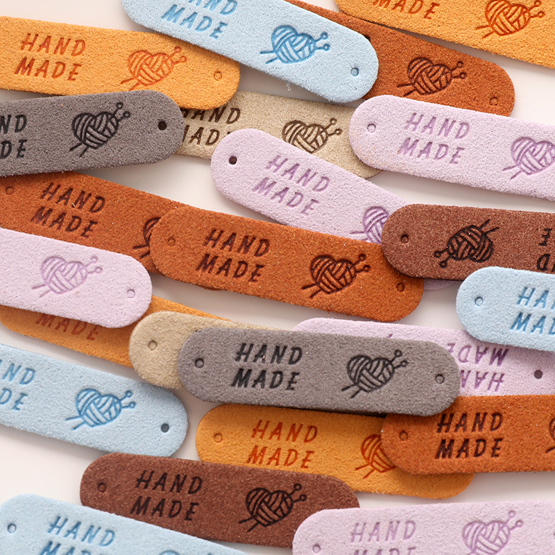 컬러 라벨 수제 사랑 두 구멍 양각 스웨이드 가죽 라벨 모자 수제 가방 아동복 장식스토어 가기