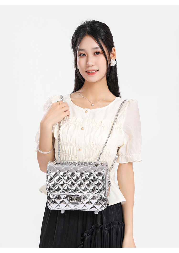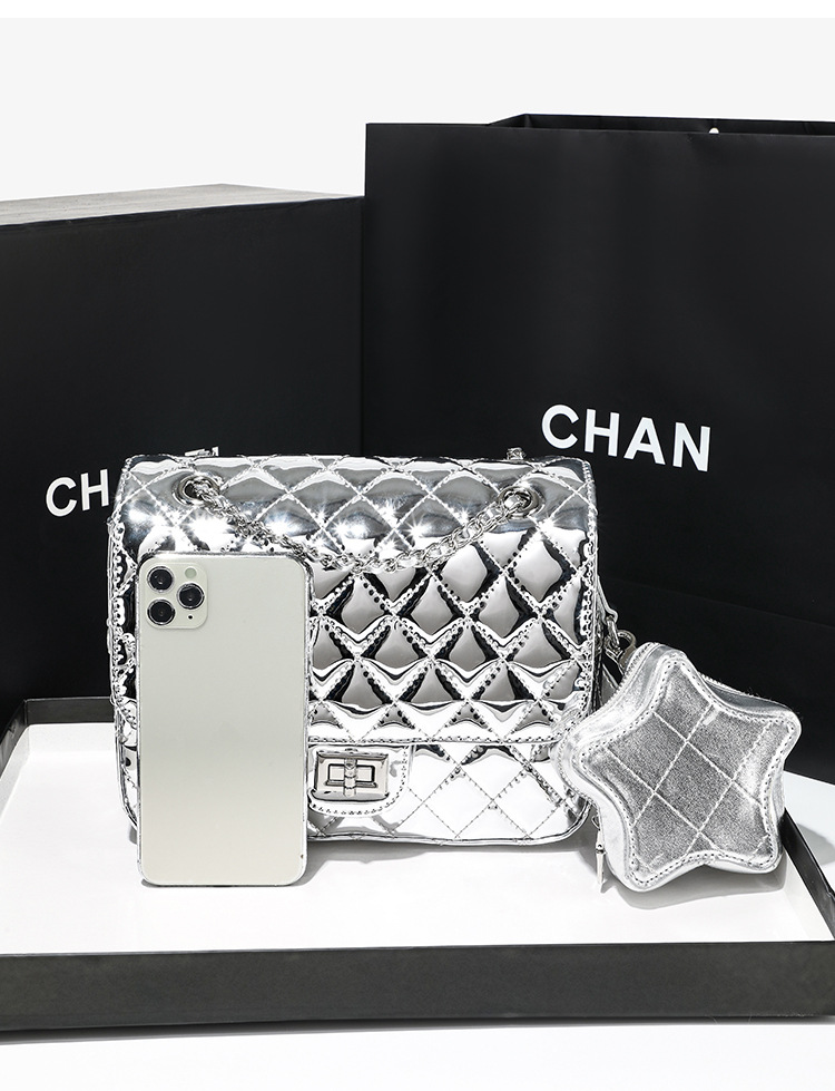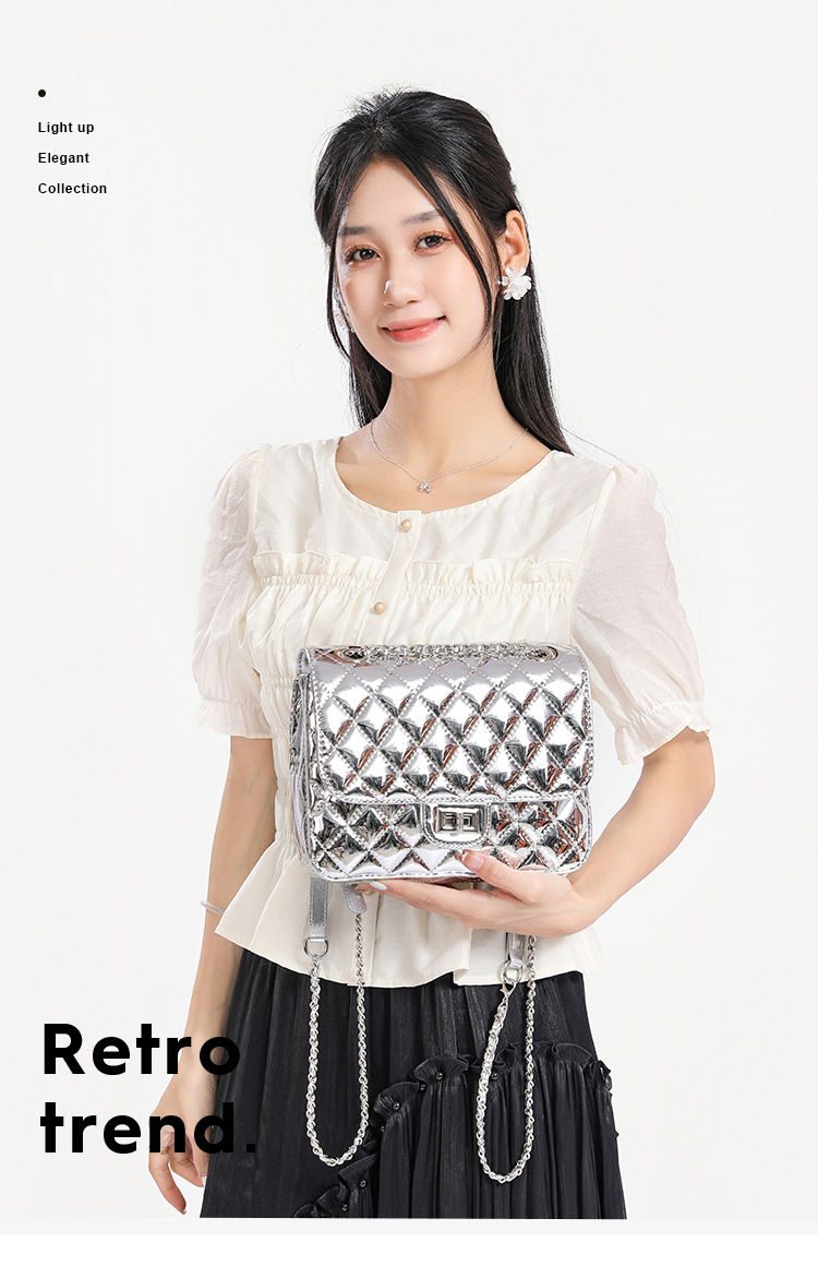 Xiaoxiangfeng 스타 다이아몬드 체인 크로스백 2025 봄 신상품, 다양한 휴대 방법, 패셔너블한 싱글 숄더 스몰 스퀘어 여성용 가방