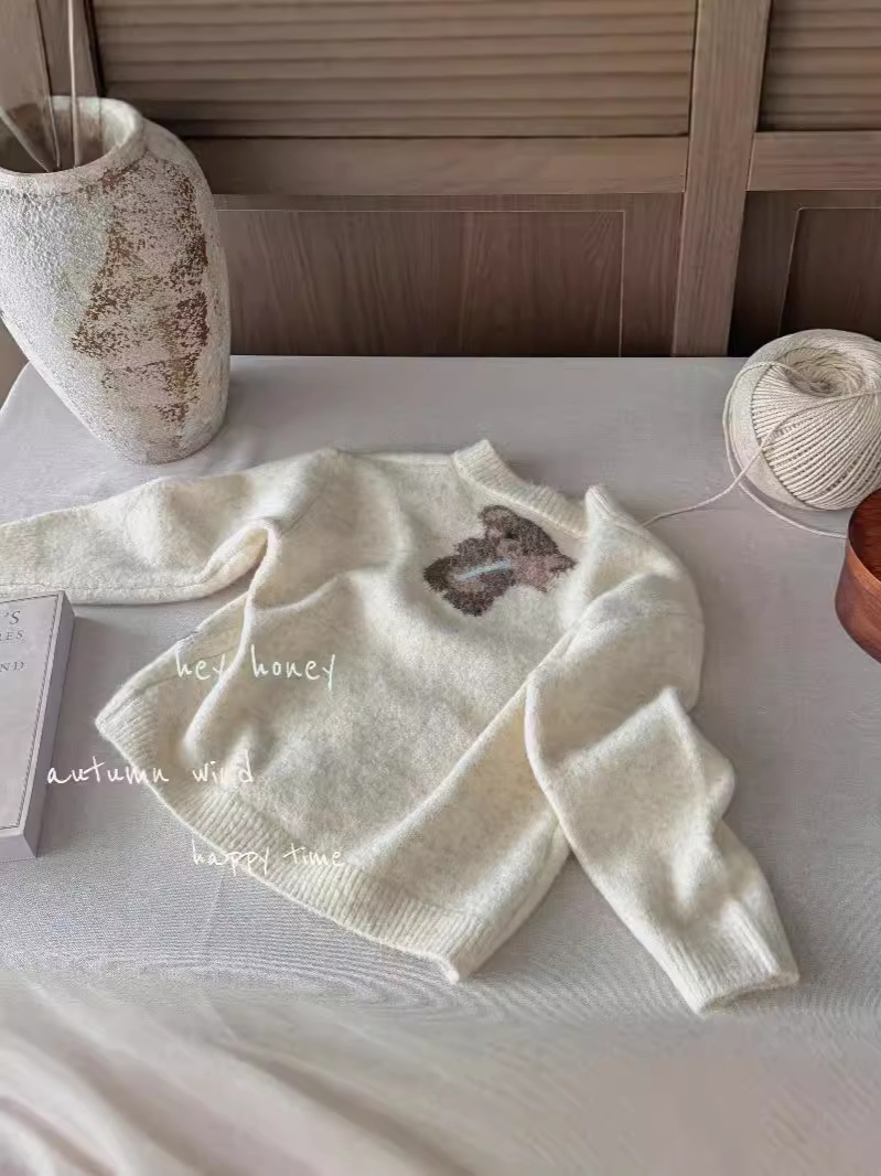 스팟 사이즈 롤 24 봄, 가을 아동용 흰색 스타일리쉬 니트 가디건 재킷 귀여운 곰 무늬 재킷 상의스토어 가기