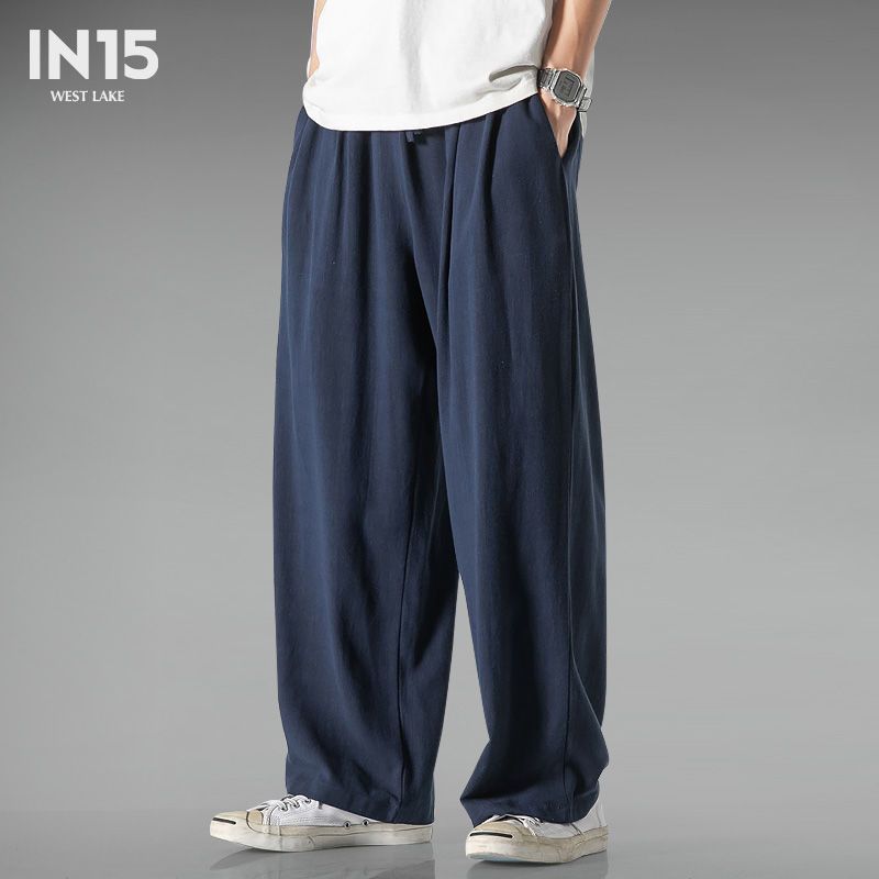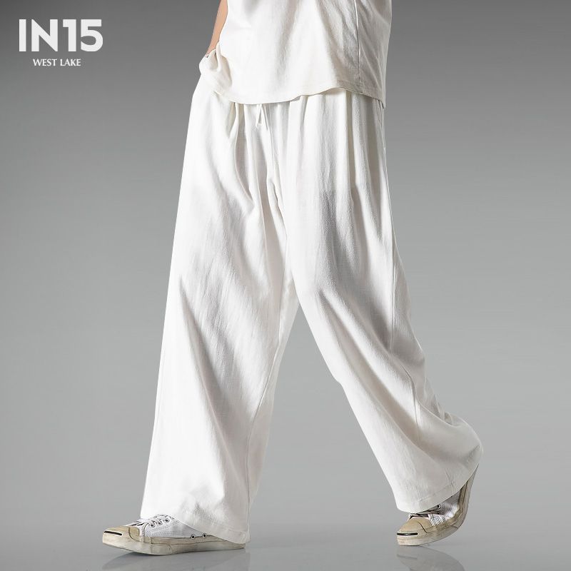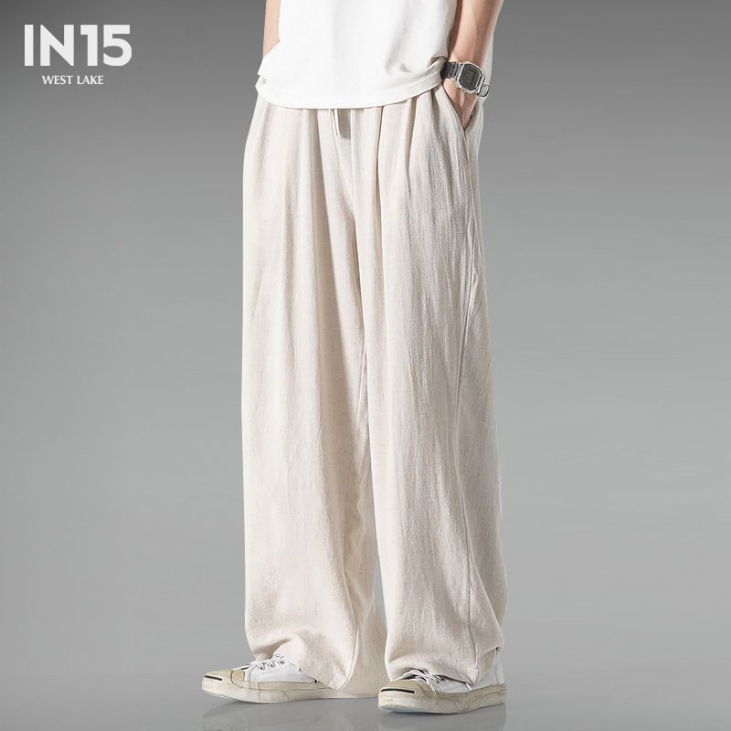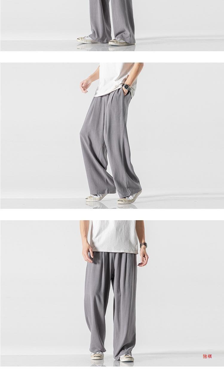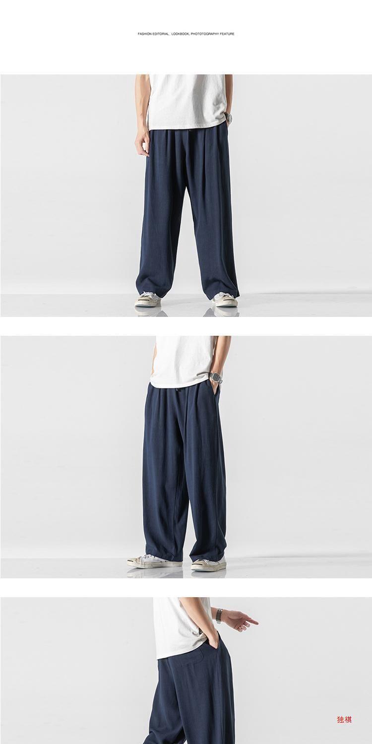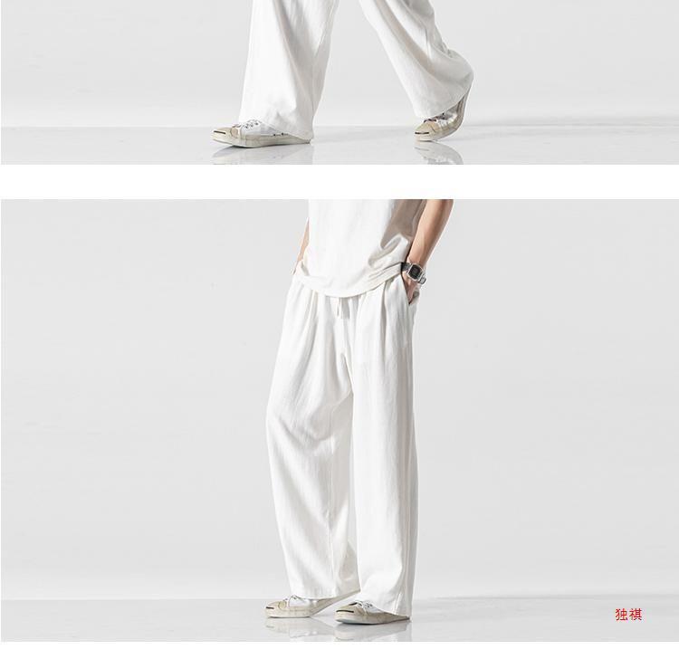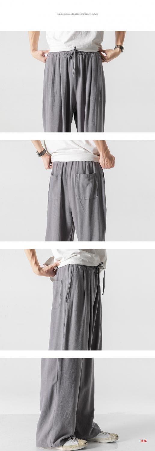 여름 플러스 사이즈 중국 스타일 면 린넨 넓은 다리 바지 남자 올 매치 바지 느슨한 편안한 캐주얼 바지 면 린넨 바지스토어 가기