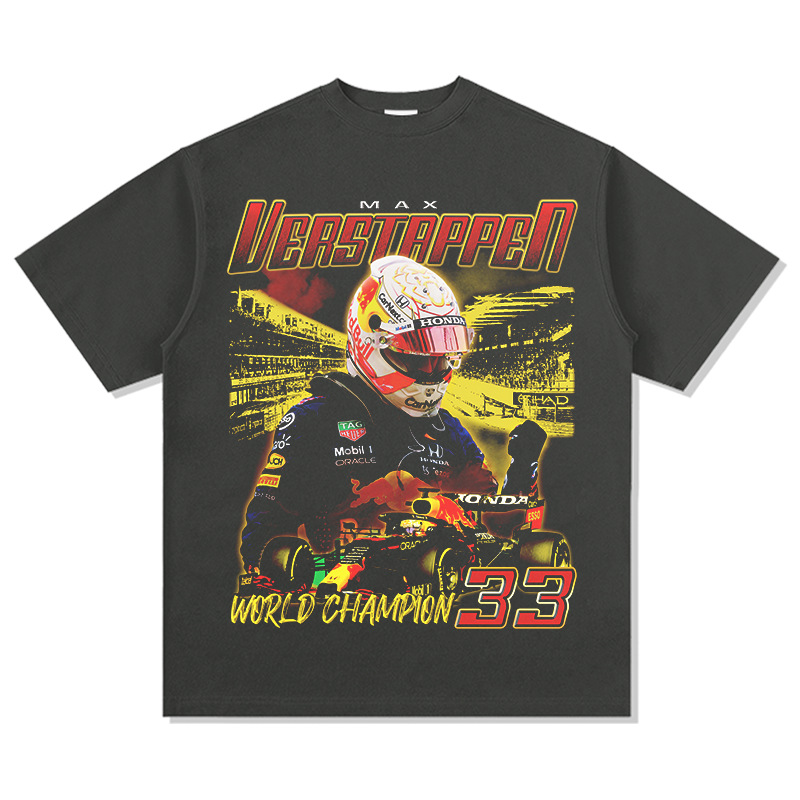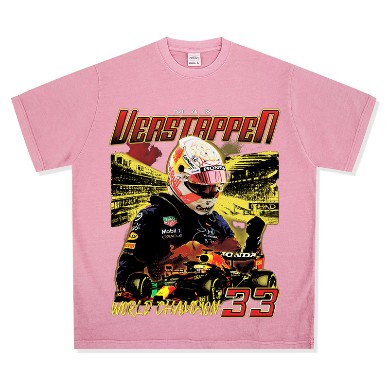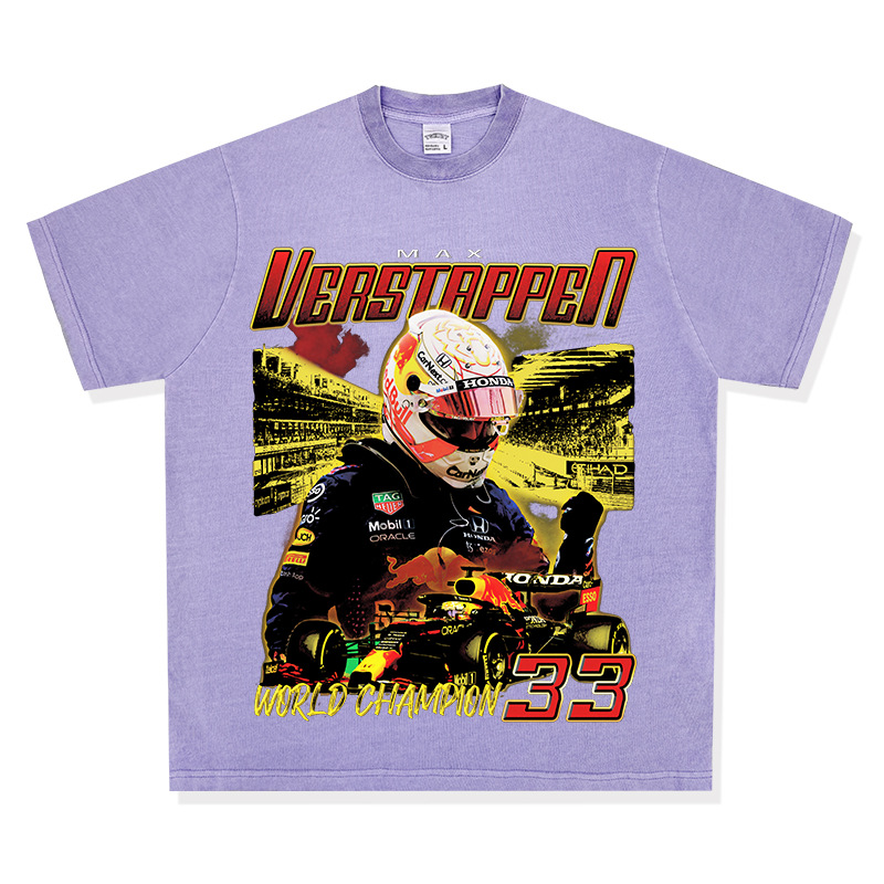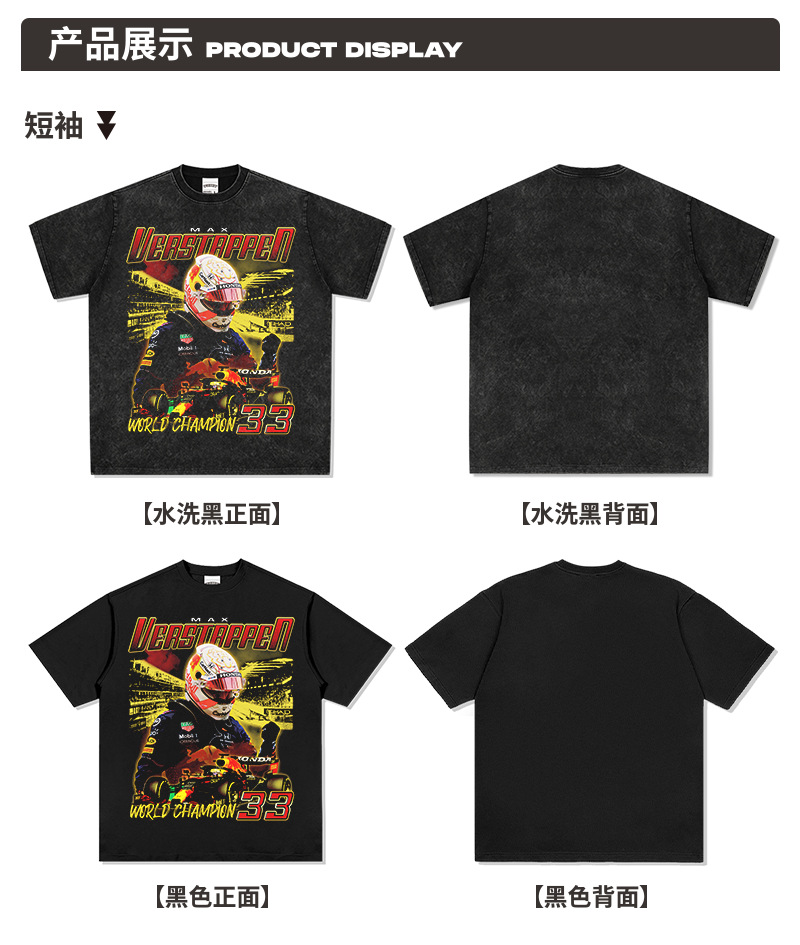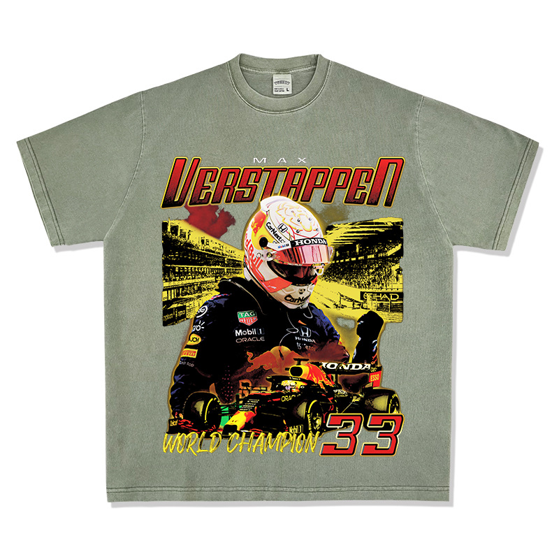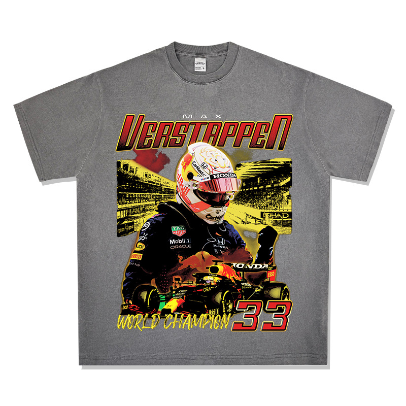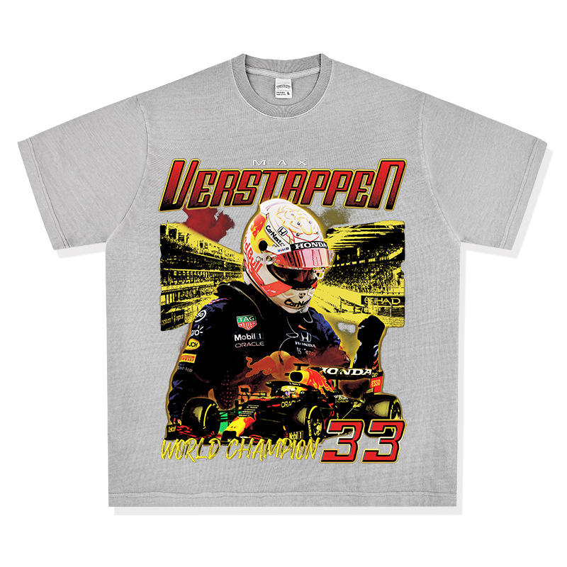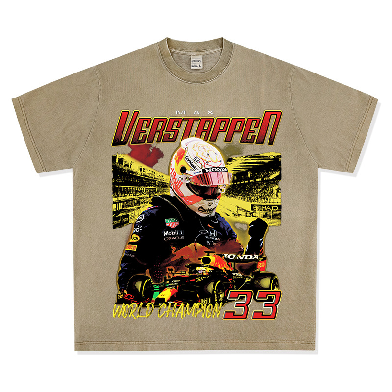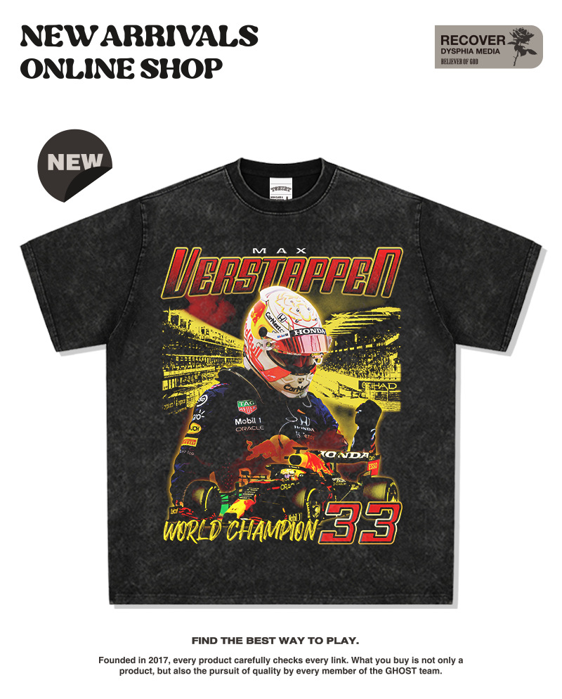 국경 간 미국 레트로 Vestapan verstappen 인쇄 반팔 티셔츠 세척 어깨 크루 넥 헤비 남성 T스토어 가기
