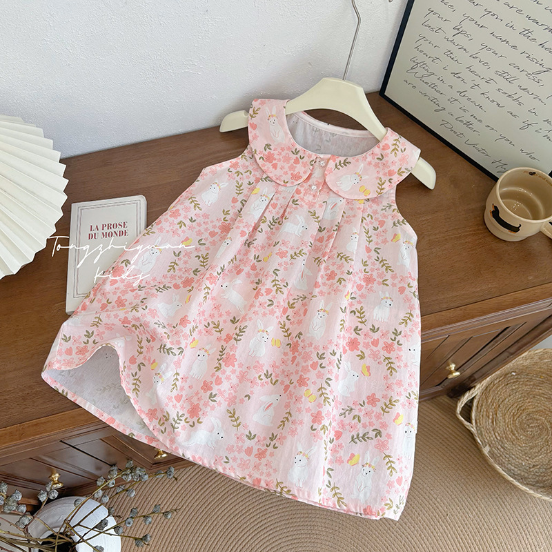 소녀 면화 꽃 Vise 원피스 2024 여름 새 도착 어린 소녀와 어린 소녀를위한 올 매치 여름 원피스 한국 스타일 공주 원피스스토어 가기