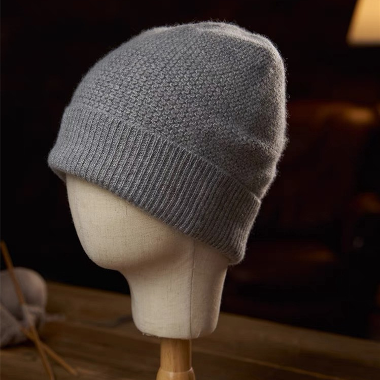 남성 가을과 겨울 새로운 두꺼운 따뜻한 귀 보호 울 캡 100 순수 울 니트 단색 모자 도매 및 소매스토어 가기