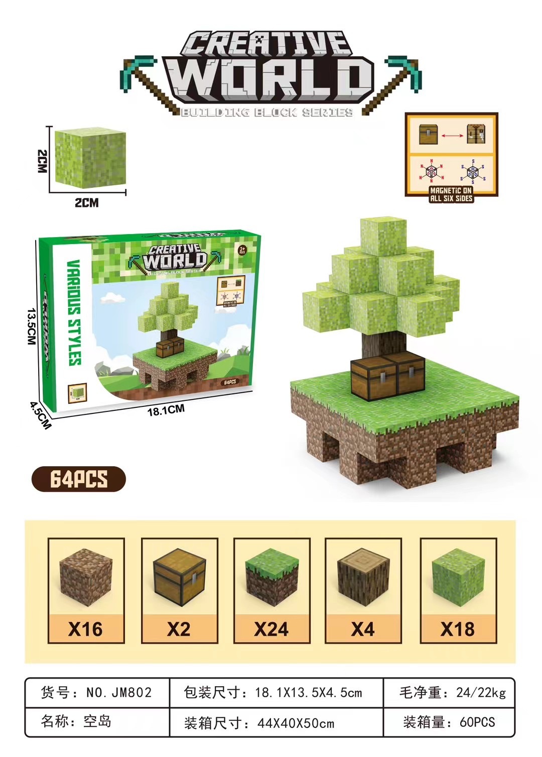 JM802空岛【64颗粒】英文彩盒、60Pcs/箱