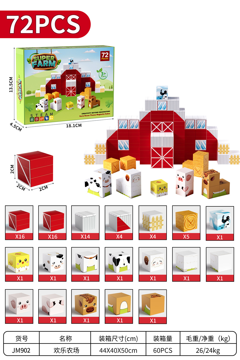 JM902欢乐农场【72颗粒】英文彩盒、60Pcs/箱