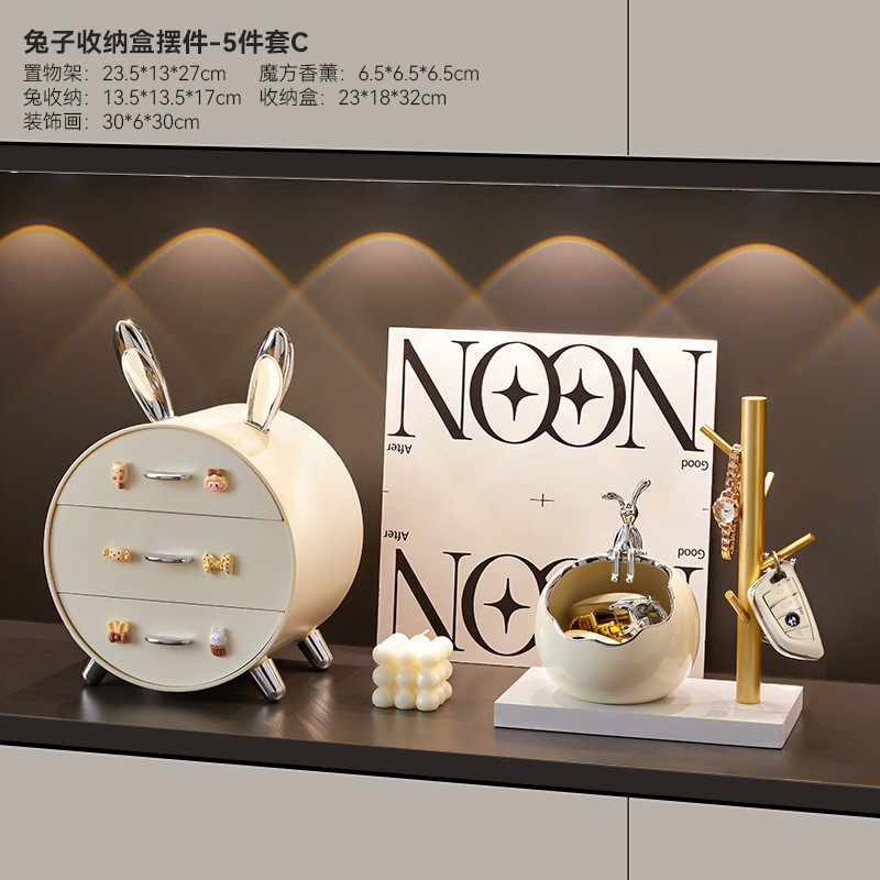 • 가벼운 럭셔리 귀여운 토끼 3 층 저장 상자 환영 홈 세트 테이블