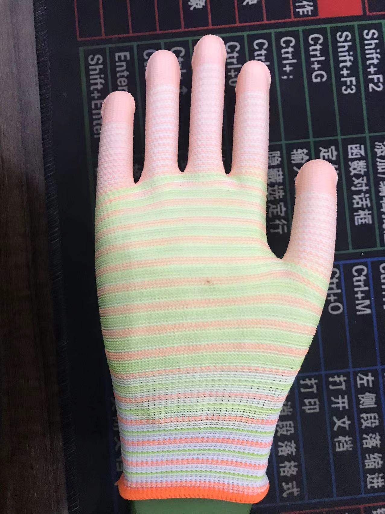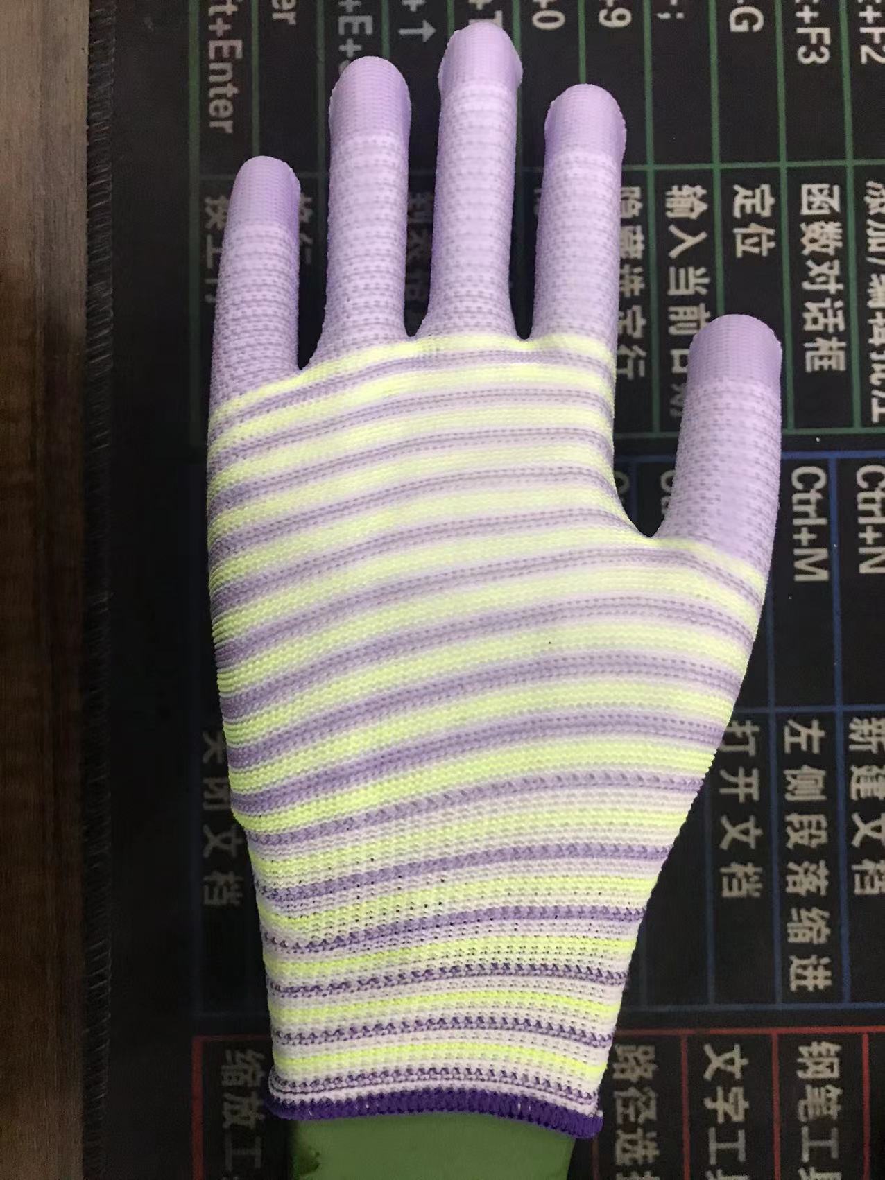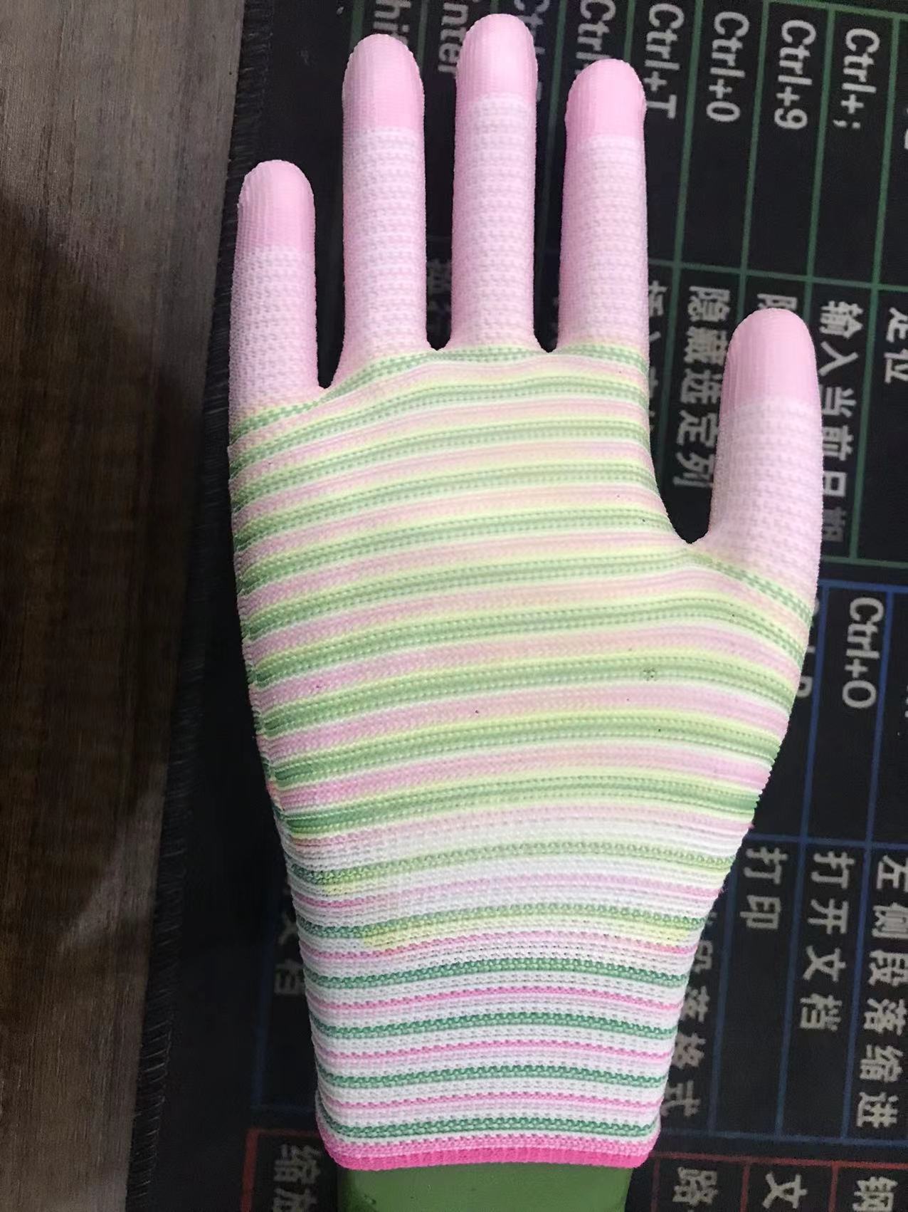 얼룩말 무늬 PU 코팅 손가락 및 손바닥 보호 장갑, 무진 작업용 코팅 미끄럼 방지 나일론 PU 장갑, 미끄럼 방지 및 내마모성