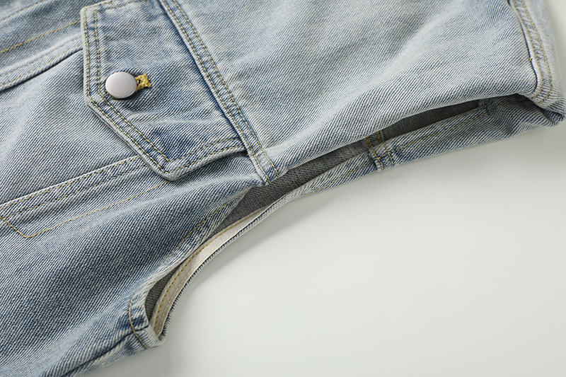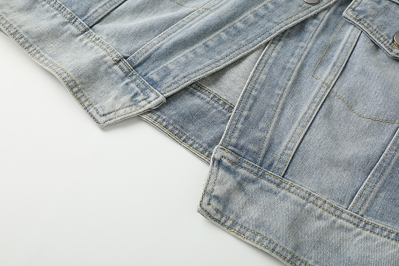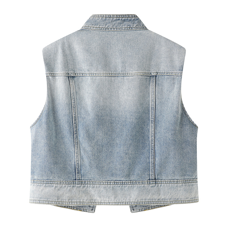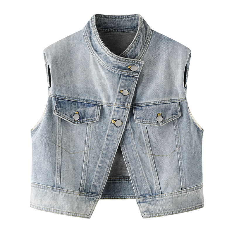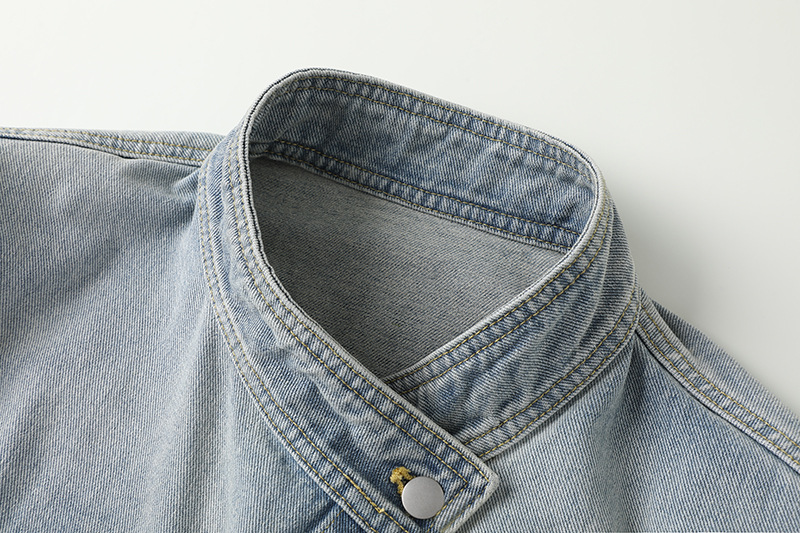가을 2024 새로운 빈티지 데님 조끼 스탠드 칼라 짧은 재킷 코트 여성 D393M6024N00