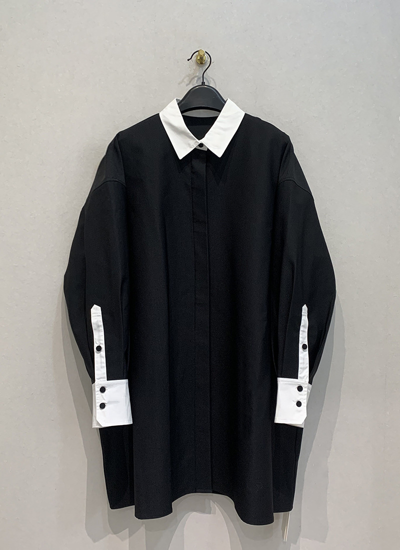 Qianhe 일본 가을 겨울 신작 ins 블로거 패셔너블한 복고풍 대비 색상 통근 게으른 셔츠 루즈 슬리밍 탑