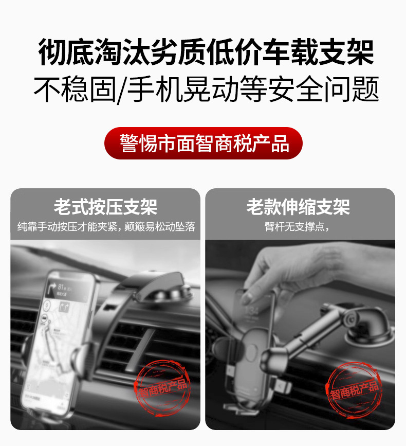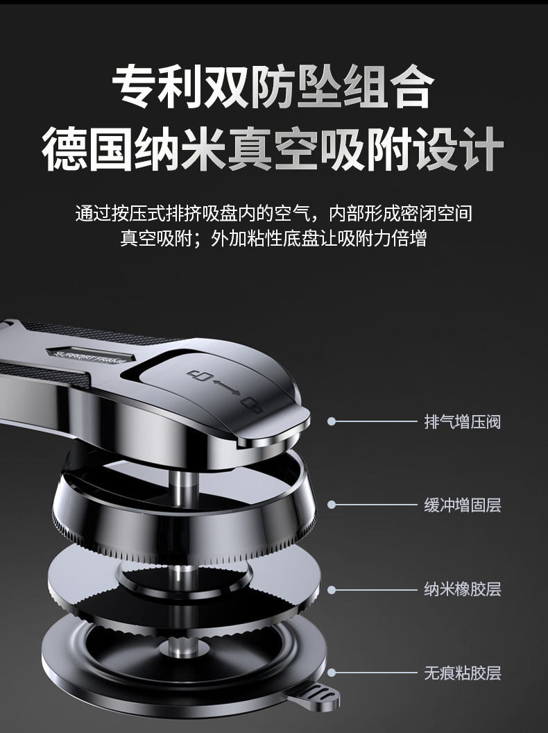 • 업그레이드 된 모델 [흡입 컵이있는 새로운 상단] 은 빠른 자동차 충전기를 흔들 수 없습니다.