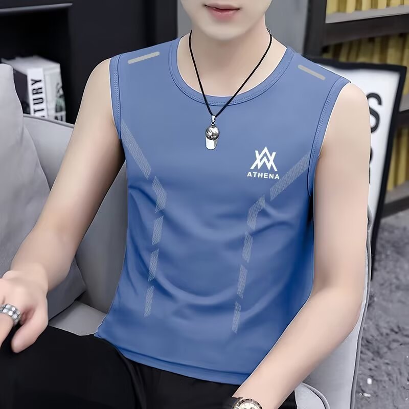 아이스 실크 민소매 티셔츠 남자 여름 얇은 트렌디 브랜드 플러스 사이즈 스포츠 피트니스 농구 웨이스트 코트 소년을위한 빠른 건조 조끼