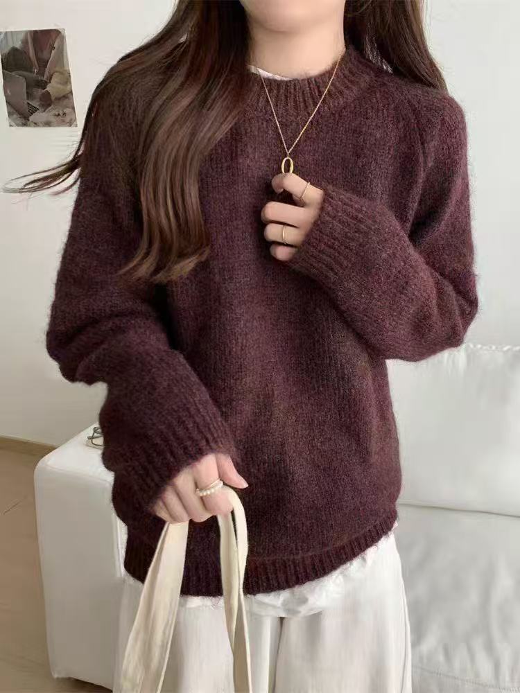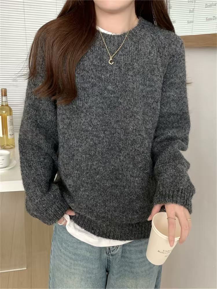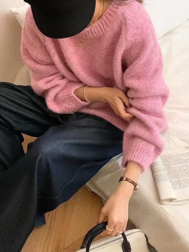 대외 무역 새로운 스타일 라운드 넥 라글란 긴 소매 혼합 색상 플러시 느슨한 풀오버 스웨터 여성 플러스 사이즈 캐주얼 풀오버스토어 가기