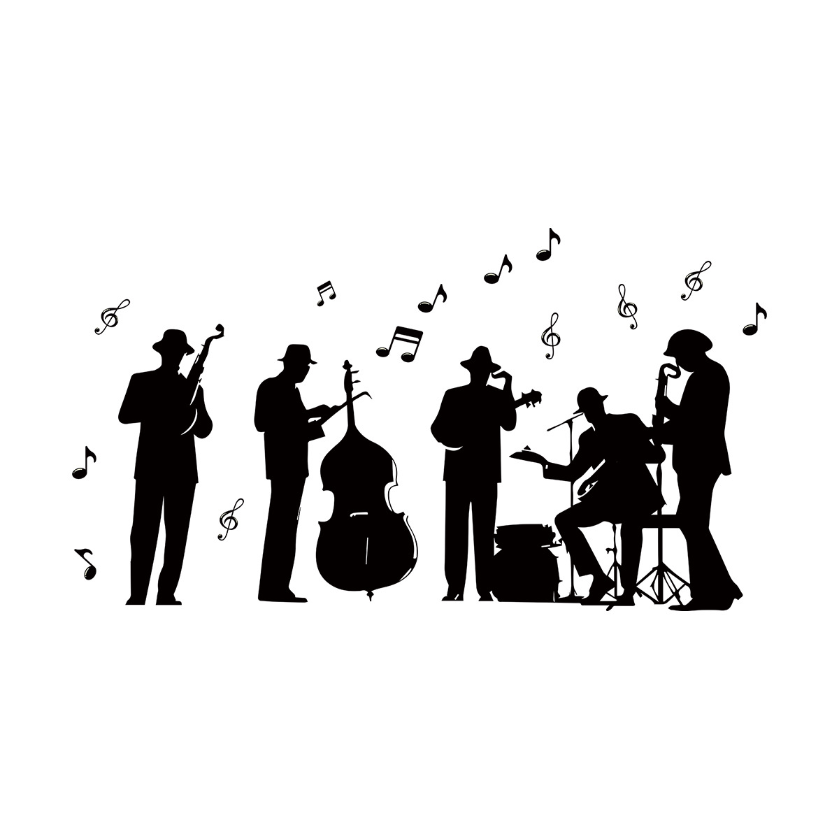 간단한 아트 재즈 밴드 노트 자체 접착 벽 스티커 피아노 룸 바 배경 벽 장식 스티커 BR0768E스토어 가기