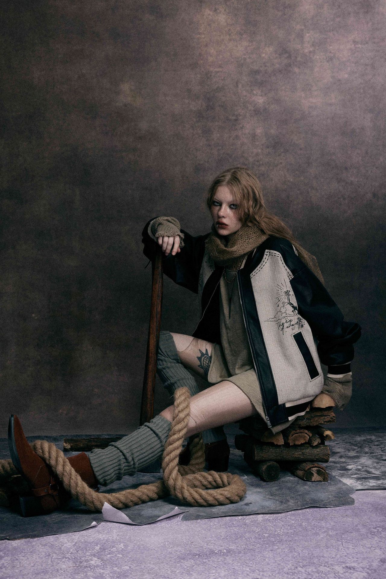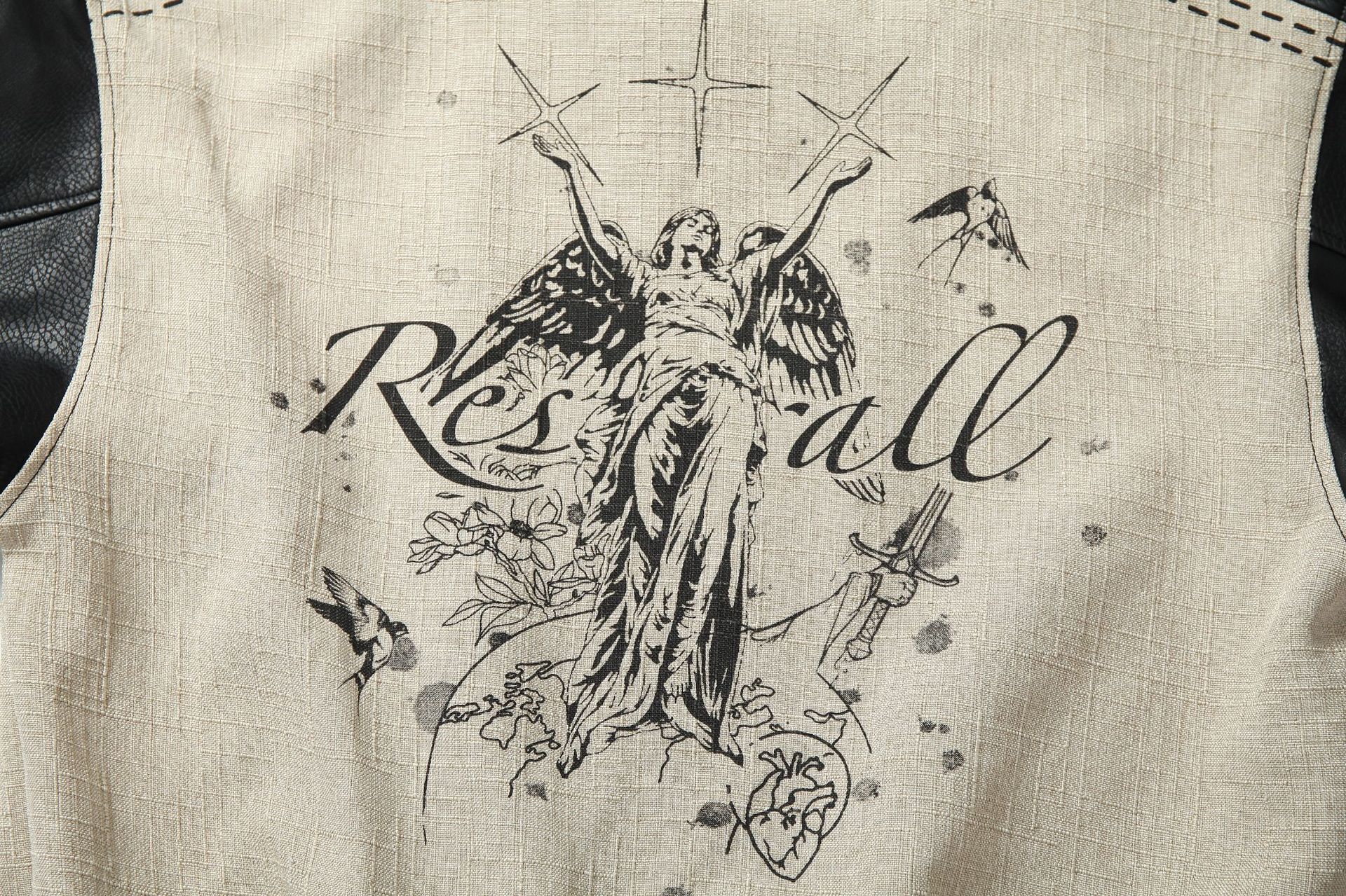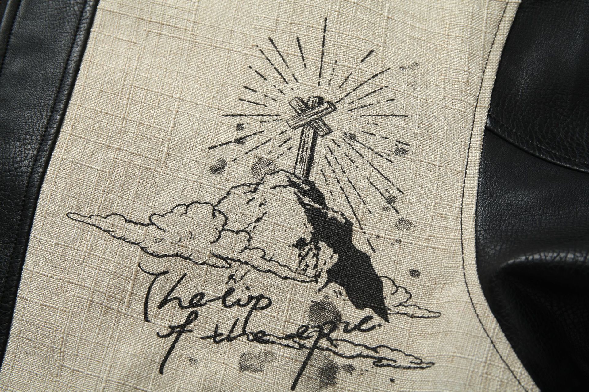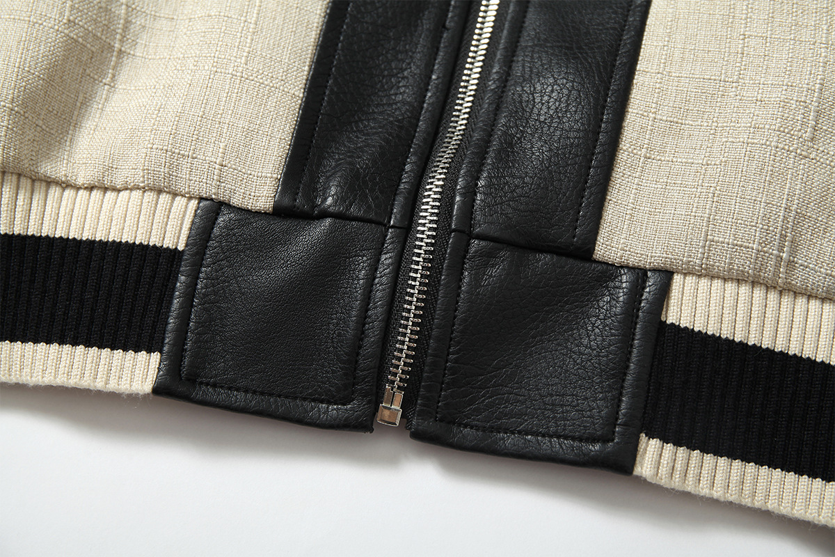 Jiayiku 트렌디 브랜드 봄버 재킷 아메리칸 레트로 다크 프린트 가죽 재킷 남성용 야구 재킷