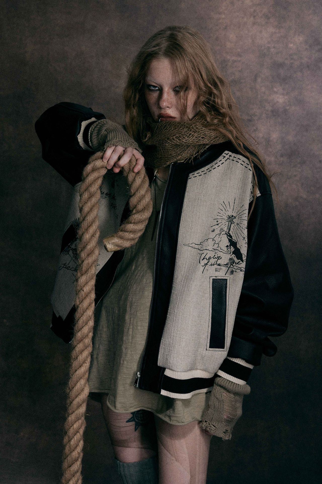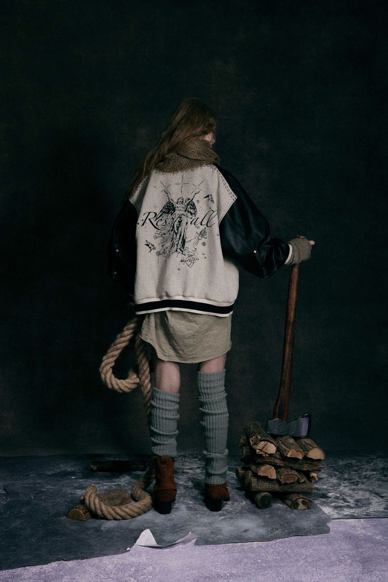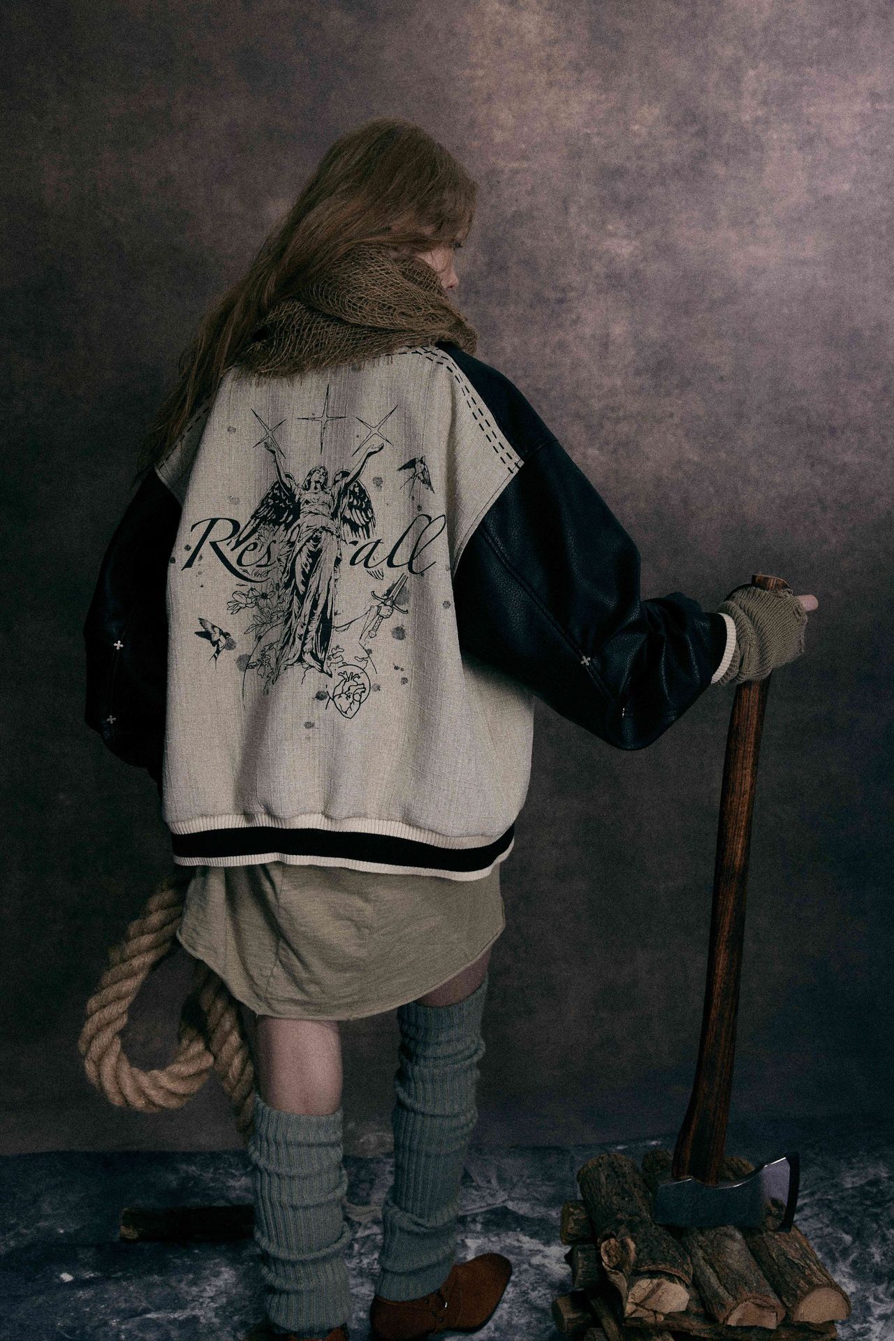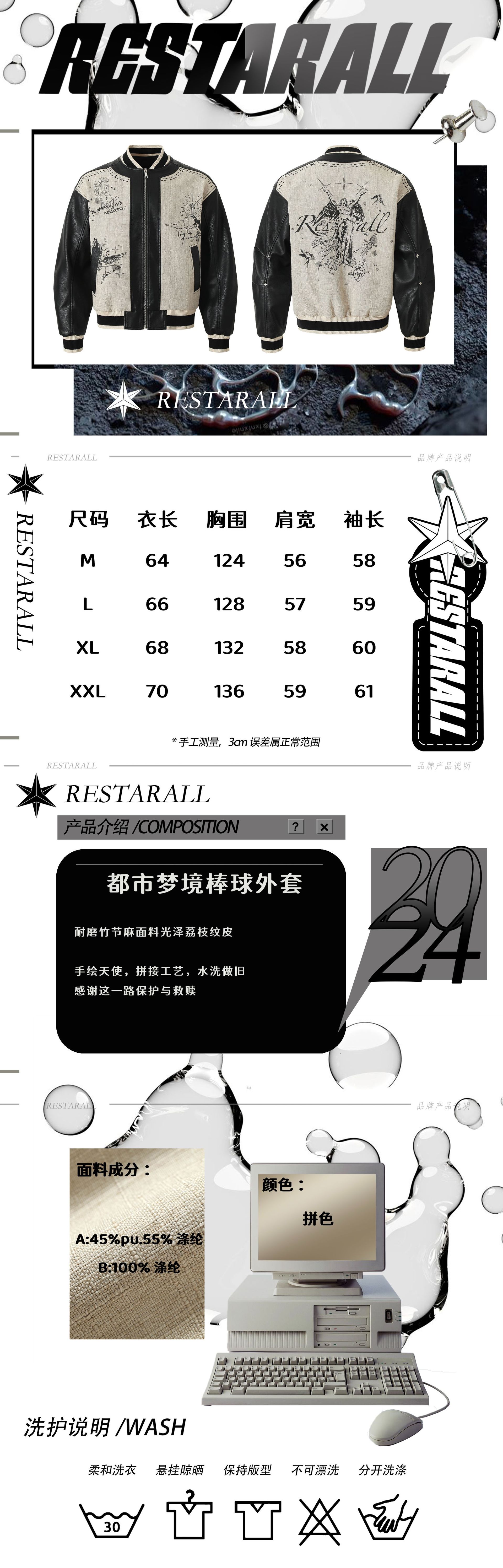 Jiayiku 트렌디 브랜드 봄버 재킷 아메리칸 레트로 다크 프린트 가죽 재킷 남성용 야구 재킷스토어 가기