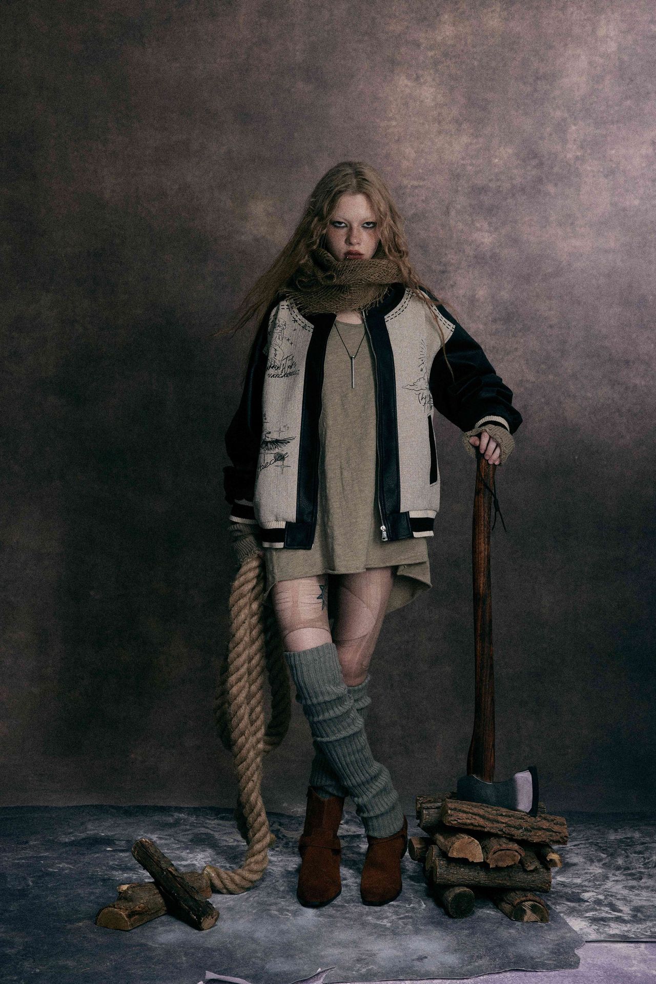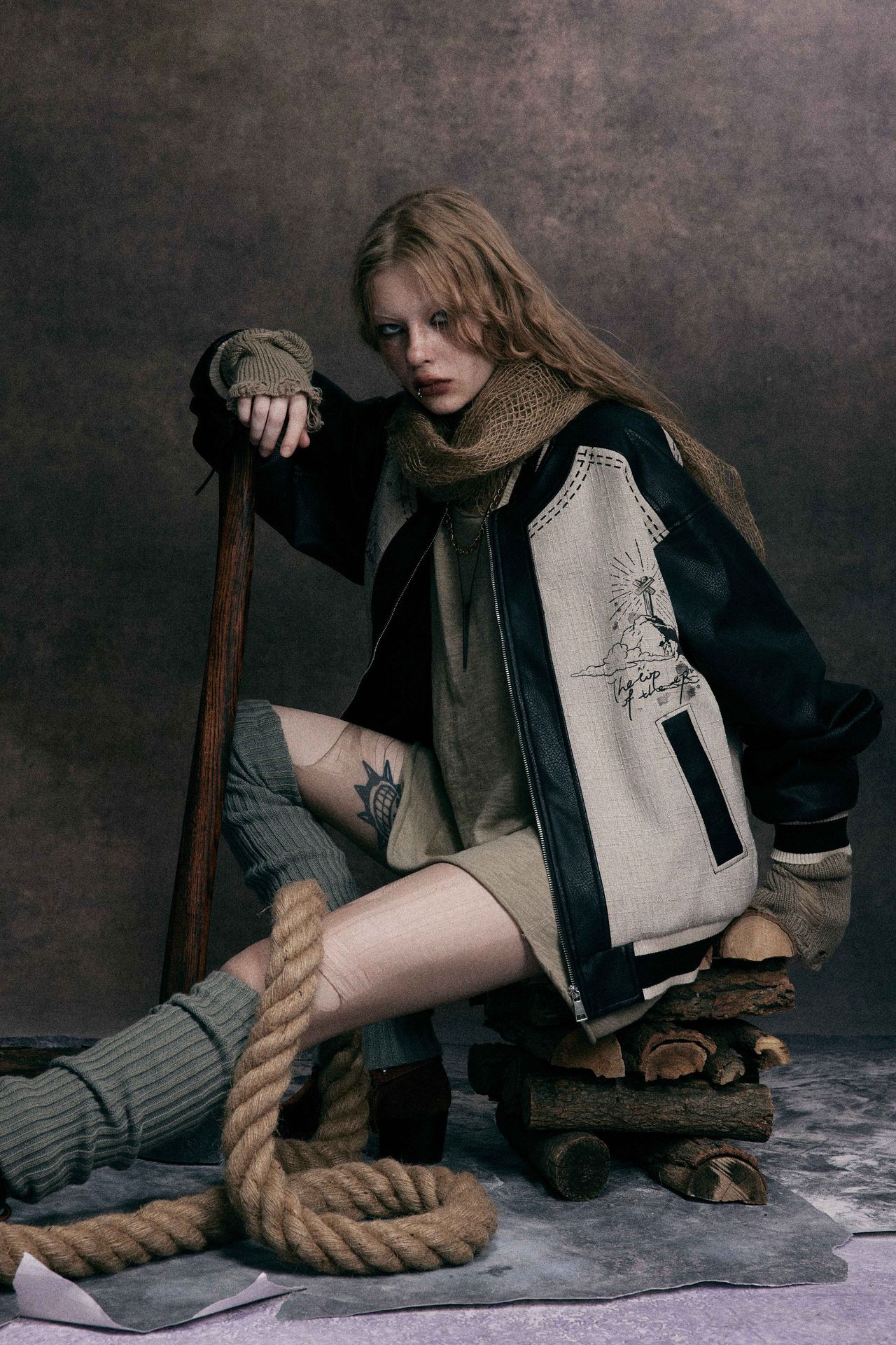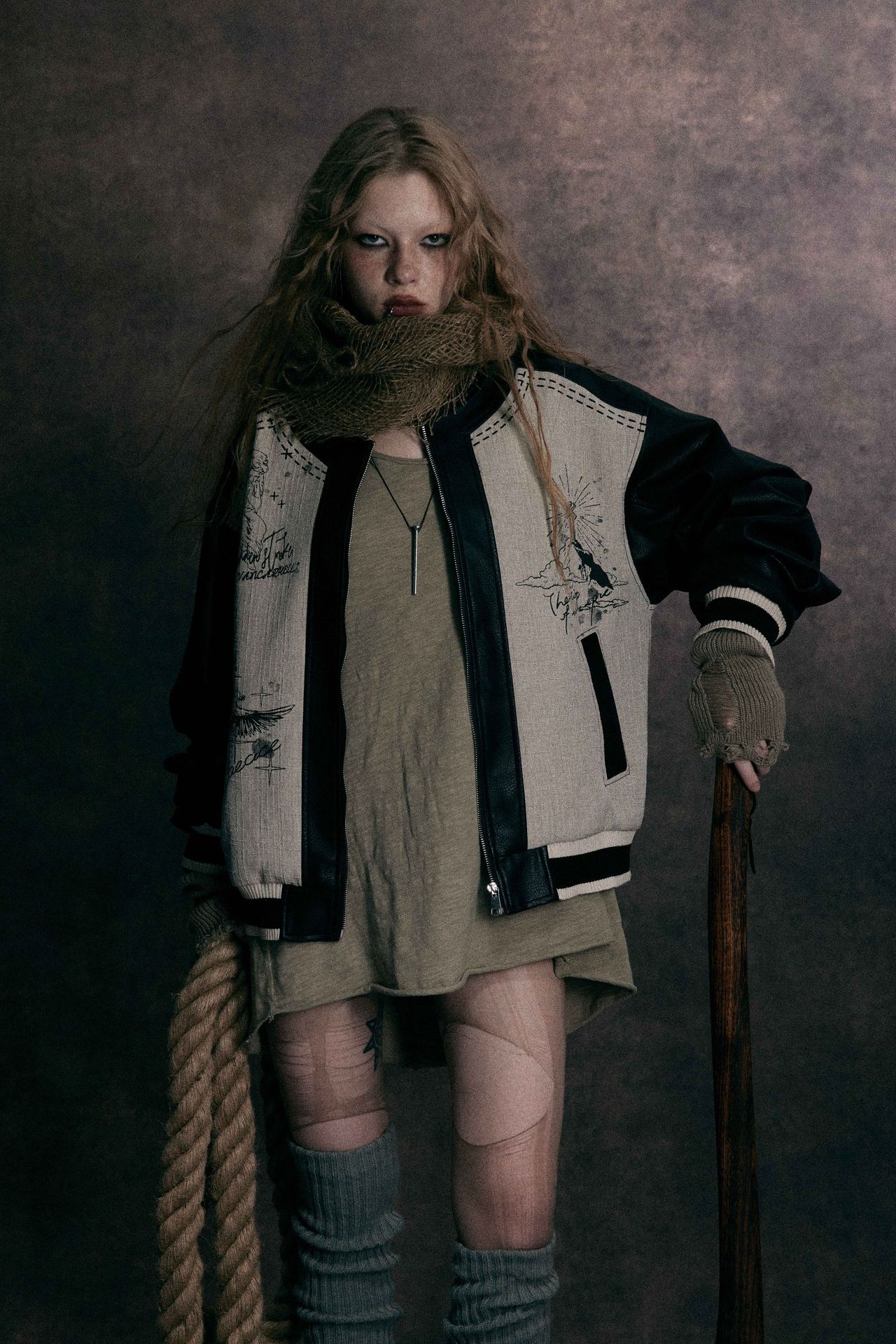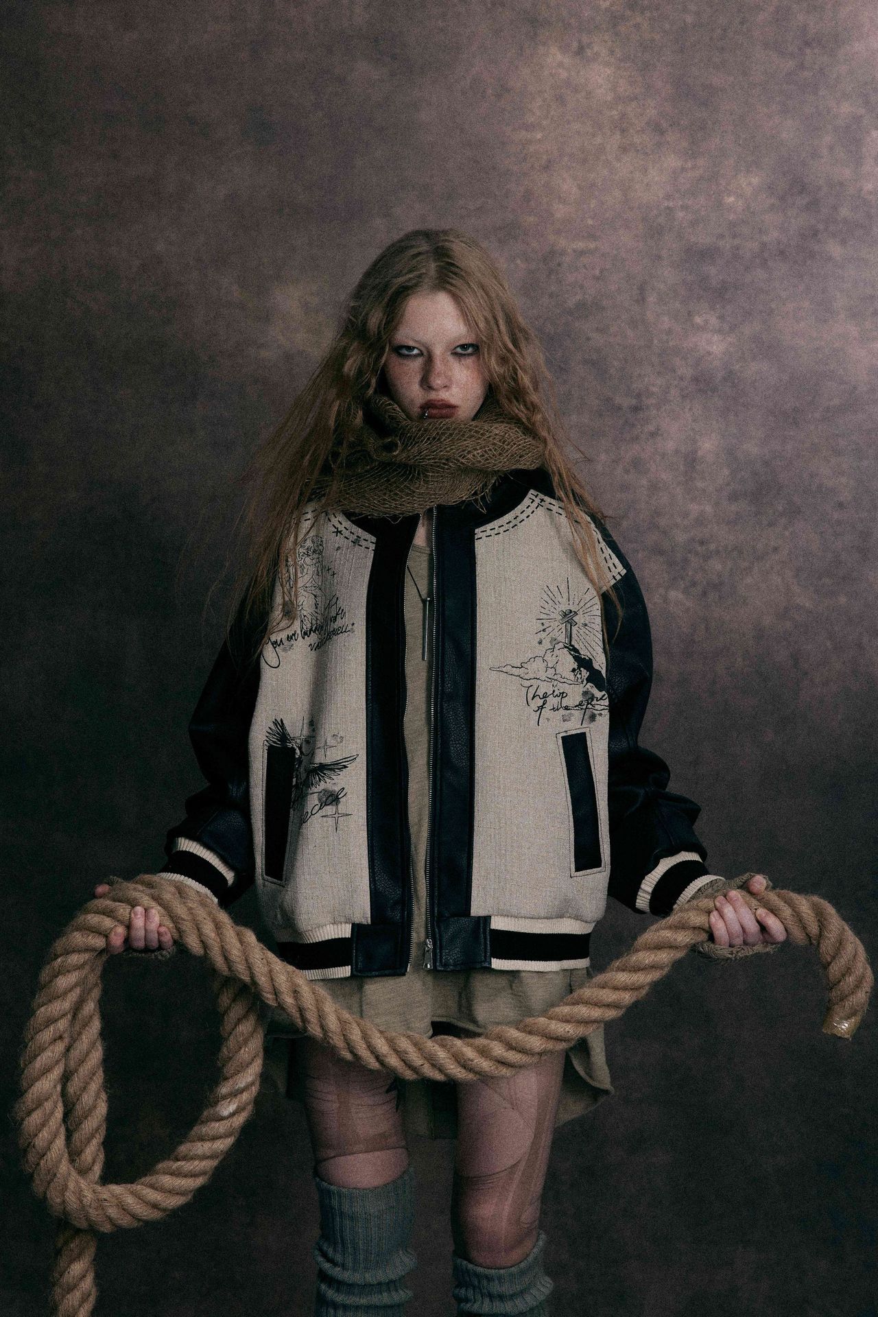 Jiayiku 트렌디 브랜드 봄버 재킷 아메리칸 레트로 다크 프린트 가죽 재킷 남성용 야구 재킷스토어 가기