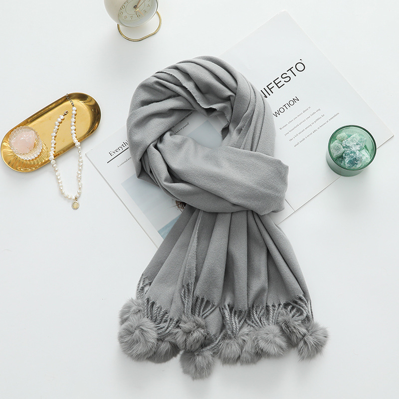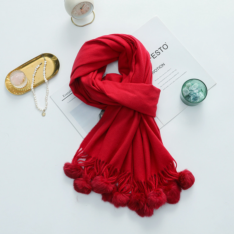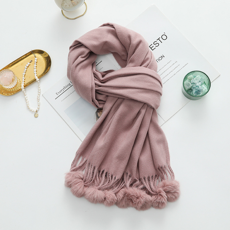 모피 볼 스카프 여자 가을 및 겨울 올 매치 양모 캐시미어 스카프 목도리 고급 솔리드 컬러 새로운 모방 캐시미어 스카프