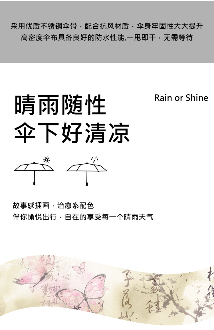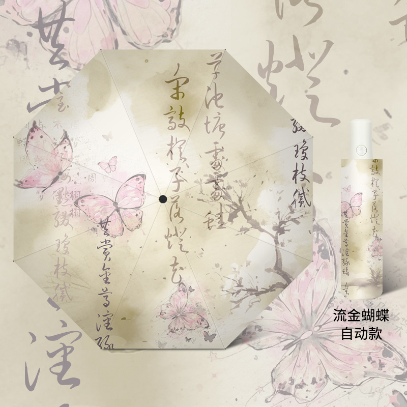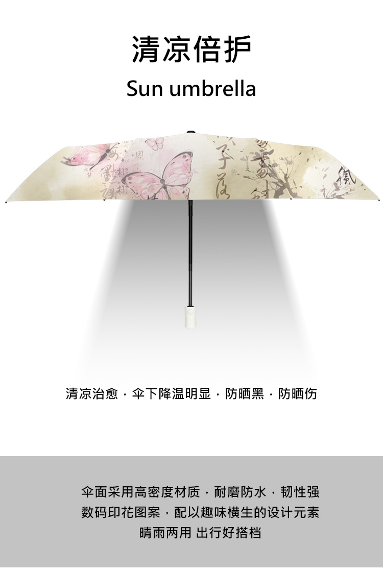 Guofeng 접히는 우산 안티-자외선 선 스크린 자동 차양 태양 우산 검은 고무 맑고 비 이중 목적 광고 우산스토어 가기