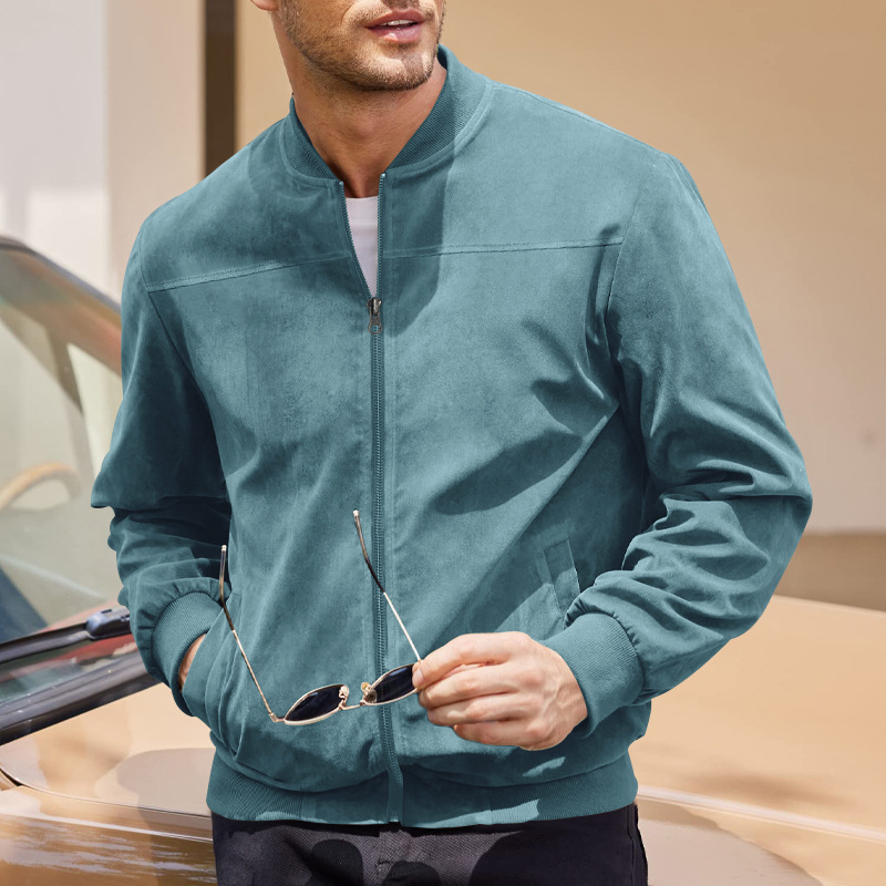 국경 아마존 가을 스웨이드 솔리드 컬러 남성용 지퍼 자켓 남성용 캐주얼 레트로 긴팔 카디건 자켓