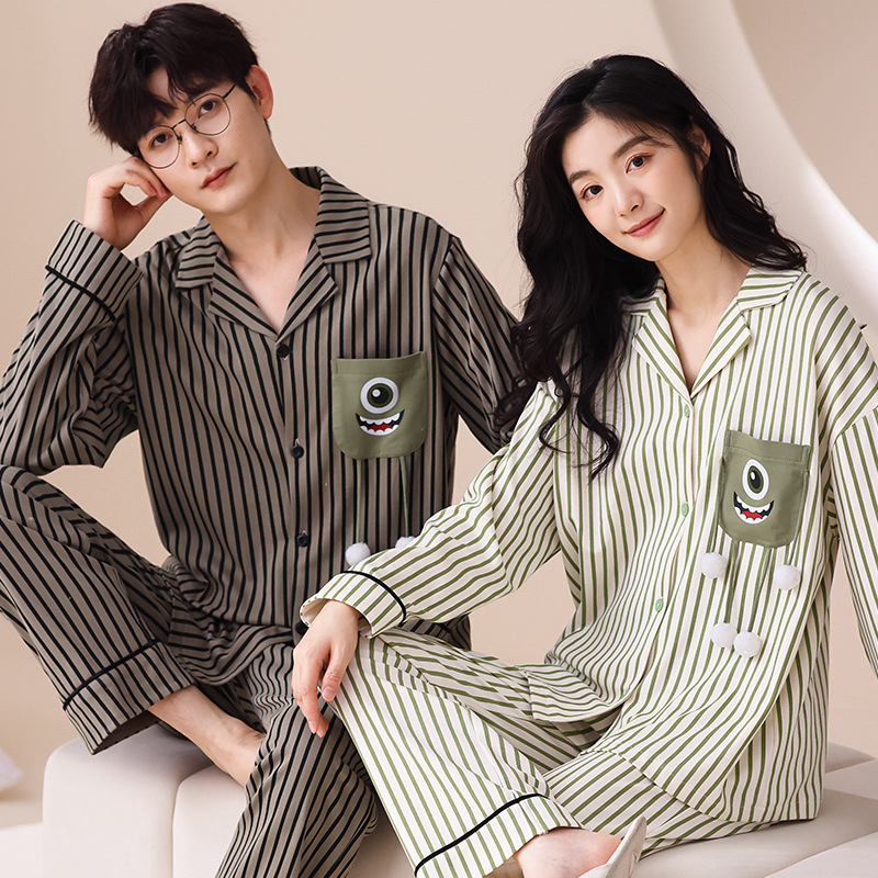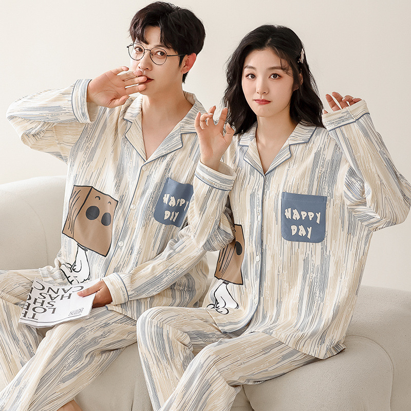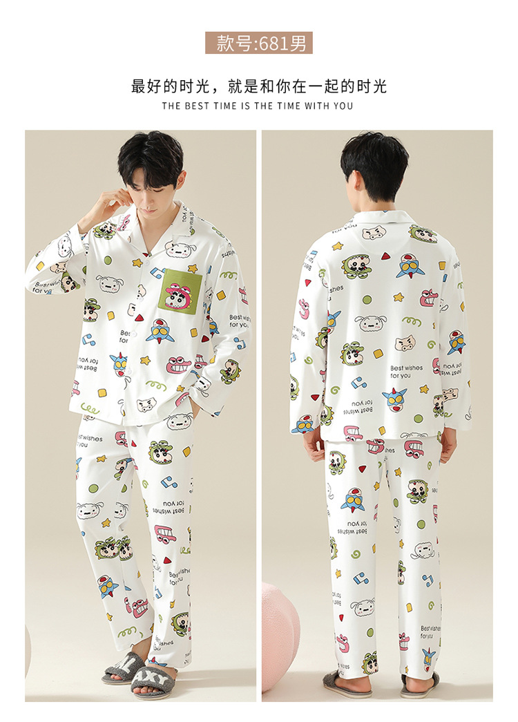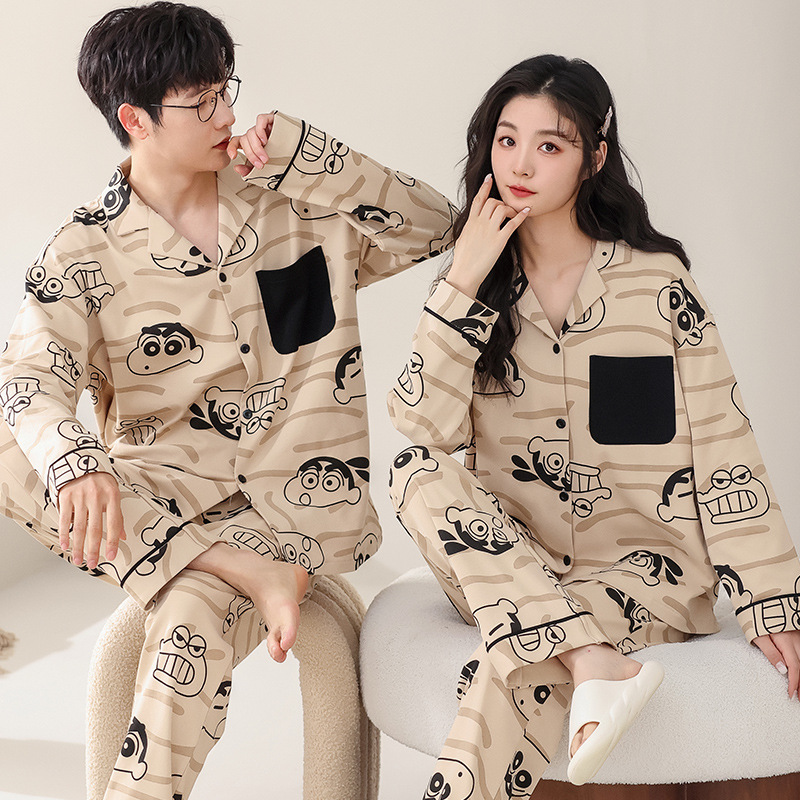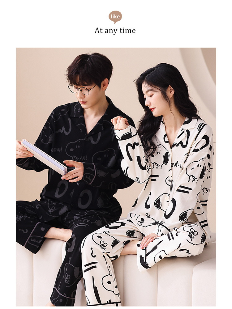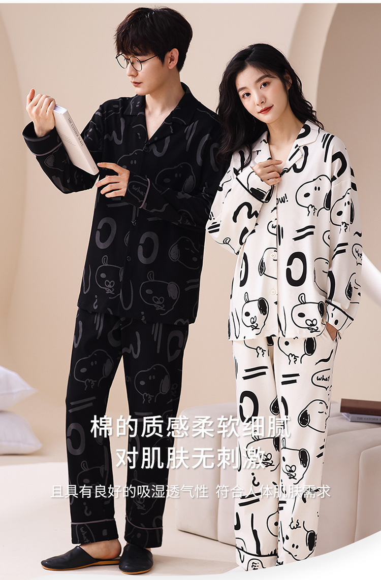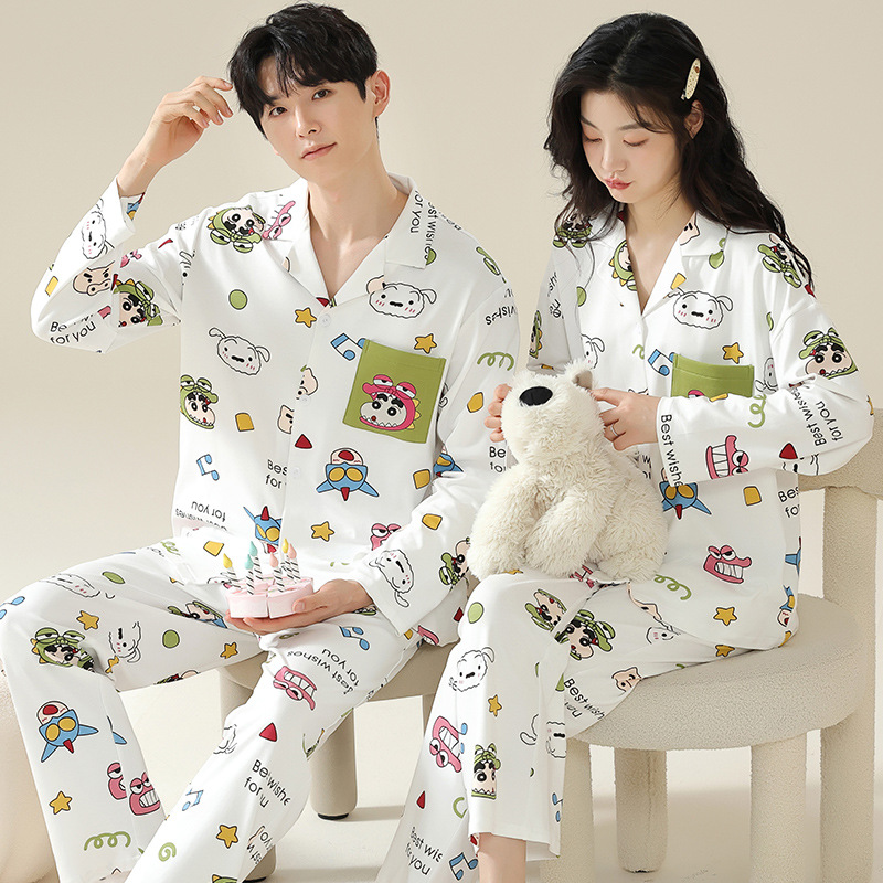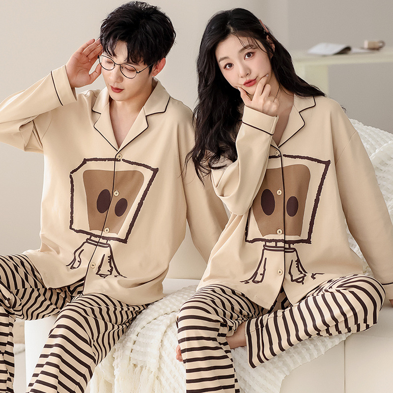 2025 신상 커플 잠옷 봄 가을 순면 긴팔 귀여운 만화 캐릭터 남녀 공용 외출복 홈웨어 세트스토어 가기
