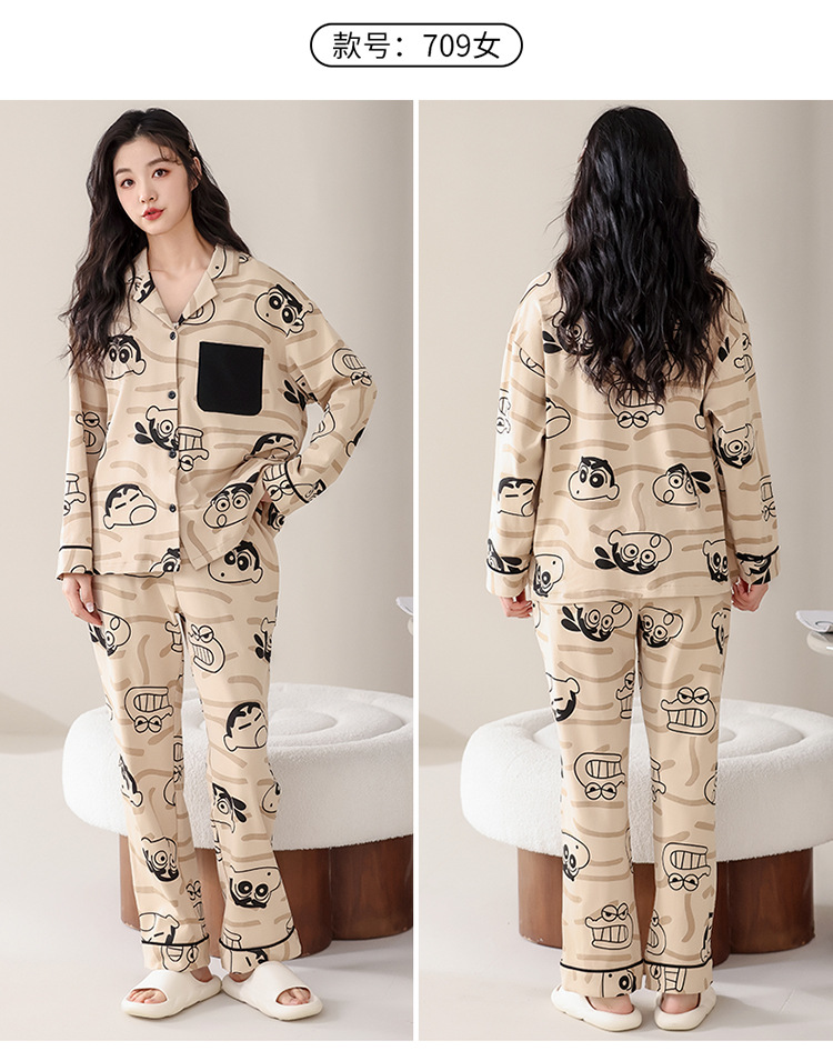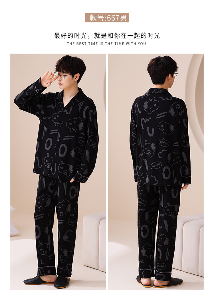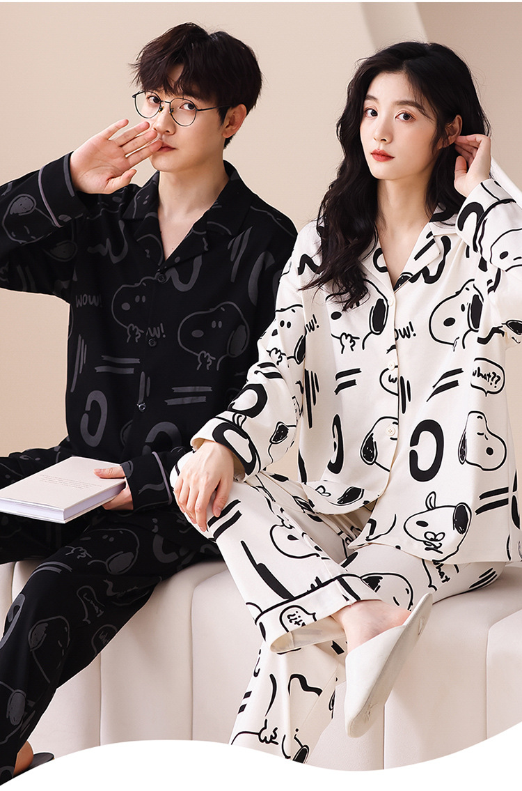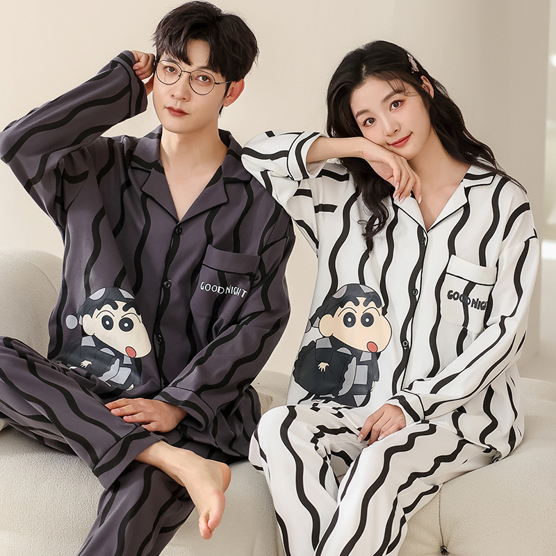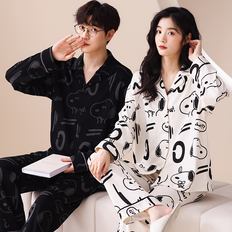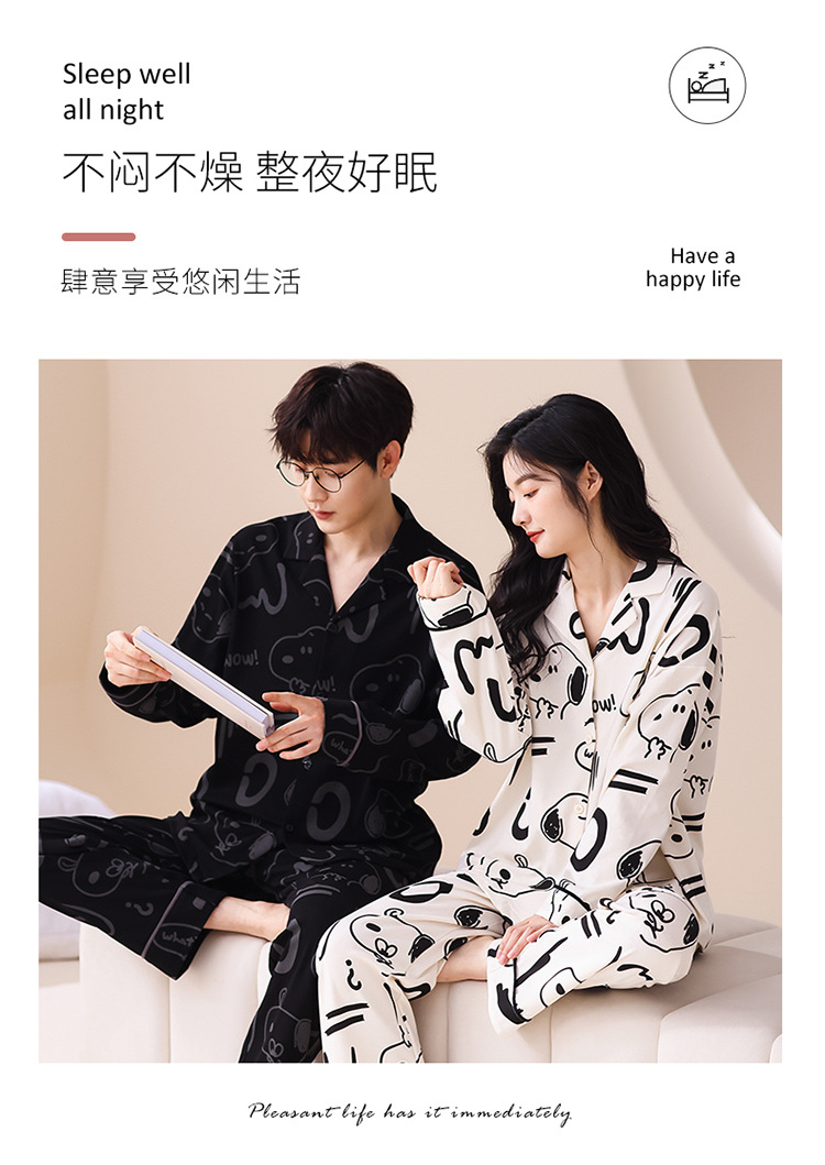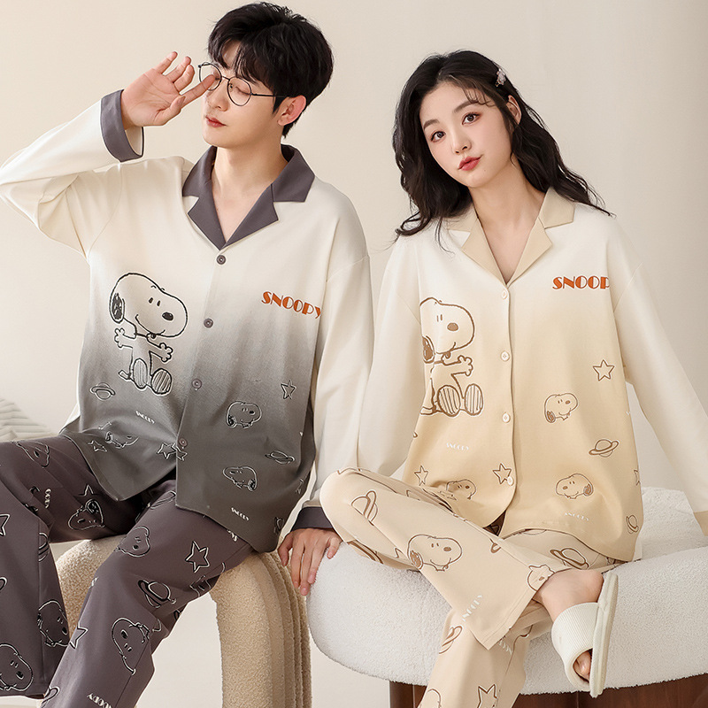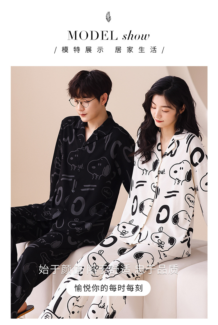 2025 신상 커플 잠옷 봄 가을 순면 긴팔 귀여운 만화 캐릭터 남녀 공용 외출복 홈웨어 세트스토어 가기