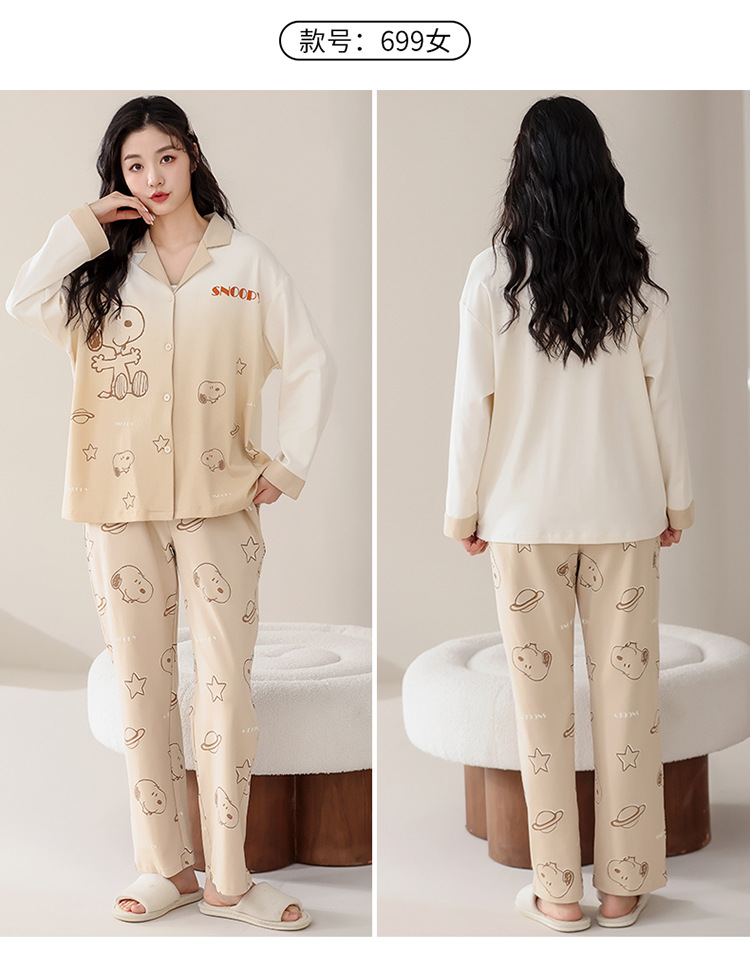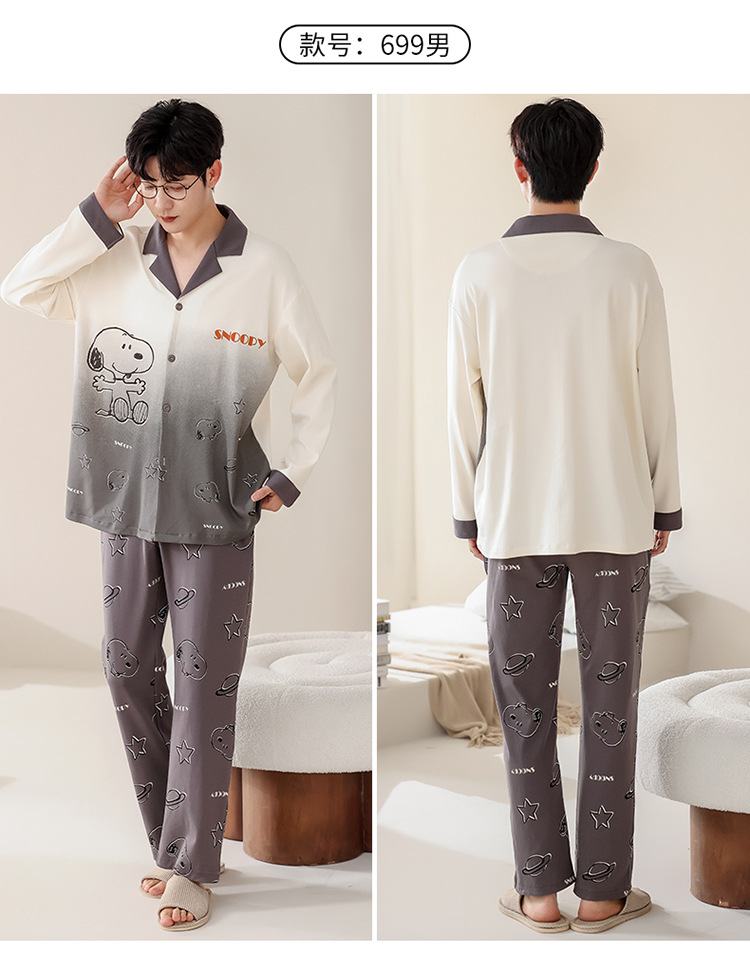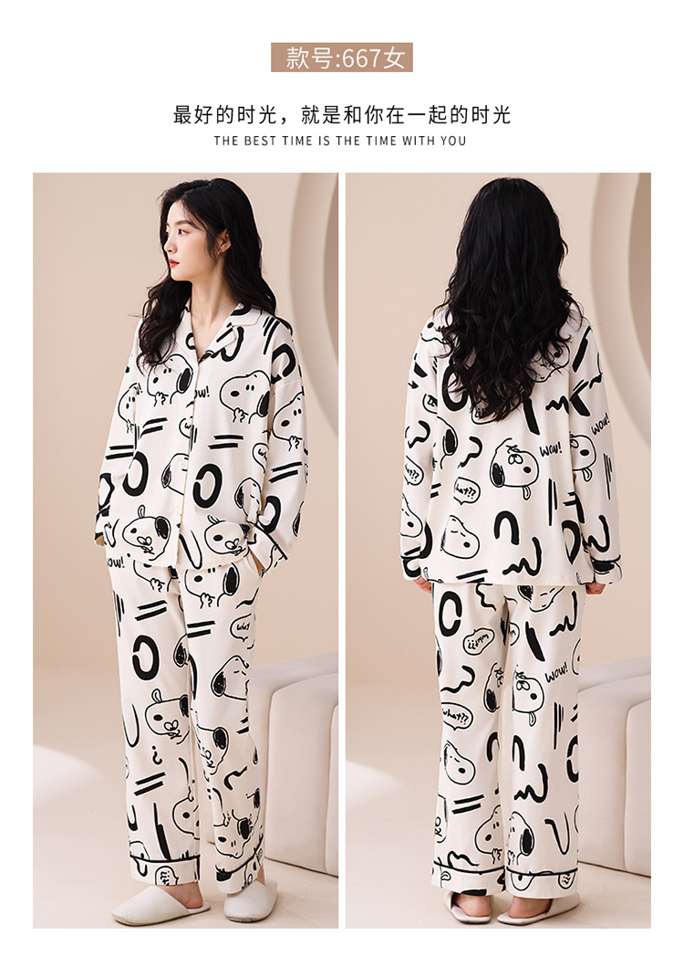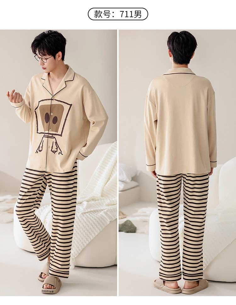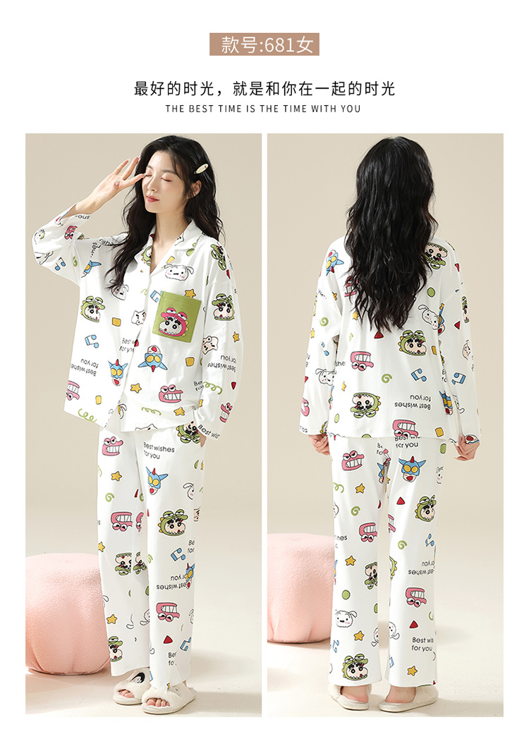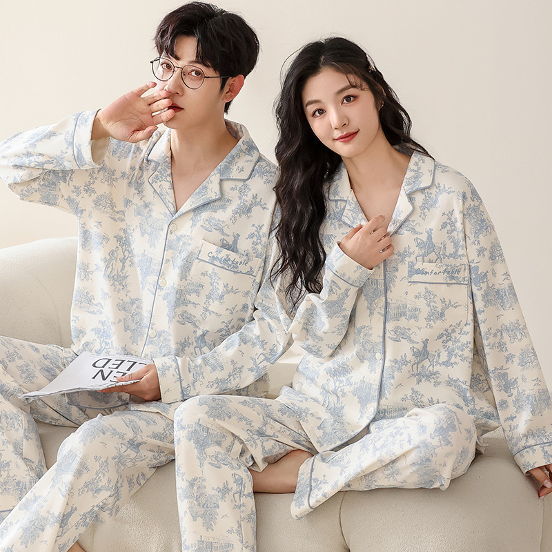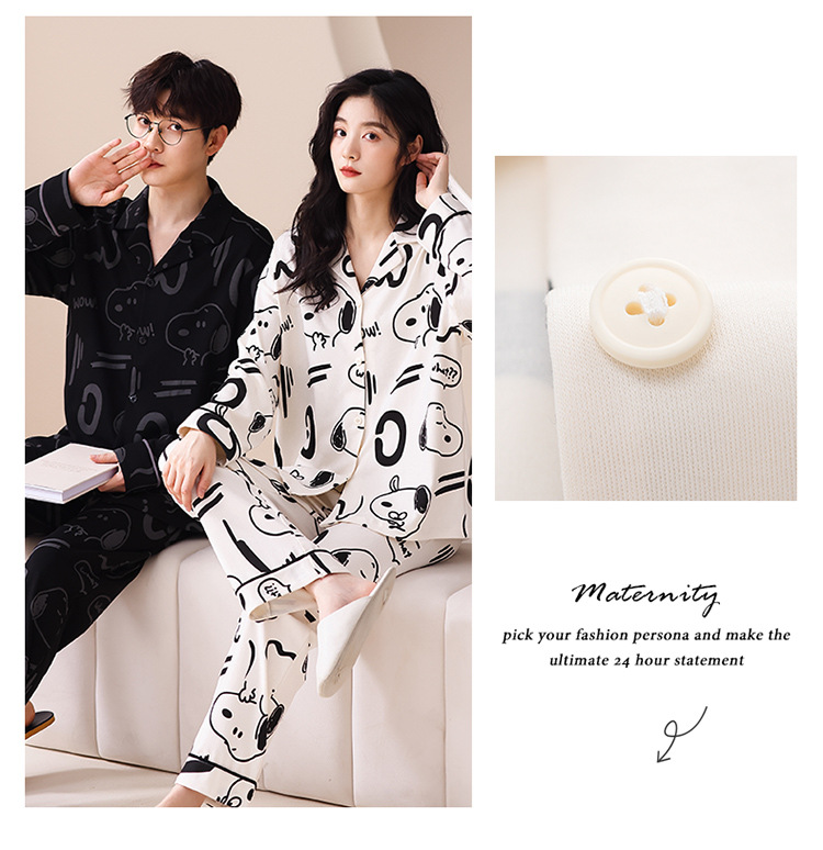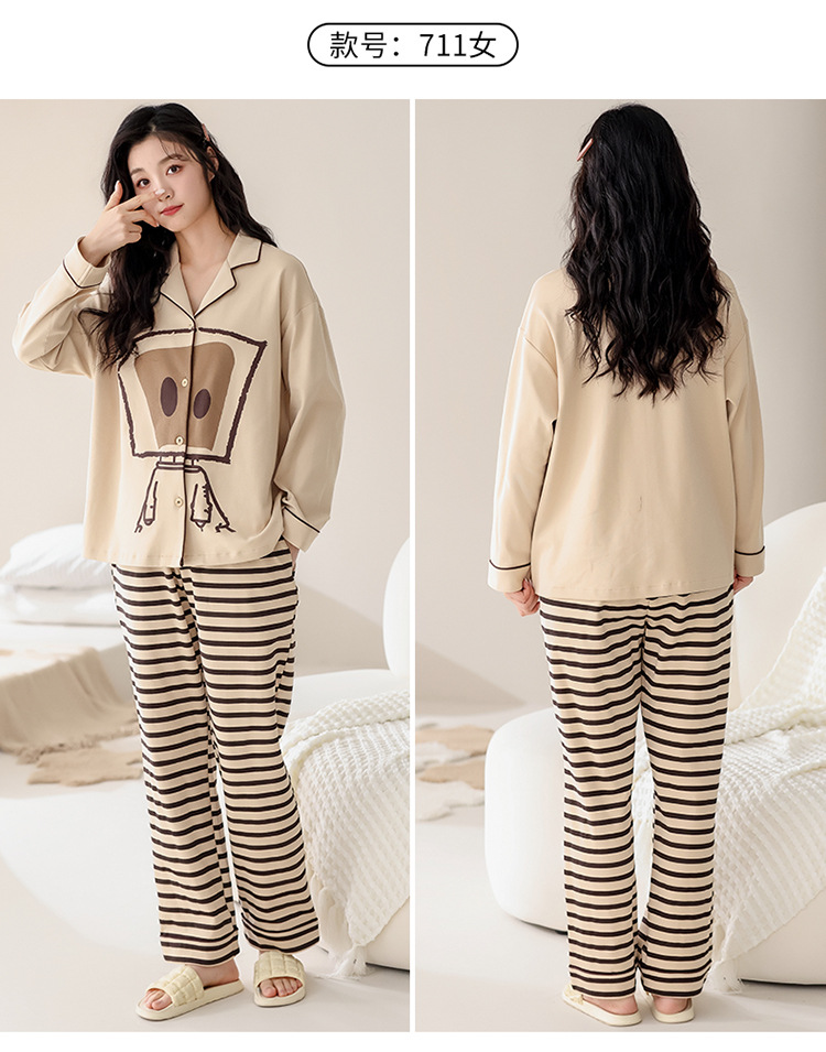 2025 신상 커플 잠옷 봄 가을 순면 긴팔 귀여운 만화 캐릭터 남녀 공용 외출복 홈웨어 세트스토어 가기
