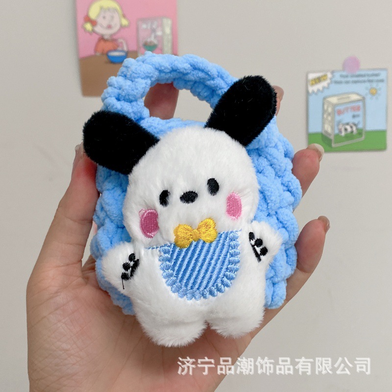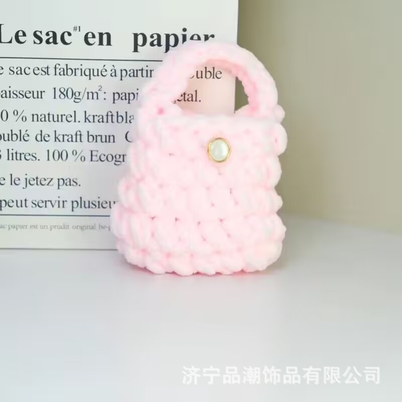 • LQ45#흰색 작은 노란색 치킨 니트 헤드폰 가방
